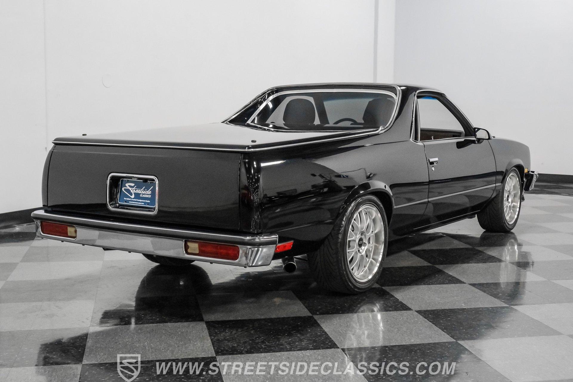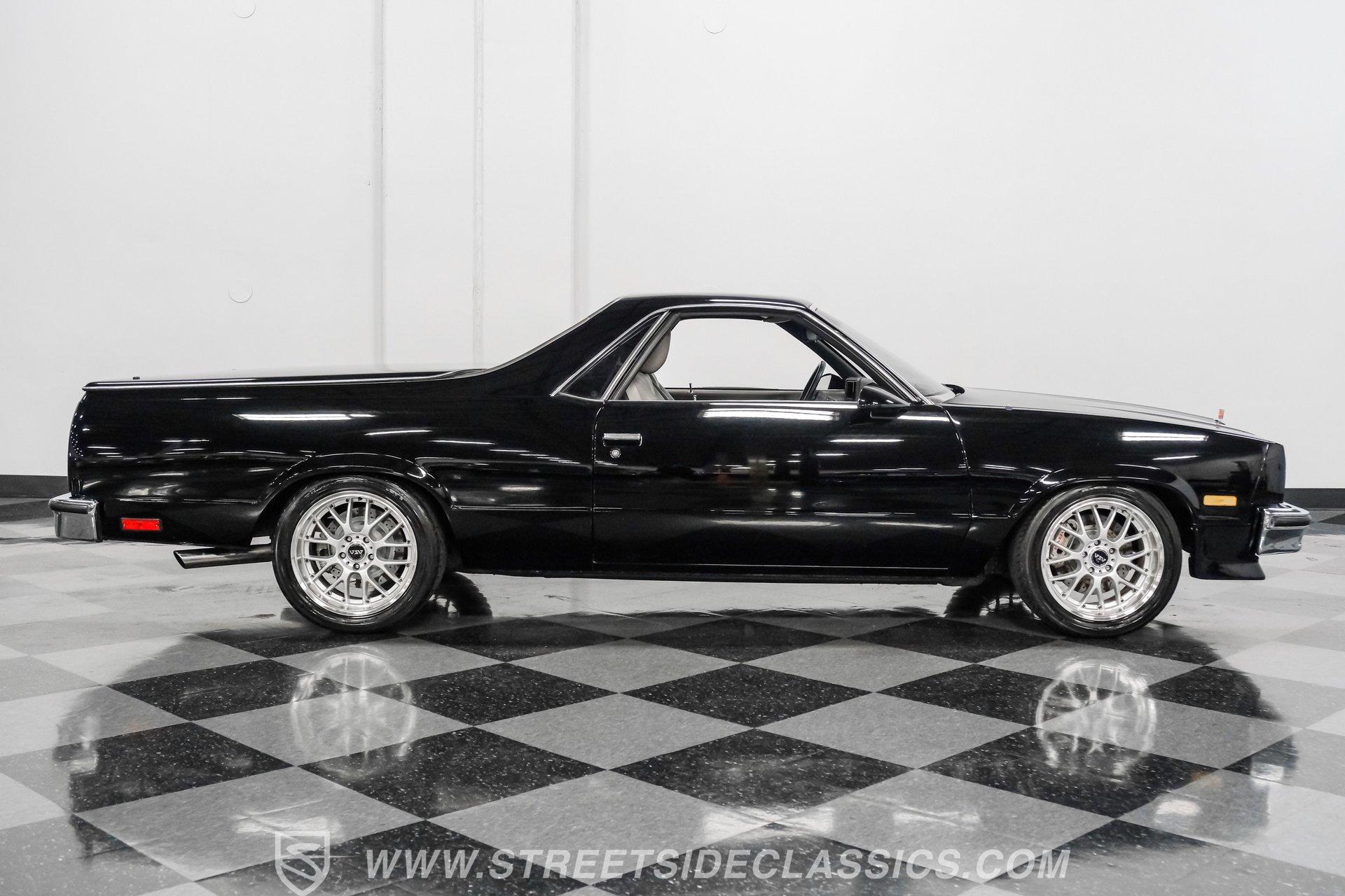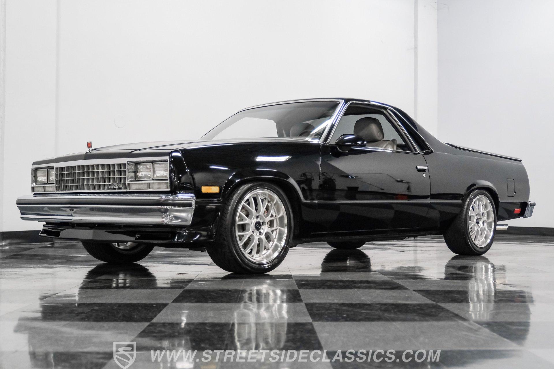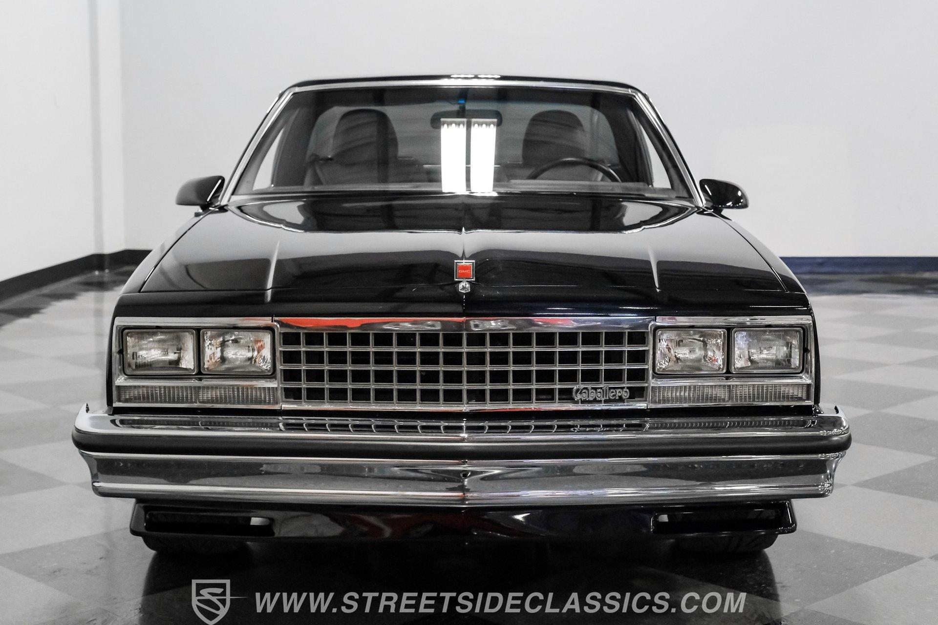 This 1984 GMC Caballero redefines classic style with a purposeful blend of vintage attitude and modern performance. Finished in jet black with a color matched hard tonneau cover, factory grille, chrome bumpers, and a painted lower front chin spoiler, it delivers a clean, aggressive look from every angle. Staggered on 18 inch ASA Revolution wheels wrapped in 265/40ZR18 Michelin tires, the stance is confident and road ready, while the bed is neatly finished with a rubber mat for practicality. As Chevrolet's rarer El Camino cousin-with fewer than 2,800 believed produced in 1984-this fuel injected Caballero stands out as a distinctive and well executed classic built to be driven and admired.