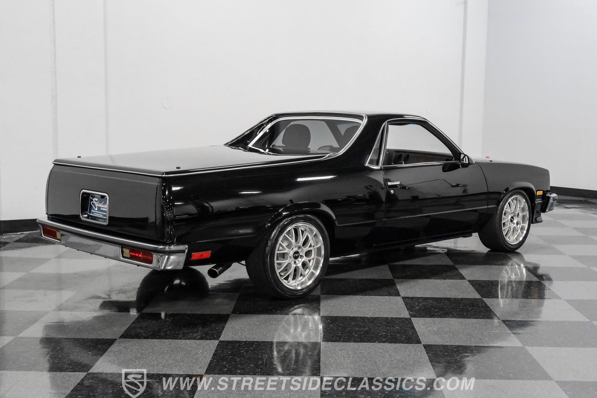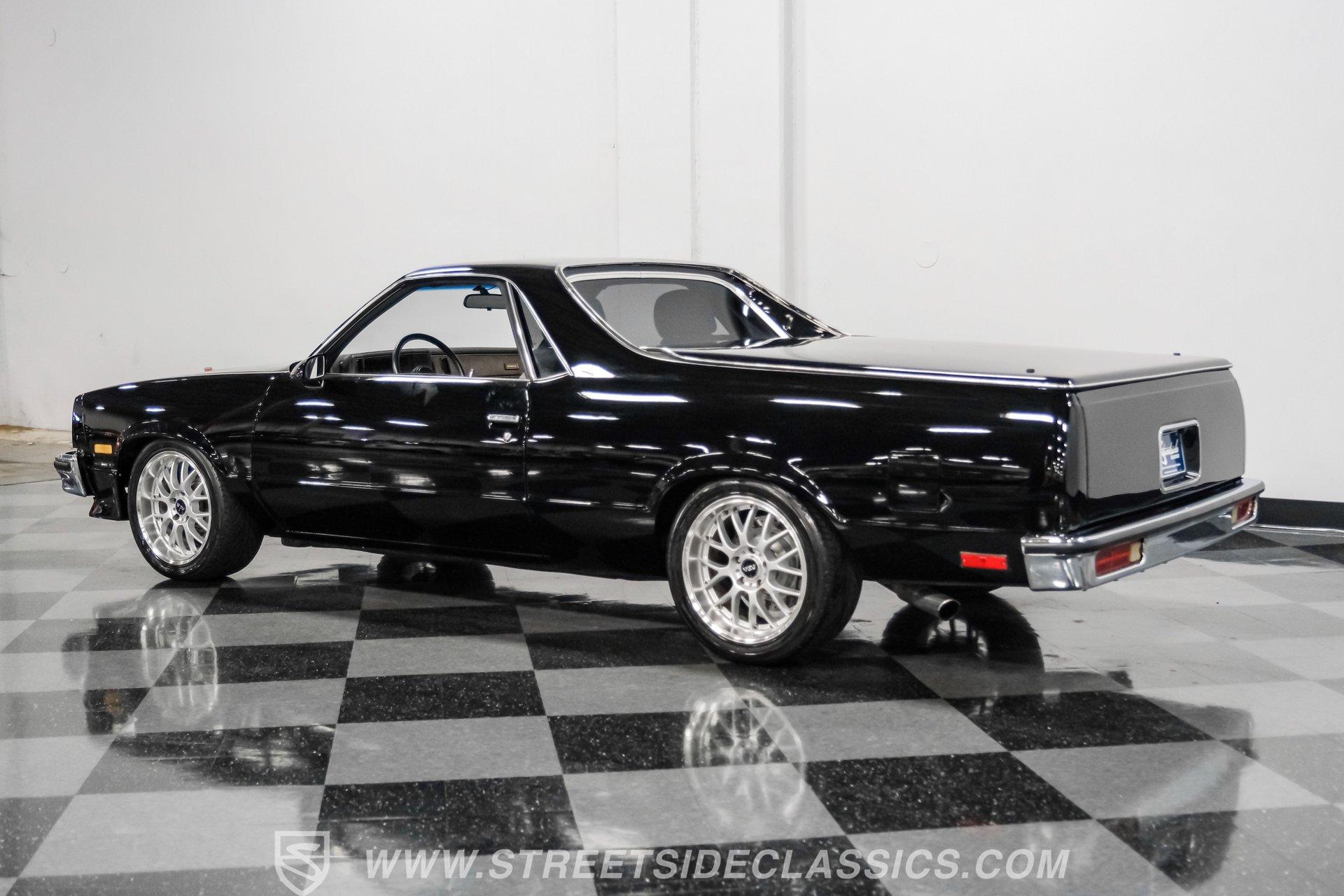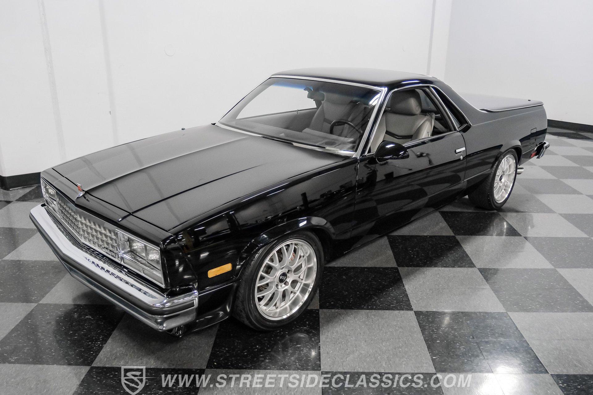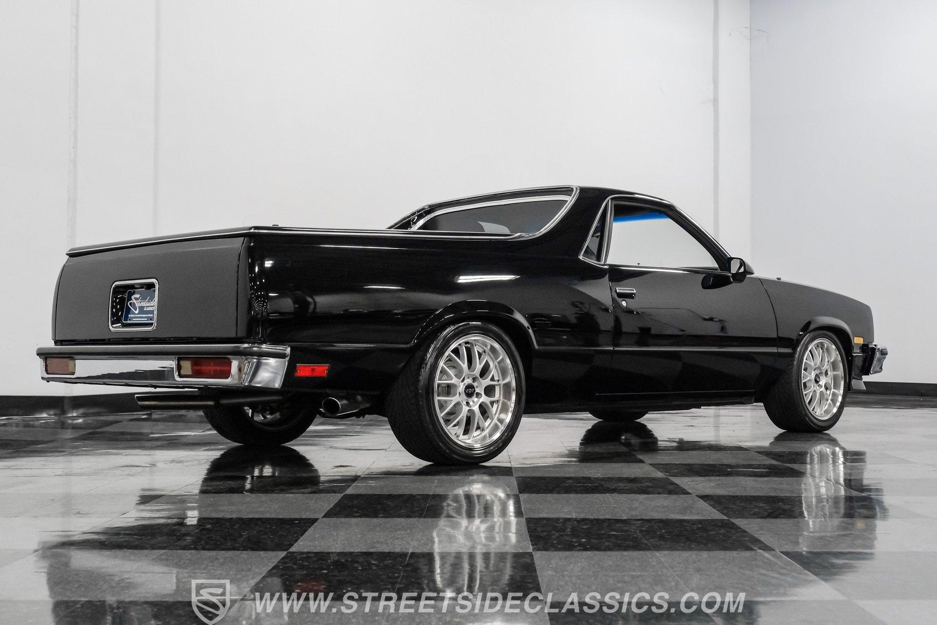 This 1984 GMC Caballero redefines classic style with a purposeful blend of vintage attitude and modern performance. Finished in jet black with a color matched hard tonneau cover, factory grille, chrome bumpers, and a painted lower front chin spoiler, it delivers a clean, aggressive look from every angle. Staggered on 18 inch ASA Revolution wheels wrapped in 265/40ZR18 Michelin tires, the stance is confident and road ready, while the bed is neatly finished with a rubber mat for practicality. As Chevrolet's rarer El Camino cousin-with fewer than 2,800 believed produced in 1984-this fuel injected Caballero stands out as a distinctive and well executed classic built to be driven and admired.