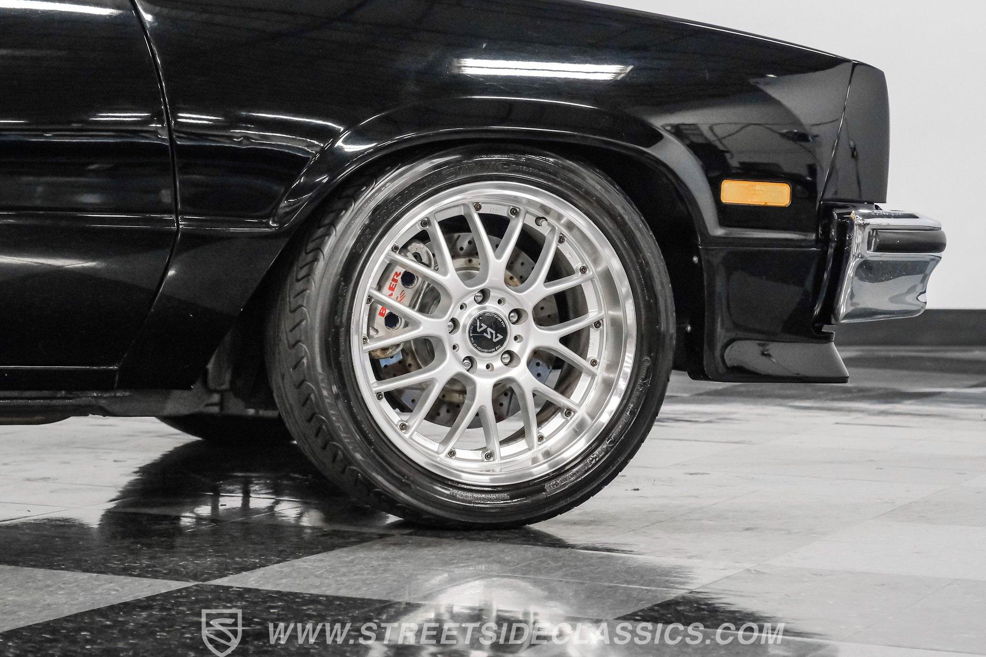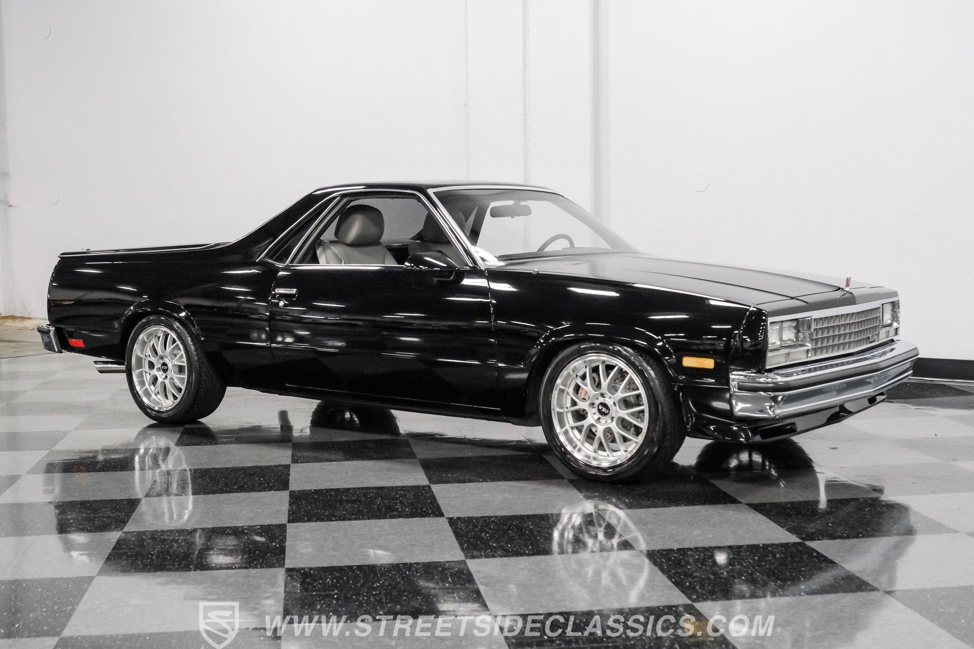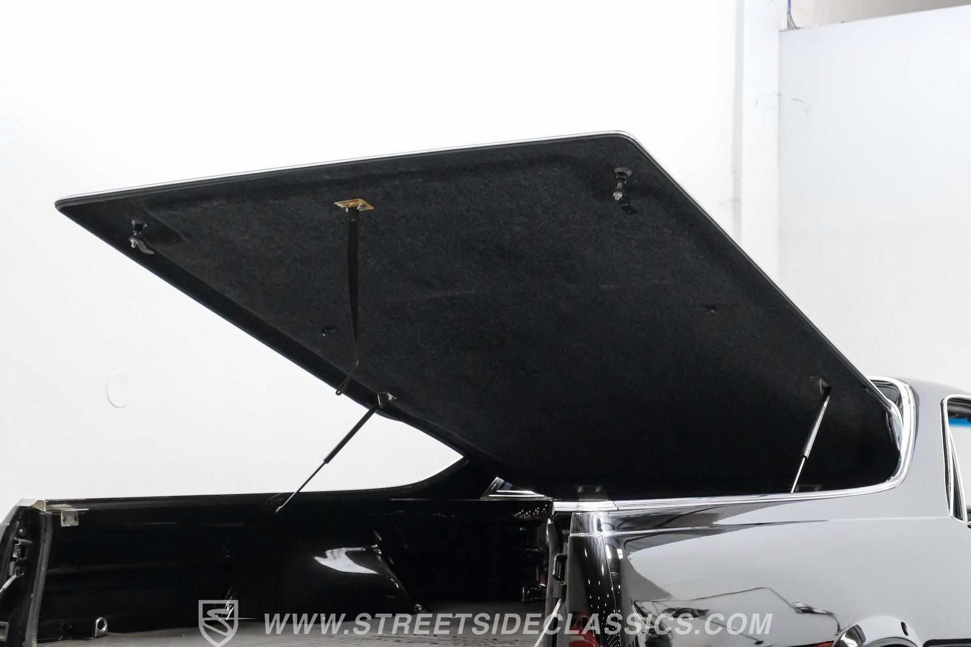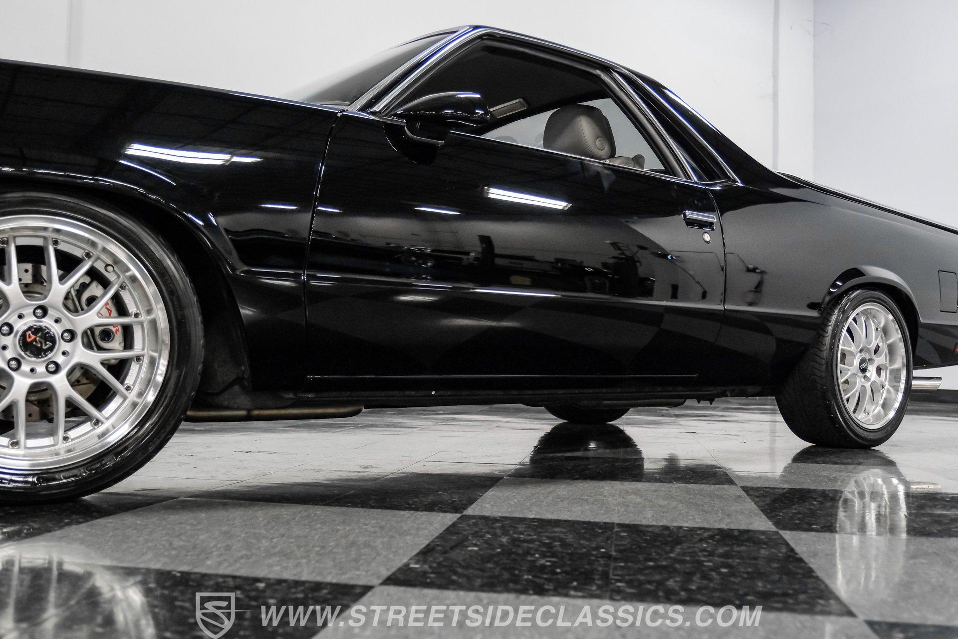 This 1984 GMC Caballero redefines classic style with a purposeful blend of vintage attitude and modern performance. Finished in jet black with a color matched hard tonneau cover, factory grille, chrome bumpers, and a painted lower front chin spoiler, it delivers a clean, aggressive look from every angle. Staggered on 18 inch ASA Revolution wheels wrapped in 265/40ZR18 Michelin tires, the stance is confident and road ready, while the bed is neatly finished with a rubber mat for practicality. As Chevrolet's rarer El Camino cousin-with fewer than 2,800 believed produced in 1984-this fuel injected Caballero stands out as a distinctive and well executed classic built to be driven and admired.