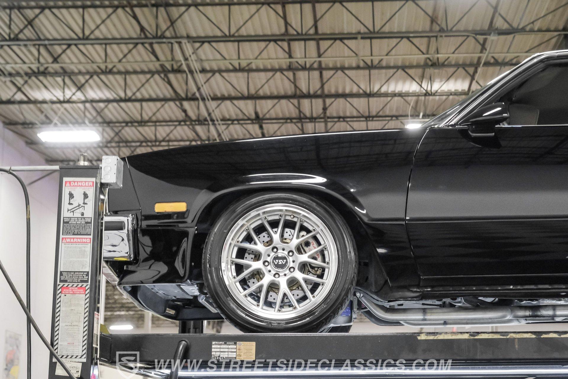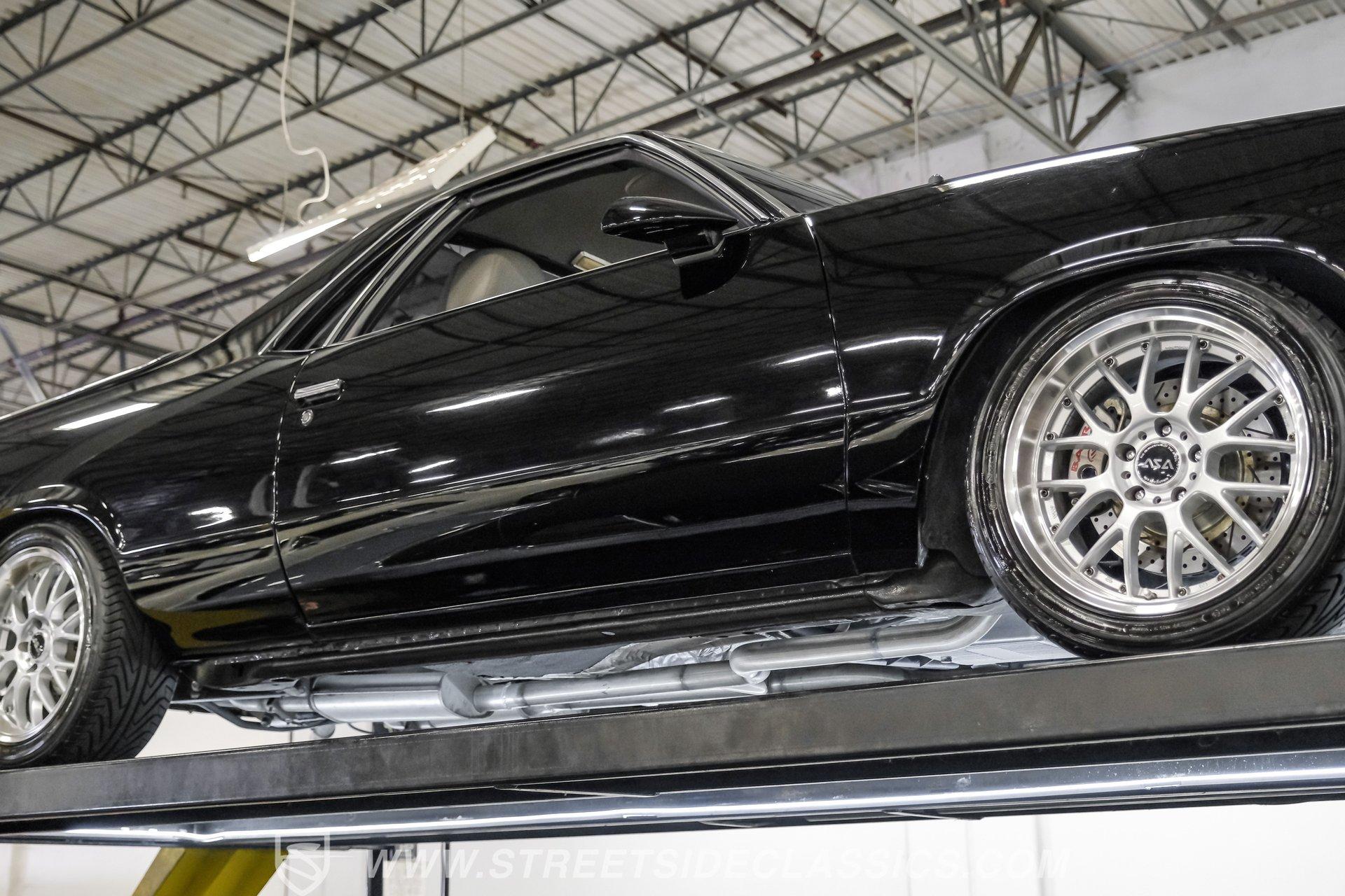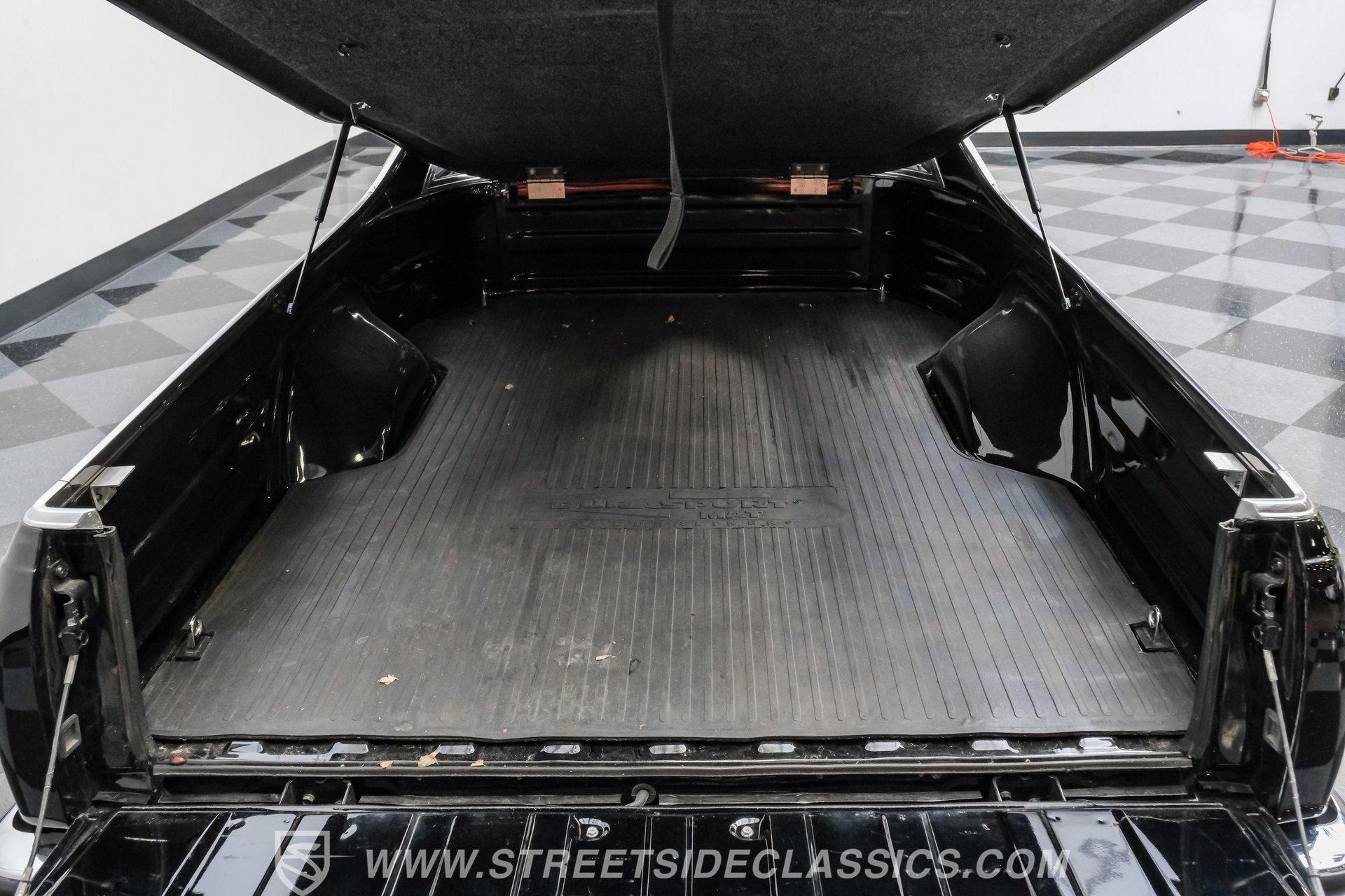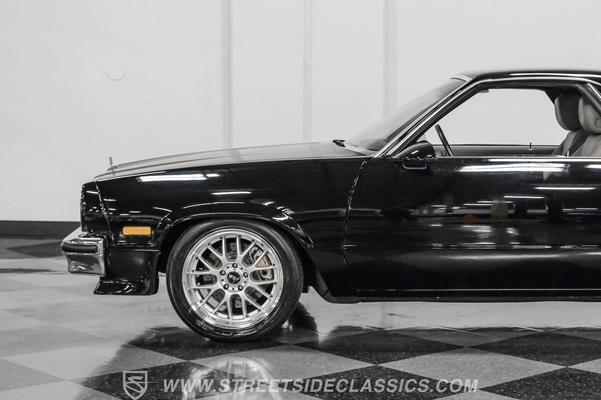 This 1984 GMC Caballero redefines classic style with a purposeful blend of vintage attitude and modern performance. Finished in jet black with a color matched hard tonneau cover, factory grille, chrome bumpers, and a painted lower front chin spoiler, it delivers a clean, aggressive look from every angle. Staggered on 18 inch ASA Revolution wheels wrapped in 265/40ZR18 Michelin tires, the stance is confident and road ready, while the bed is neatly finished with a rubber mat for practicality. As Chevrolet's rarer El Camino cousin-with fewer than 2,800 believed produced in 1984-this fuel injected Caballero stands out as a distinctive and well executed classic built to be driven and admired.