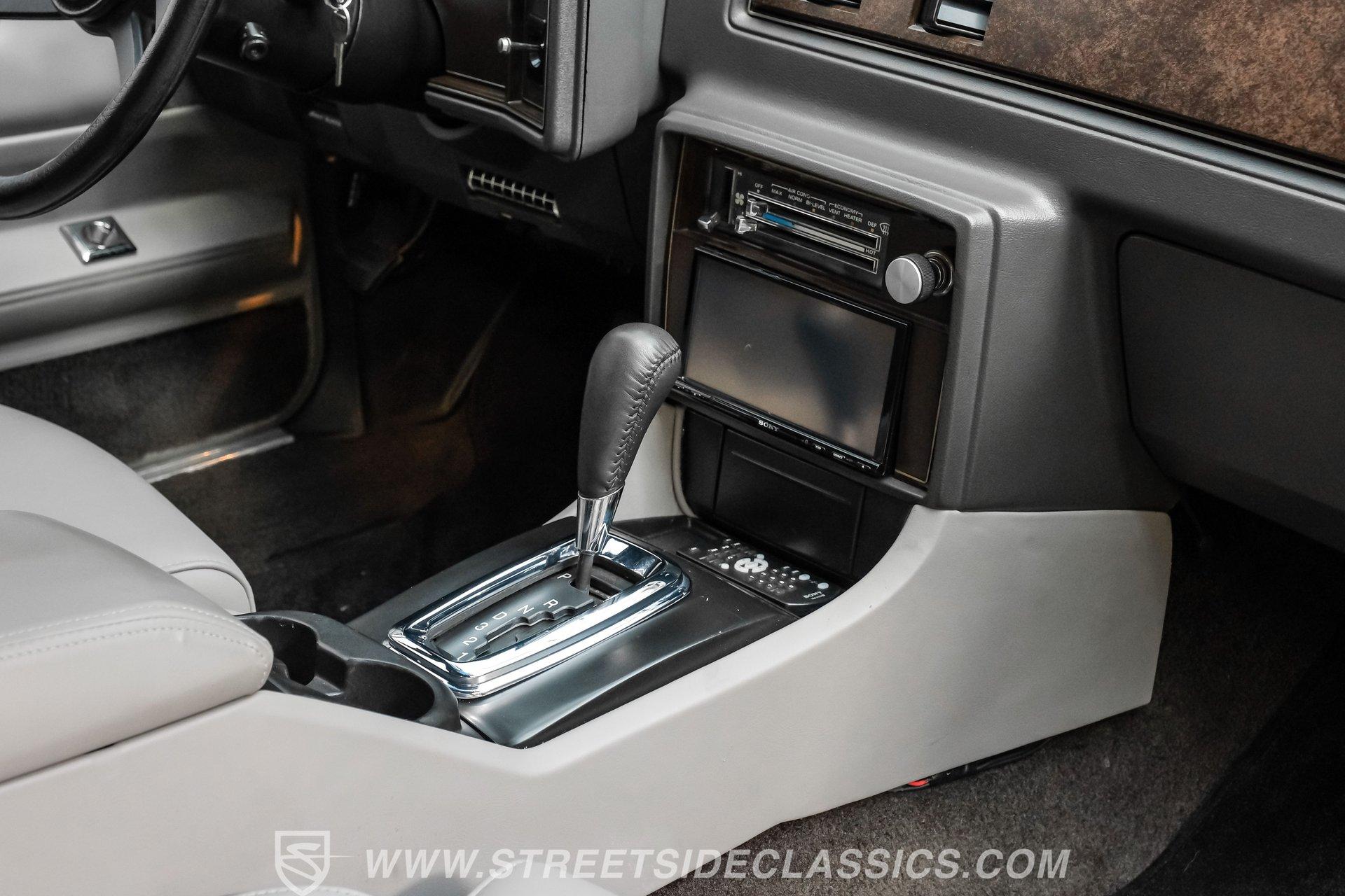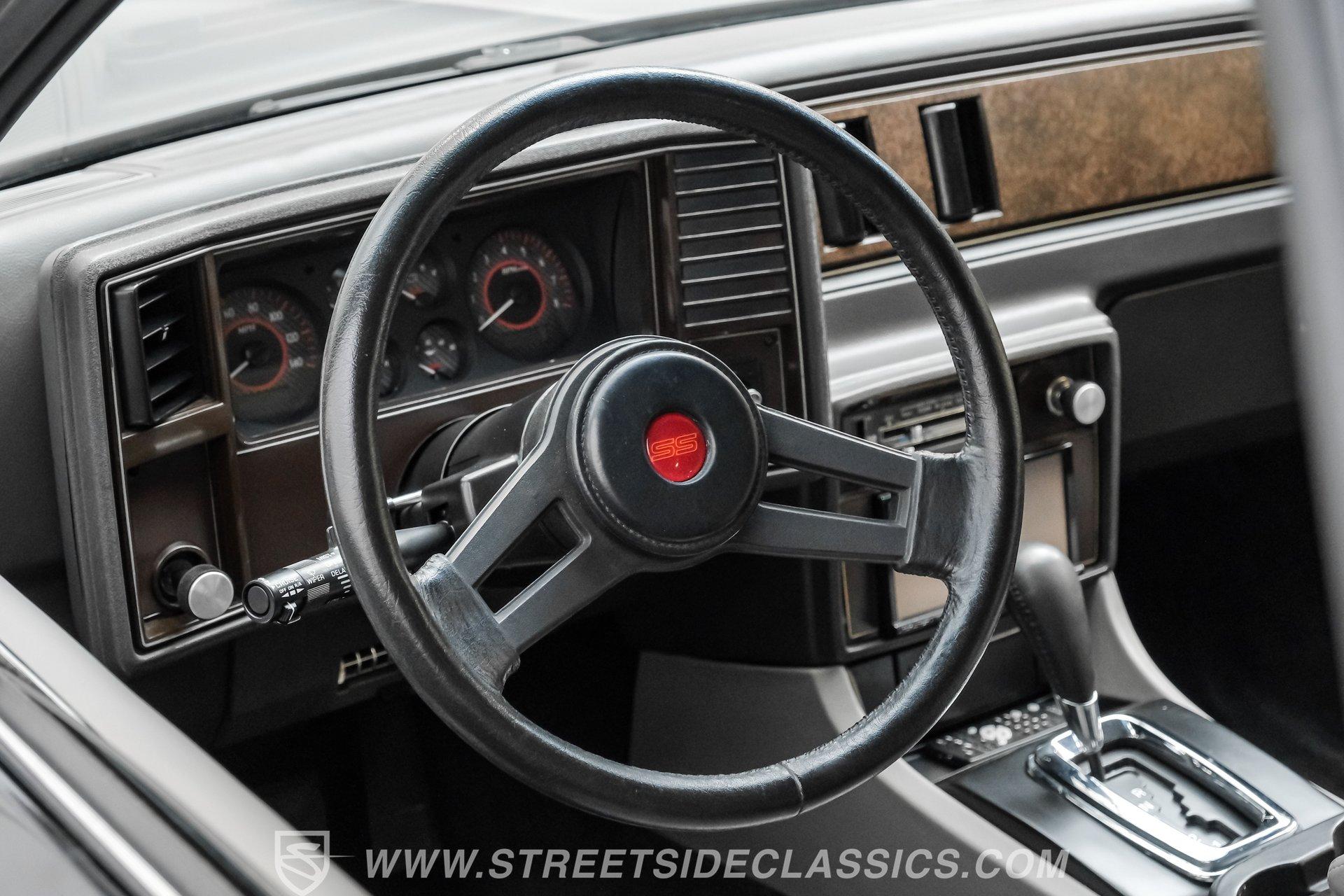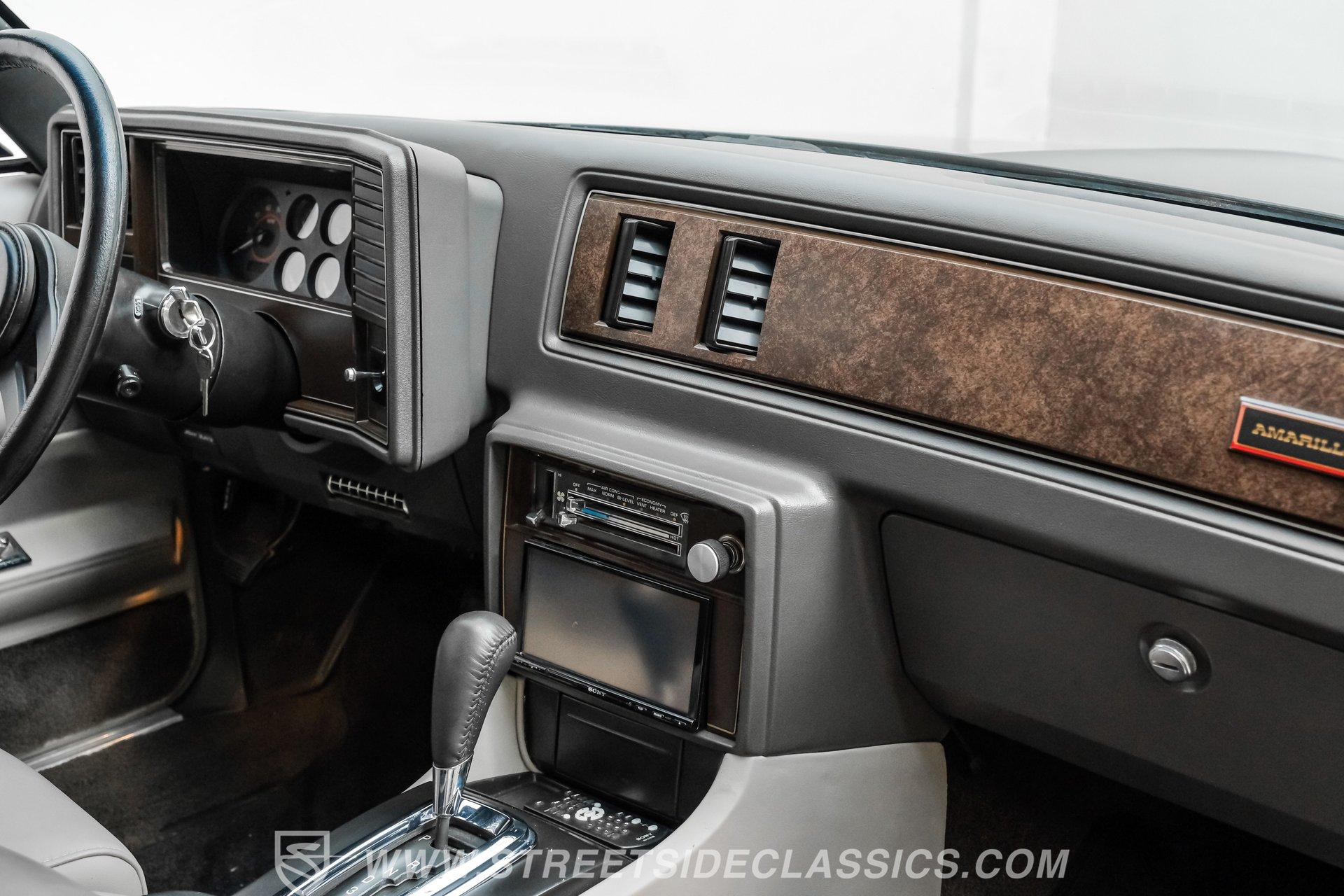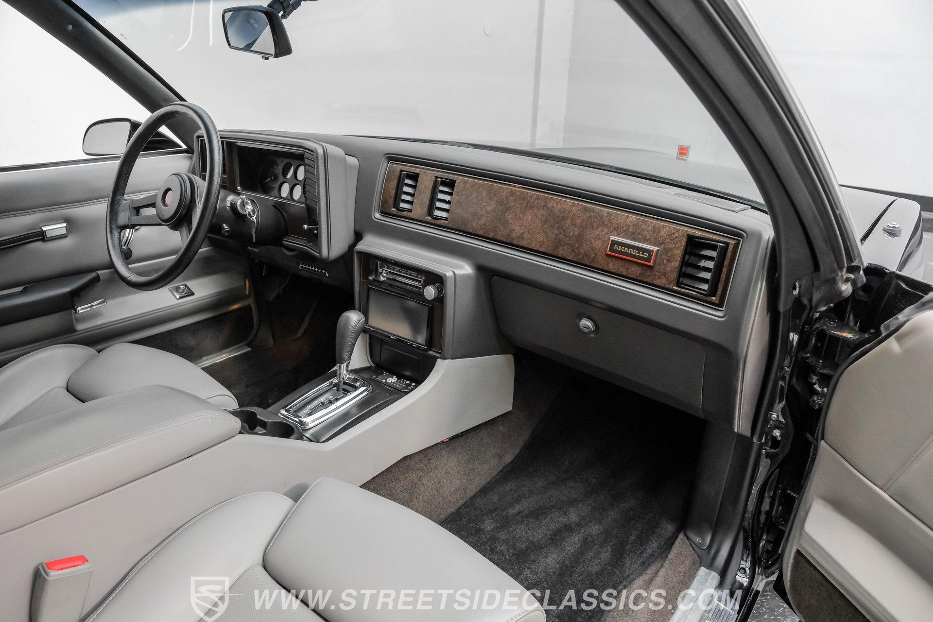 Step inside and be embraced by a cabin where comfort meets craftsmanship. Power leather bucket seats and center console from a 2013 Cadillac XTS invite you to settle in with style. Matching door panels and headliner complement the gray interior, while Dakota digital gauges with red accent lighting provide a modern touch. An aftermarket Sony touchscreen radio enhances your drive, and air conditioning keeps the climate perfect. With a Monte Carlo SS steering wheel and tilt column, every detail is designed for an engaging and comfortable ride.