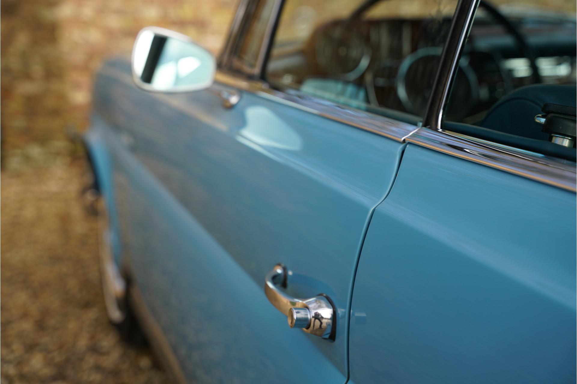 The inside looks fantastic. The wood has been replaced and the leather is in excellent condition. The well-fitted carpets look good. The dashboard contains a period correct Blaupunkt radio and every piece of equipment is beautifully presented and in correct working order. The headlining too is in a good and fine state. What further grabs ones attention are the factory fitted air-conditioning and floor-mounted automatic gear shift, earlier models tended to have a steering wheel-mounted gear shift.