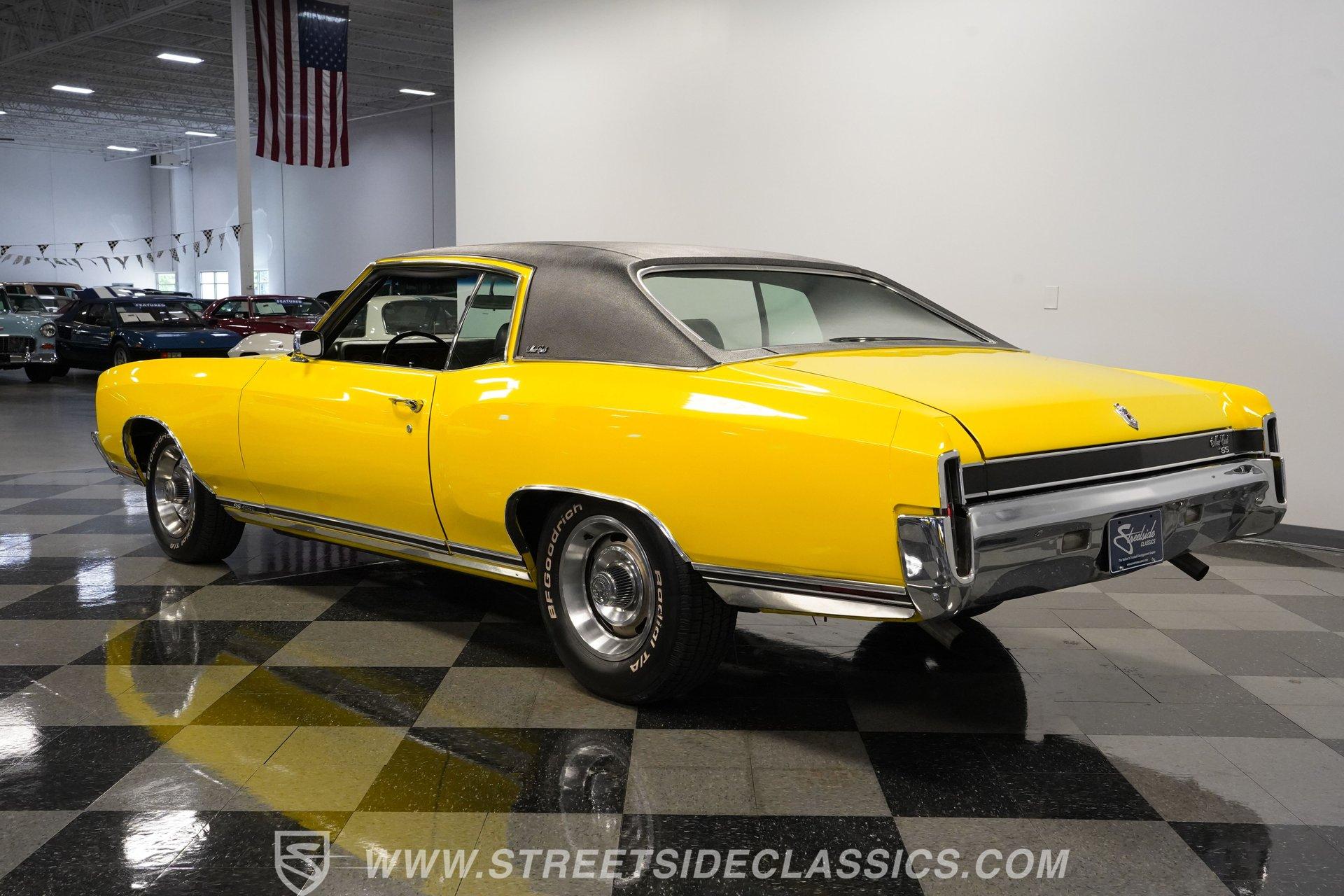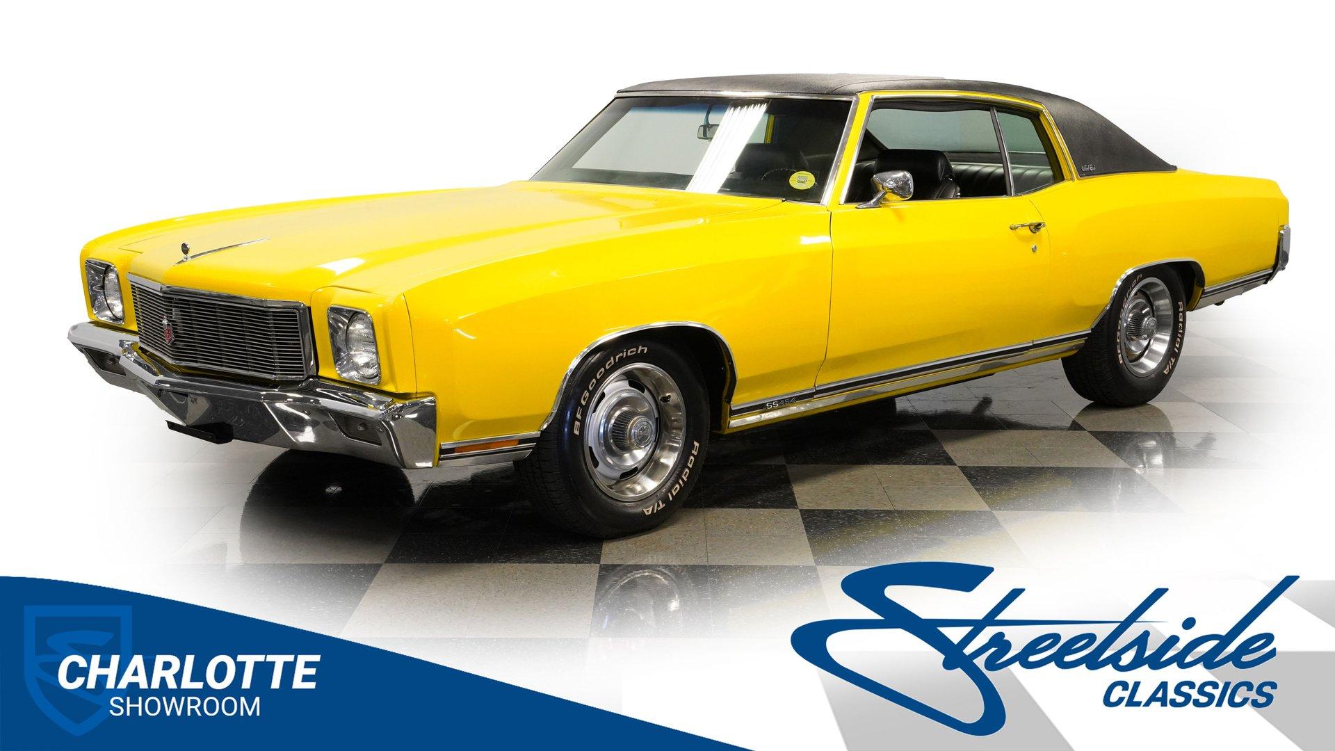With its authentic numbers-matching drivetrain, classic Sunflower Yellow paint, and a powerful 454 big block V8, this 1971 Chevrolet Monte Carlo SS 454 offers a rare blend of style, muscle, and vintage comfort. Whether you are seeking a weekend cruiser or a standout showpiece, this Monte Carlo delivers on every level. Call, email, or come visit our showroom today!