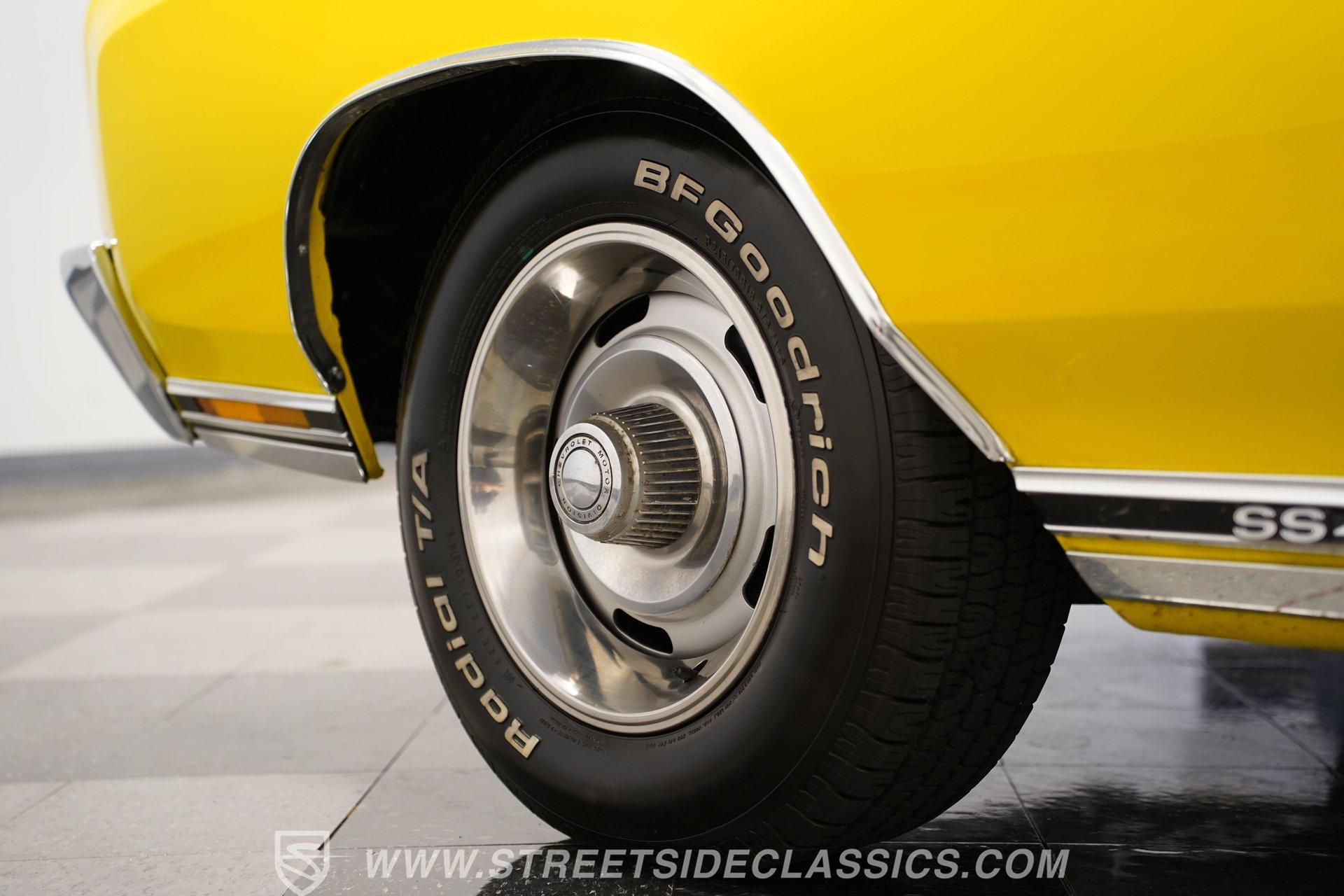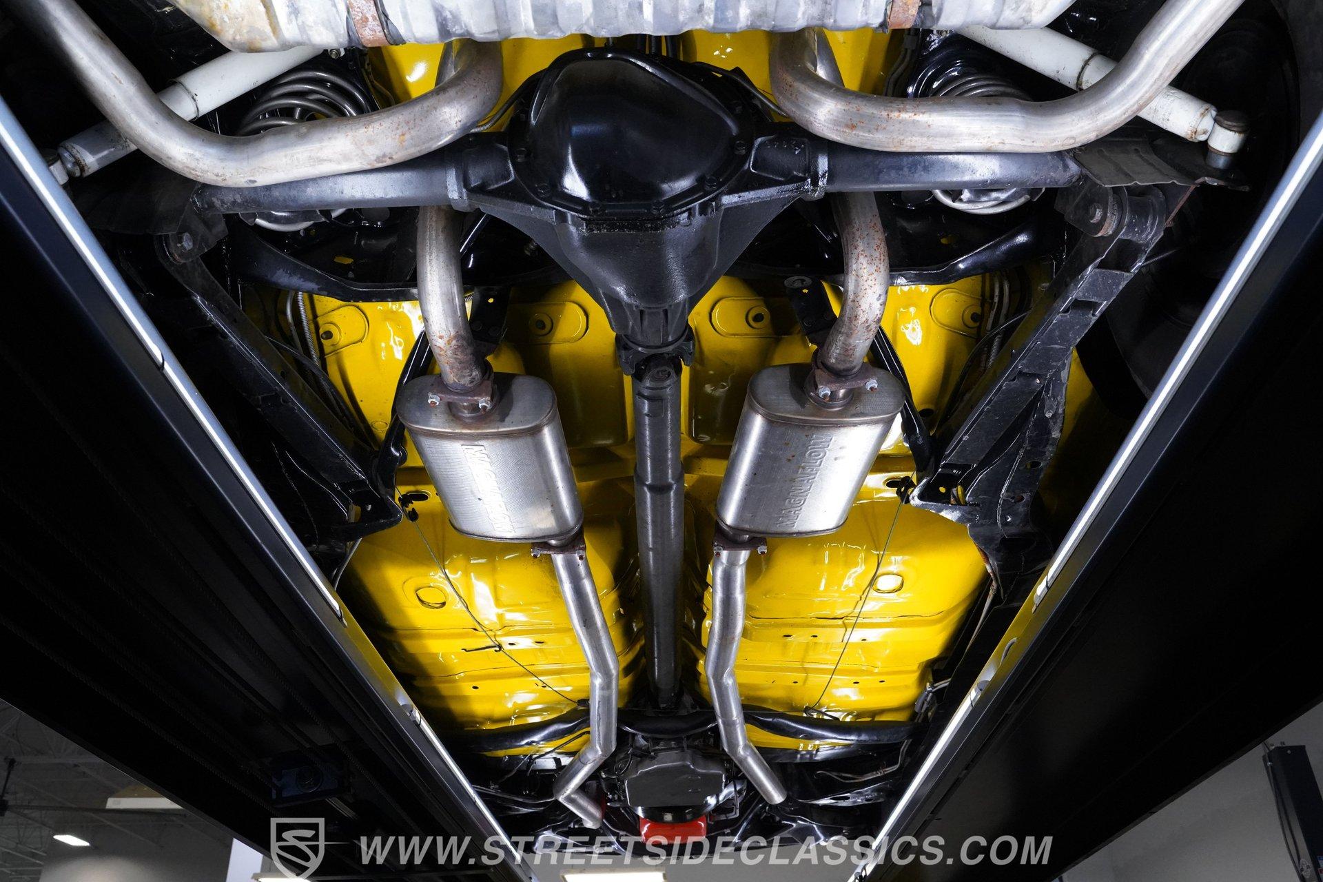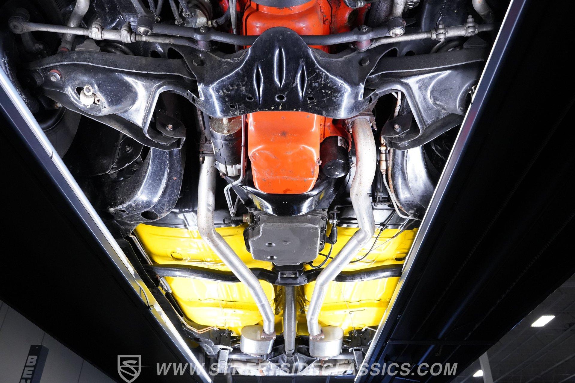 Under the hood lies a potent 454 cubic inch V8, paired seamlessly with a 3-speed TH400 automatic transmission, both numbers matching for true collector appeal. This engine snarls to life with authority, delivering a deep, throaty rumble through dual exhausts featuring long tube headers and MagnaFlow mufflers. The power front disc brakes and factory-style suspension with boxed trailing arms and heavy-duty sway bars ensure a confident, tight drive that honors the muscle car ethos while still providing a solid, enjoyable ride.