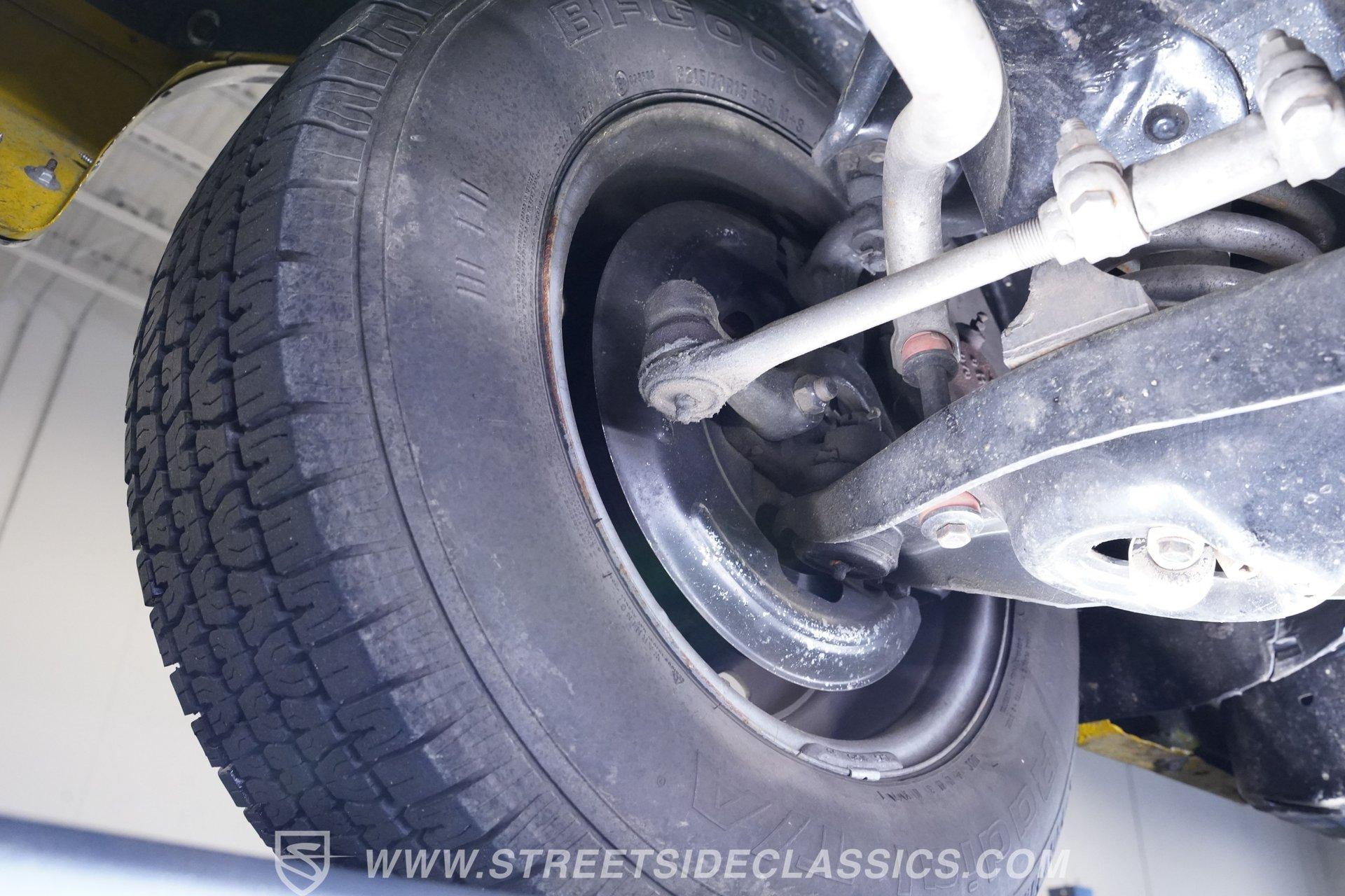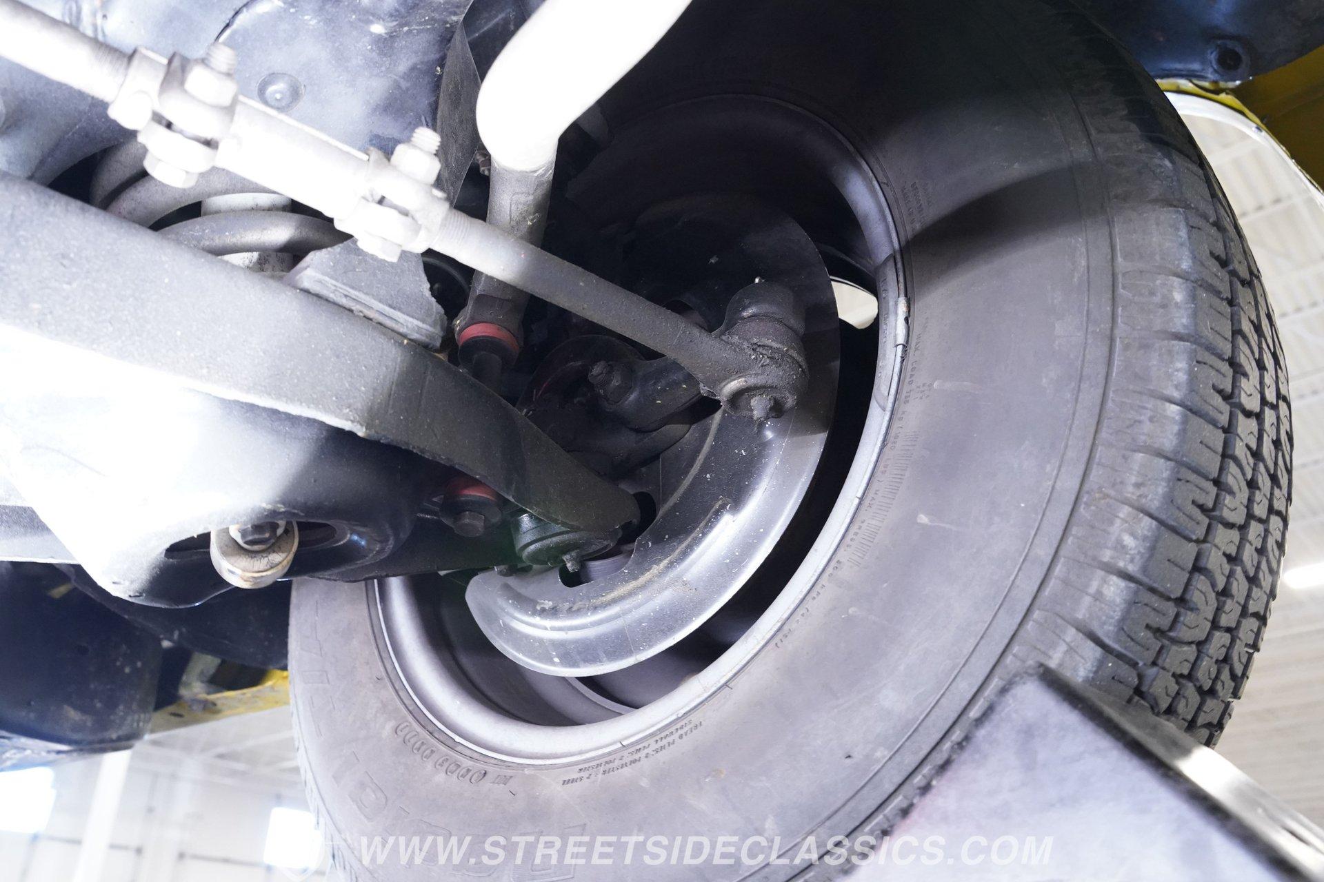 Step into a cabin wrapped in vintage charm and comfort, where the black vinyl upholstery embraces you with just the right amount of worn-in character. The dash is classic and functional, housing clean, clear gauges and a working factory clock, while the power tilt steering wheel adds a touch of convenience. Even the factory AM radio adds to the authentic experience of cruising in style.