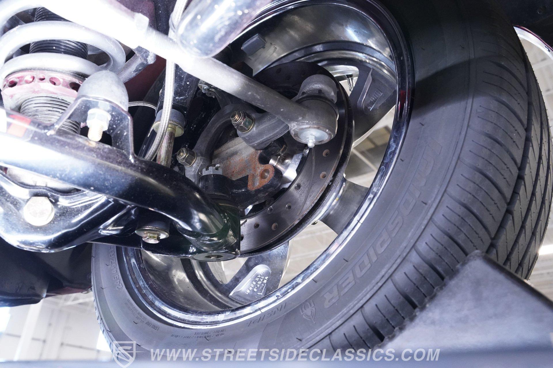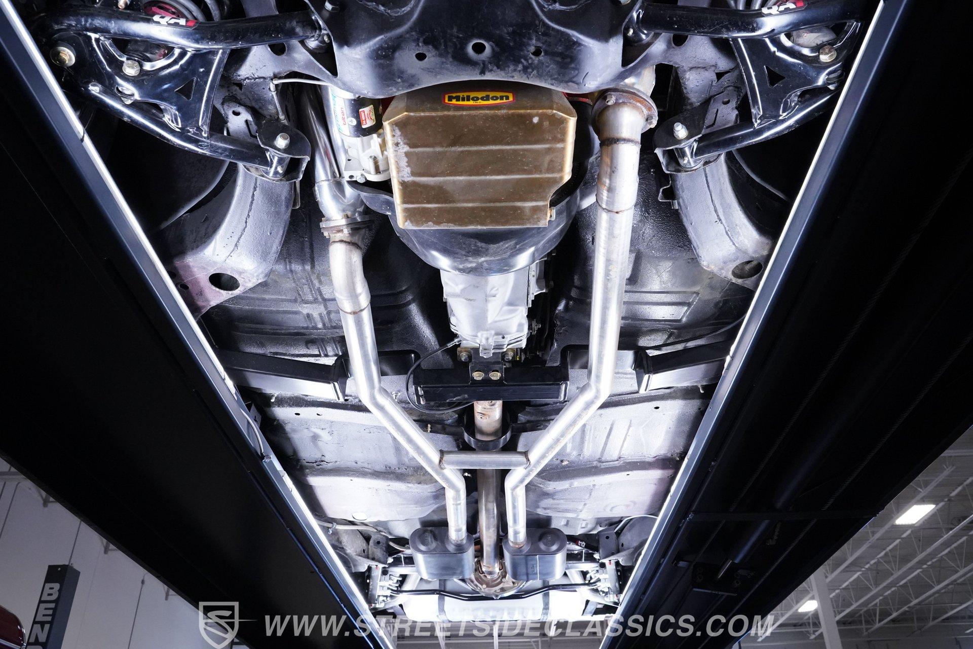 Under the hood roars a robust 454 V8 paired with a four-barrel double pump Holley carburetor, delivering exhilarating power that is as thrilling to hear as it is to feel. The Muncie 4-speed manual transmission shifts smoothly, providing total control over the Ford 9-inch rear end that hooks up with Wilwood 4-wheel power disc brakes for confident stopping. With Sanderson long tube headers and Flowmaster mufflers, this Chevelle's exhaust note is deep and commanding, while QA1 adjustable coilovers and tubular control arms ensure a responsive and planted ride.