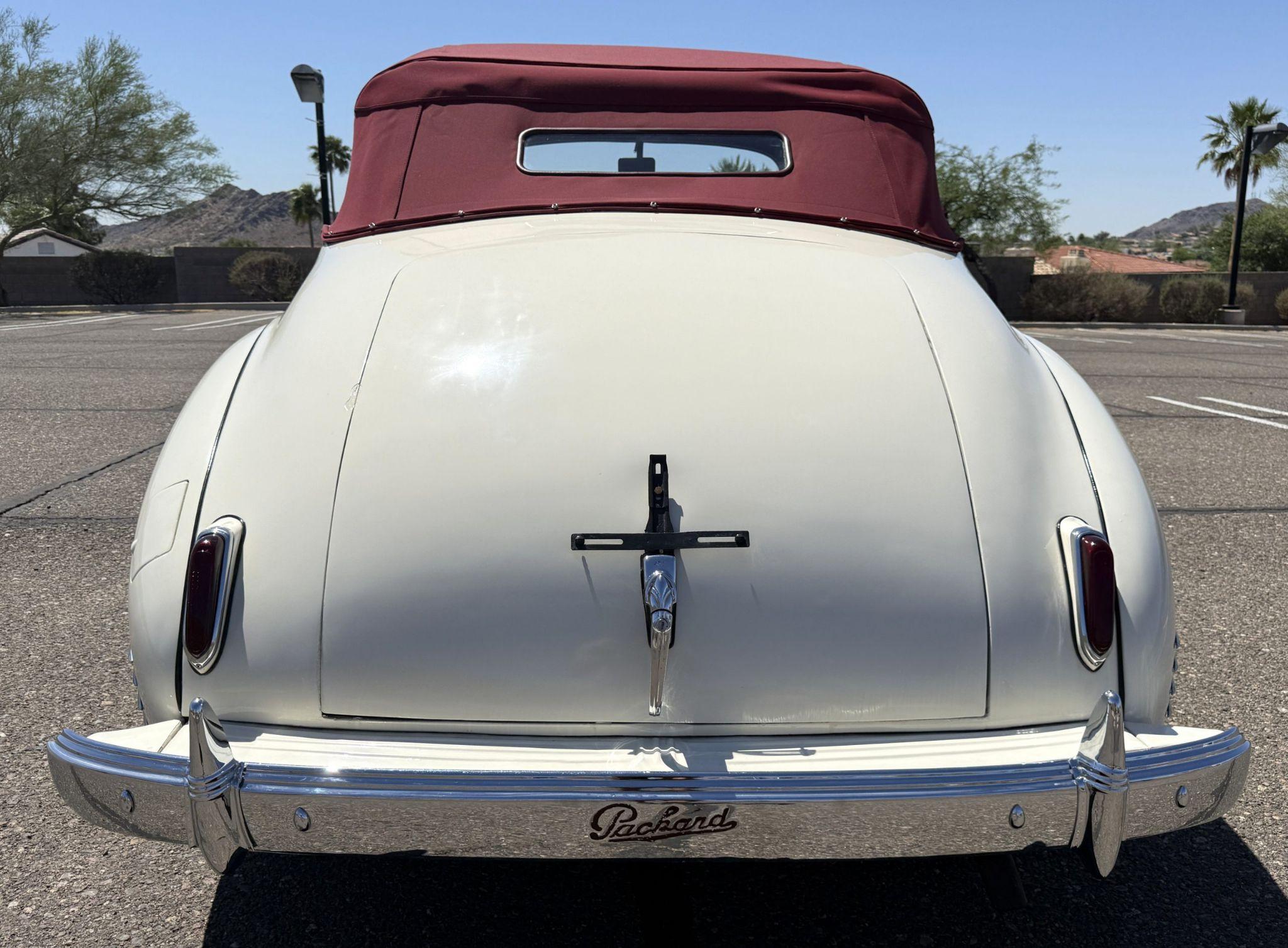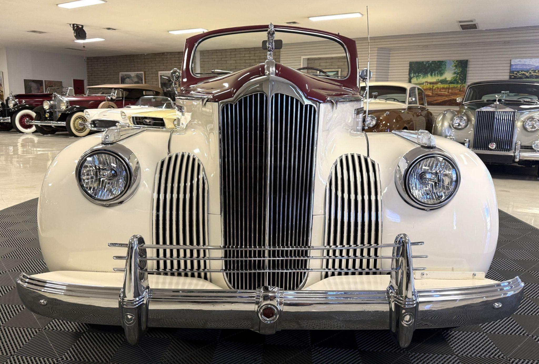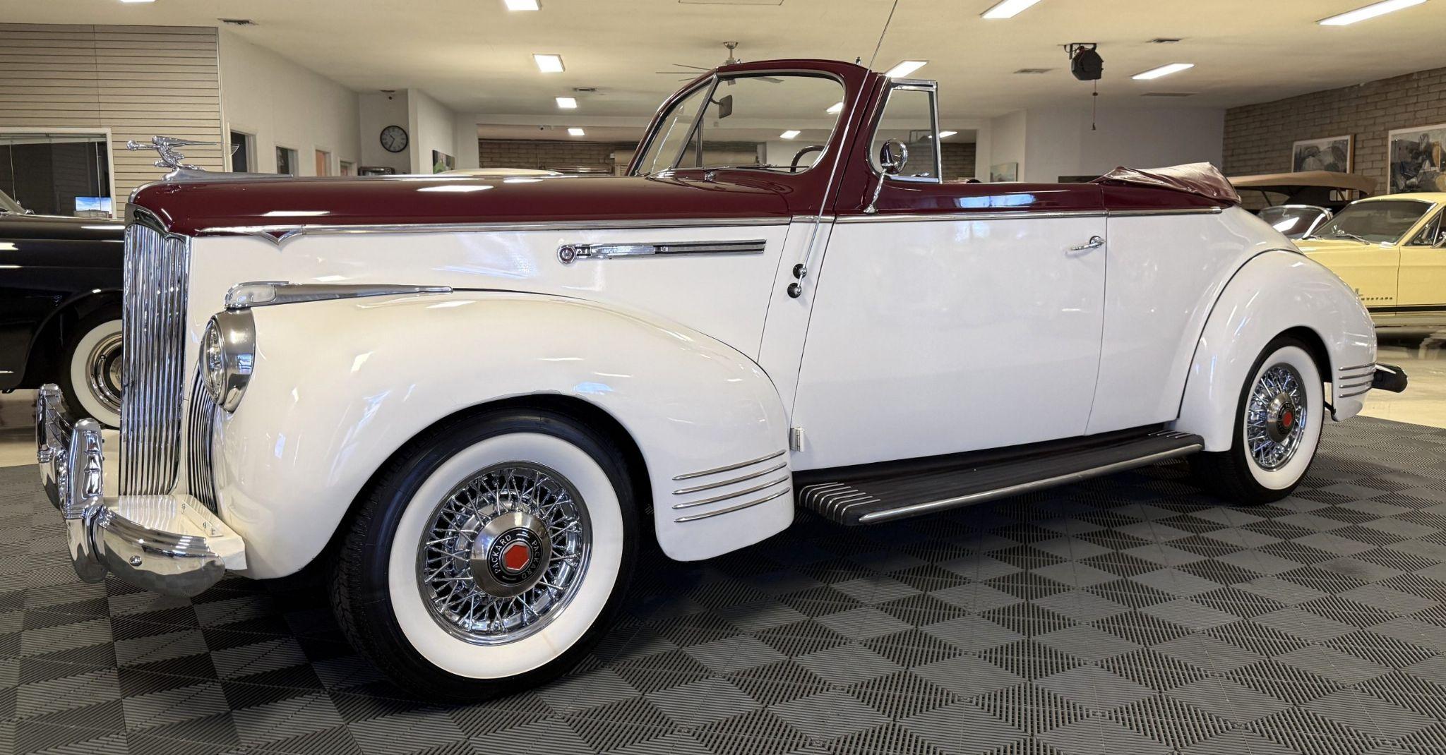 This 1941 Packard 110 Convertible Coupe is in overall good condition and has been mechanically sorted to be ready for tours! The Packard is finished in two tone maroon over with matching red interior and maroon convertible top. It is powered by its original 245ci inline-six paired with a three-speed manual transmission with overdrive. Showing 82,787 believed original miles, this Packard is well-suited as a driver-quality pre-war convertible for touring and local events. The Packard 110 Convertible represented Packards entry-level offering in 1941, designed to broaden the brands reach while maintaining its reputation for engineering quality and smooth performance. This is one of the final pre-war Packards produced before WWII halted civilian automobile production. This Packard was acquired by its current owner in 2019 to add to their collection of pre-war motorcars to be driven regularly and toured. During their ownership, they invested more than $44,000 in restoration to create a mechanically excellent and period-correct Packard. The exterior of this Packard is in overall good condition, finished in a two-tone maroon over white that shows visible chips and cracking consistent with age and use. The convertible top is finished in maroon with a matching boot cover. Brightwork is in overall goodcondition with somewear andpittingacross trim elements.The headlights, sidelights, turn signals, taillights, andwindshieldwipers all function correctly.The Packardhas wire wheels fitted with Coker Classic whitewall tiresreplaced in2018.The 110presents asa beautiful driver that has a desirable color combination that is ready to be enjoyed! The interior of the Packard is in overall great condition trimmed in red vinyl upholstery with matching piping and black carpeting. The matching maroon painted dashboard is in great condition and the knobs throughout are in good condition with no cracking. The instruments and gauges are in good working order which include the heater, defrost, AM radio and clock. Overall, the interior is beautiful and is great working condition ready for local shows and weekend drives! The Packardretainsits original 245ci inline-six engine with a downdraft carburetor and pairedtoathree-speed column-shift manual transmission with overdrive. The6Vbattery is mounted under the drivers seat (dated 6/22), and a battery cutoffis next to the drivers seat.The Packard has drum brakes.From 2019 to present, the Packard has received extensive work across multiple systems totaling over $44,000 in documented parts and service. The drivetrain and overdrive system saw significant attention, including replacement and servicing of the overdrive solenoid, relay, lockout switch, transmission components, U-joints, and driveshaft work. The brake system was addressed with new brake shoes, springs, and wheel cylinders, along withadditionalbrake-related service. The electrical system wassubstantially updatedwith a new wiring harness, rebuilt radio, ignition switch, and various electrical components. The fuel system includes work on the fuel pump, gas tank, sending unit, and fuel gauge repairs. The cooling and general mechanical systems include routine servicing. Interior and accessory-related work includes repairs to switches, interior handles, and dash components. Lastly,cosmeticand trim work included grille installation, chrome work, and minor paint-relateditems..The Packardpresents asa mechanically complete example with documented recent investment and functional systems. This Packard comes with shop manual, servicerecordsand boot cover. For more information and details, please call or text Kendi Brown at 1.623.404.9042 or email us at sales@classicpromenade.com . This 1941 Packard 110 Convertible is available for inspection at our showroom in Phoenix. We are pleased to offer FaceTime or WhatsApp live video inspections, and we help coordinate shipping worldwide. We also have financing partners if you are interested in financing.