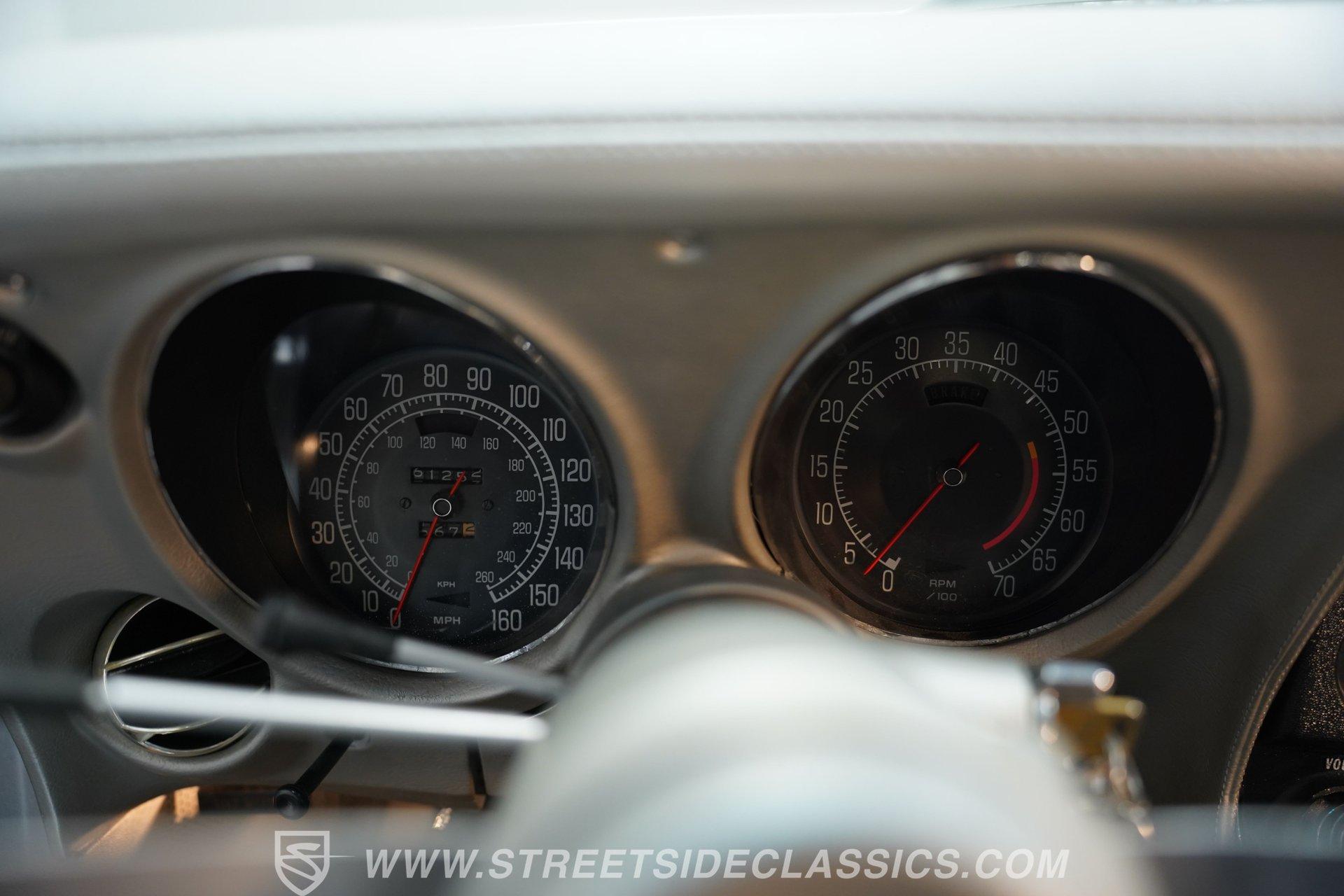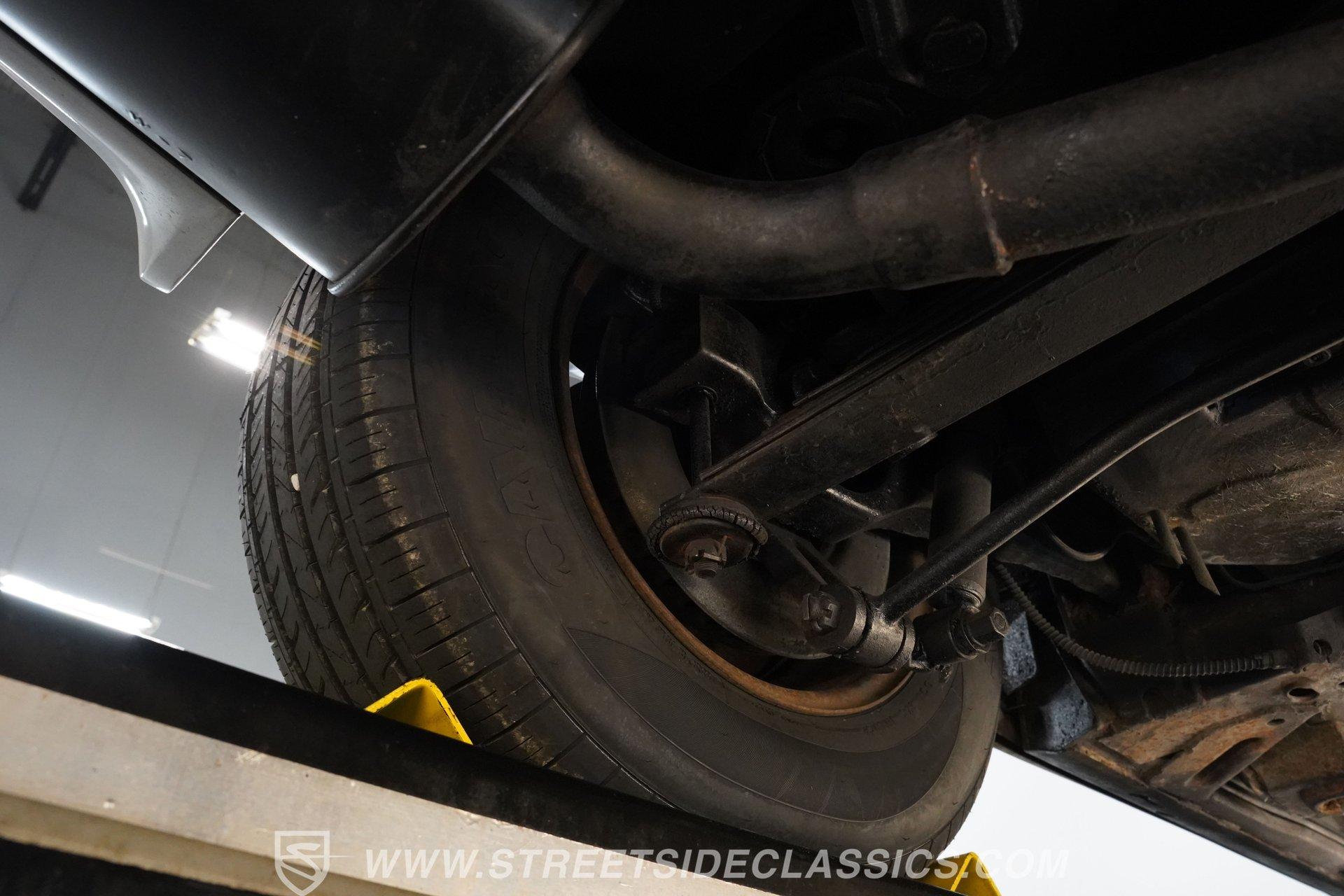Slip inside the cabin and feel the tactile embrace of the spruced-up silver vinyl bucket seats, designed for comfort and style. Power windows glide smoothly at your fingertips, while the tilt and telescopic steering wheel lets you tailor your driving position perfectly. Classic AM/FM radio keeps the soundtrack of your journey authentic, while the air conditioning cools the cabin on sunny days. Every detail inside echoes the car's restored charm and driving pleasure.