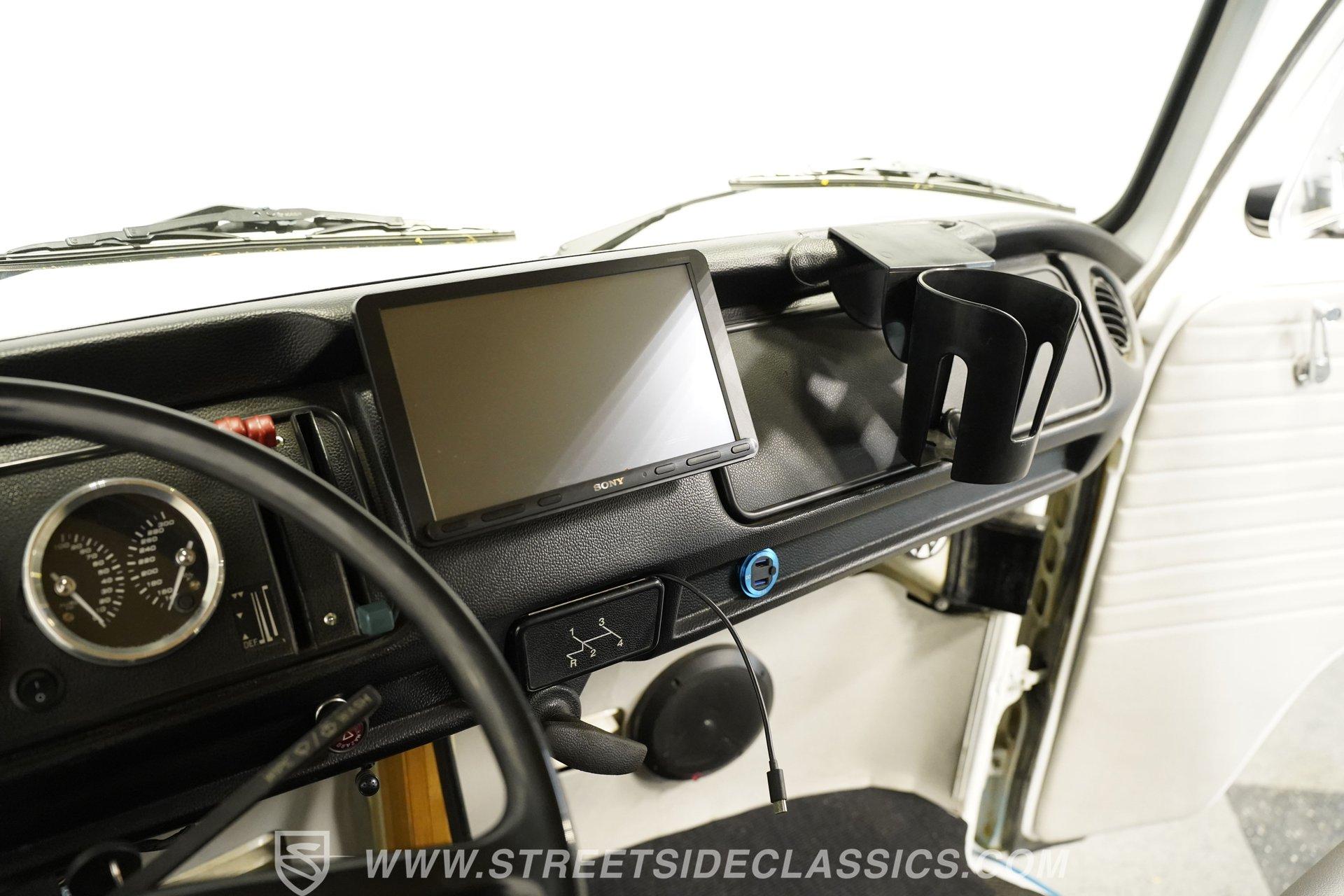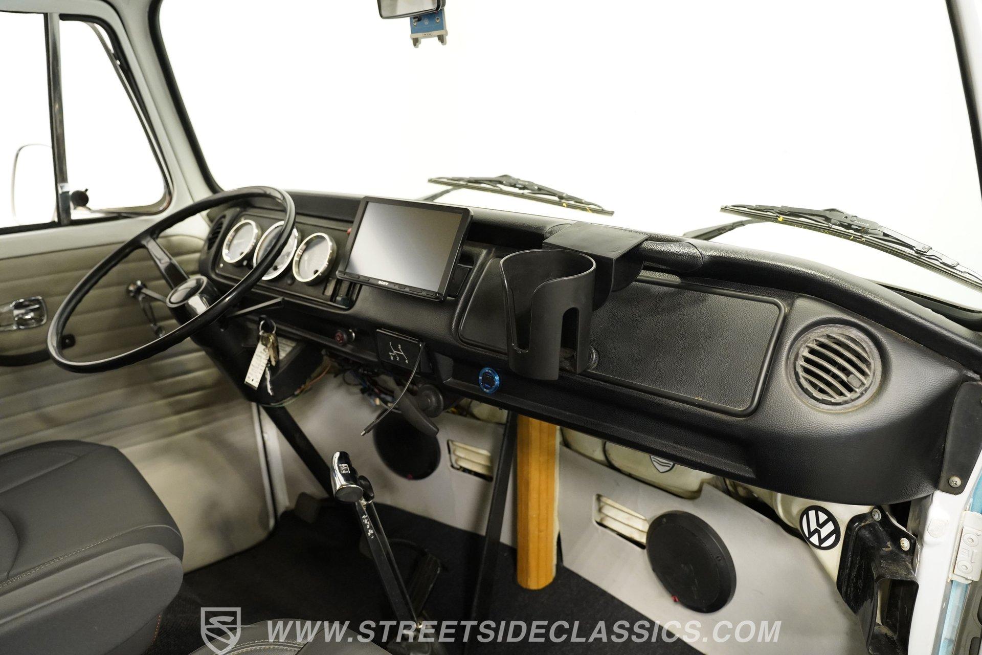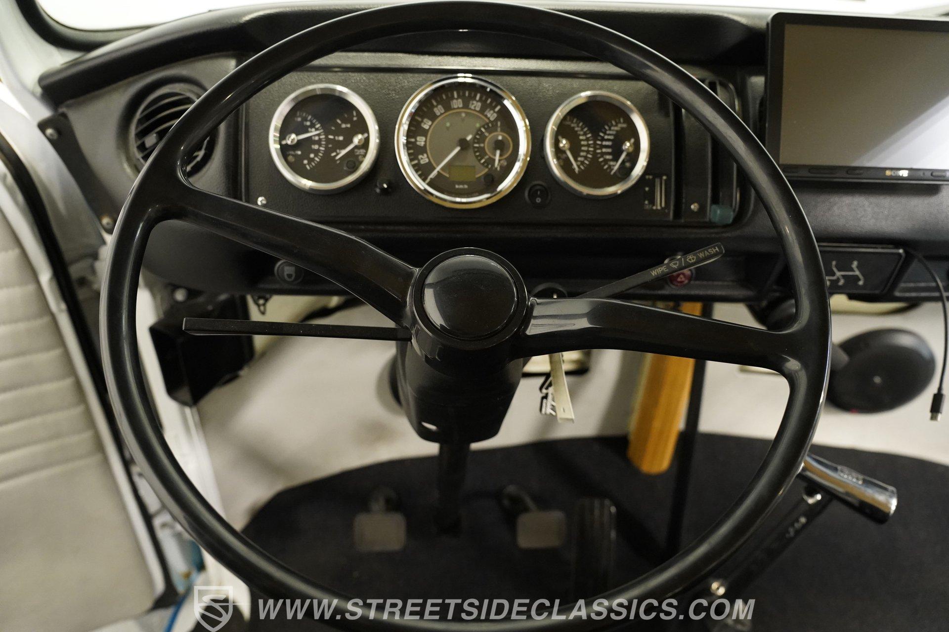 Under the hood, the 1800 CC engine hums to life, fueled by dual Solex 1-barrel carburetors that deliver a spirited response. Paired with a smooth 4-speed manual transmission and a VW bus transaxle rear axle, this Type 2 offers an engaging driving experience. The chambered dual exhaust lets the engine's rumble resonate, while power front disc brakes and drum brakes in the rear ensure confident stopping power. The factory-style suspension maintains that classic ride feel, making every drive a nostalgic thrill.