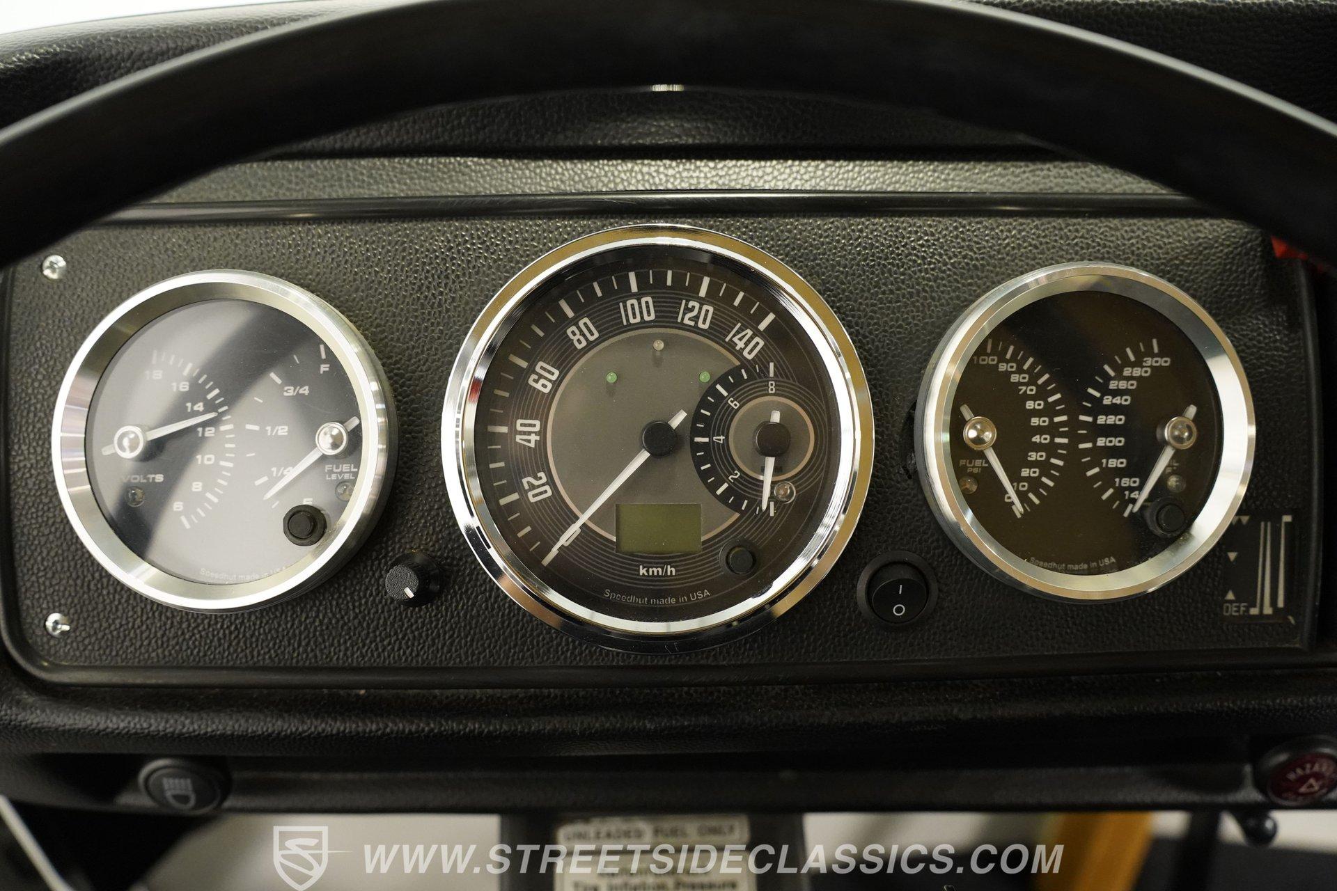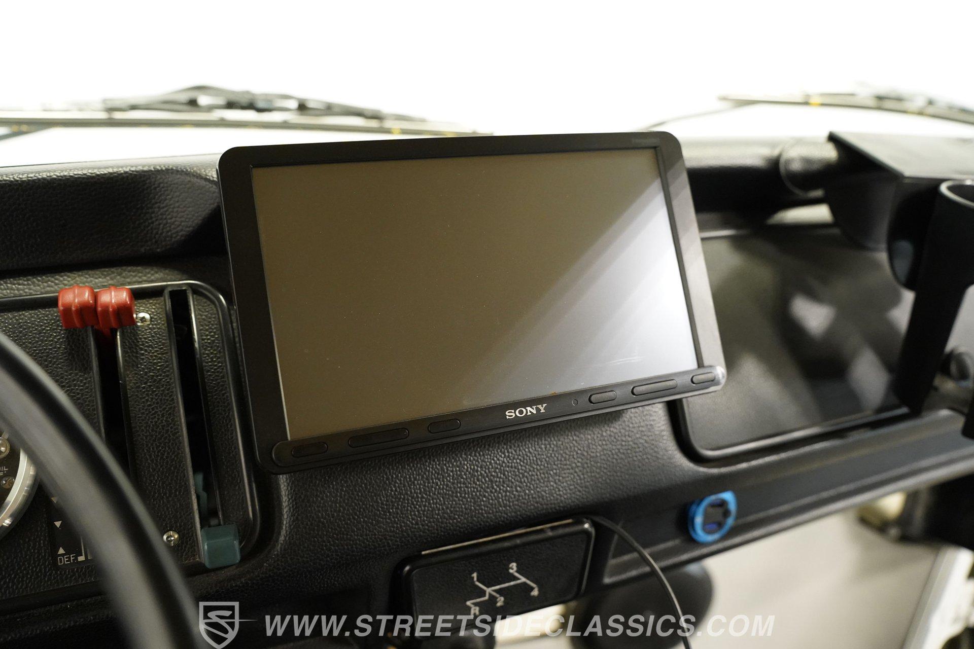 Slide inside and experience a cozy cabin enhanced with modern touches designed for comfort and style. The aftermarket front bucket seats offer excellent support while the dual rear bench seats create a welcoming social space. A Sony AM/FM/AUX touchscreen stereo keeps your favorite tunes close, and the upgraded dash gauges provide clear, vintage-inspired instrumentation. The wood-finished center flooring adds warmth, completing the inviting atmosphere of this classic interior.