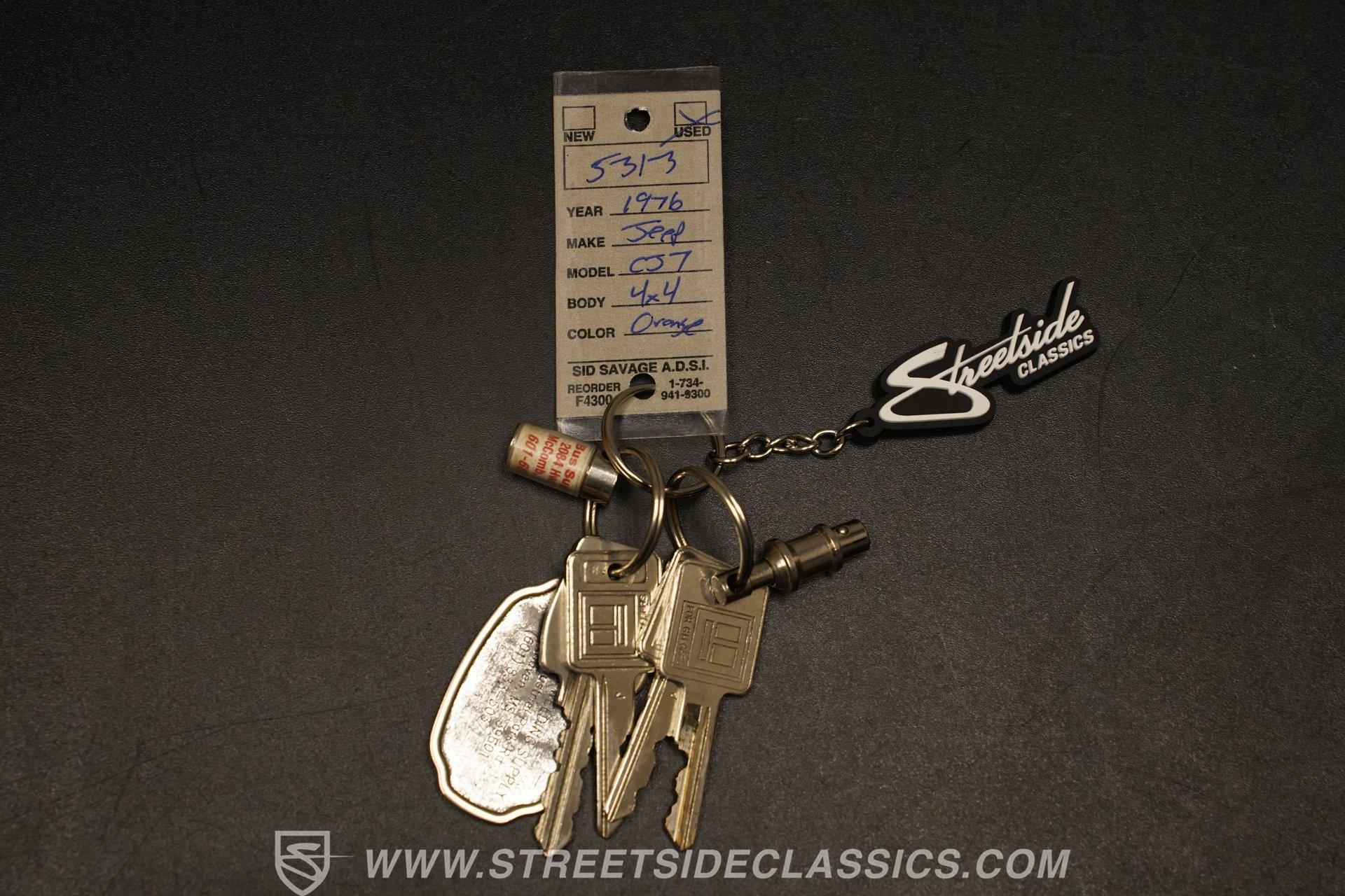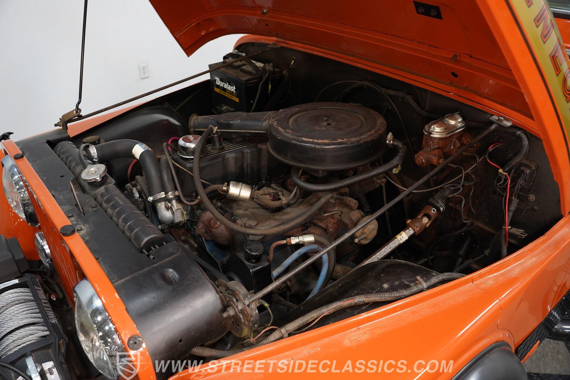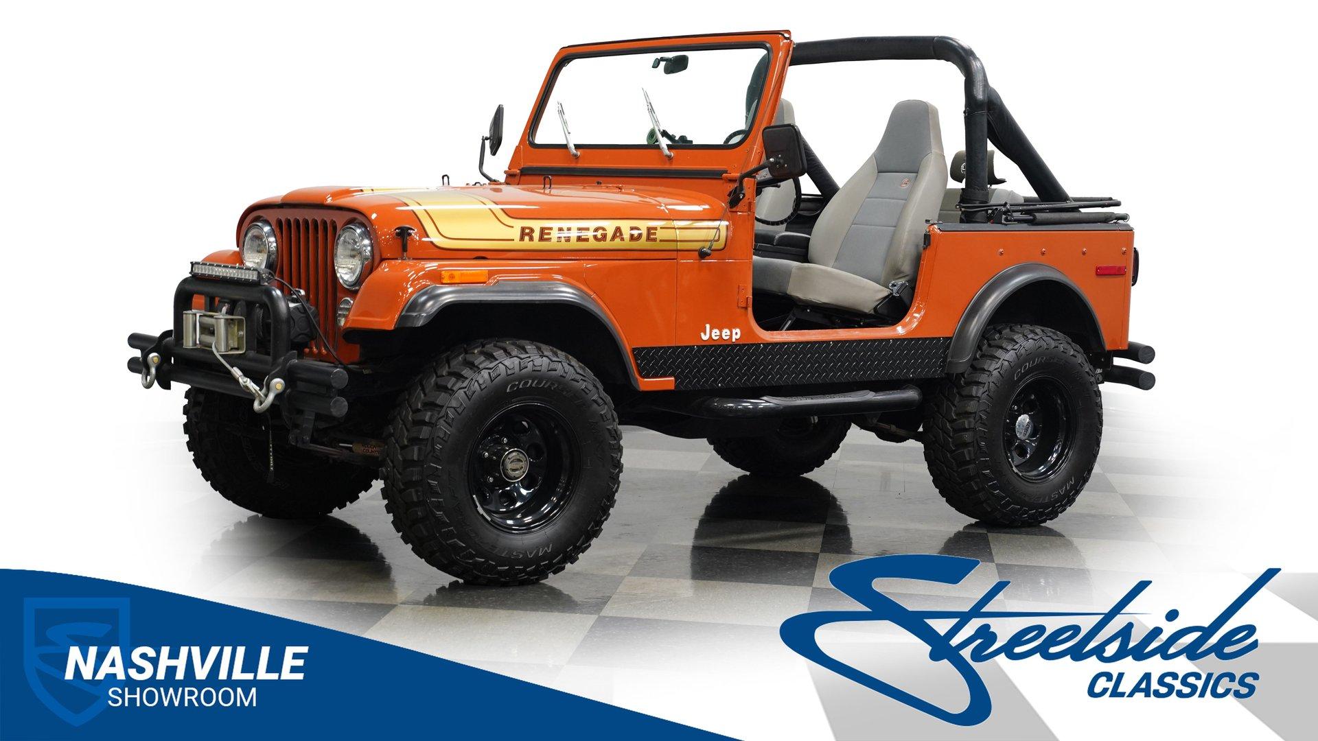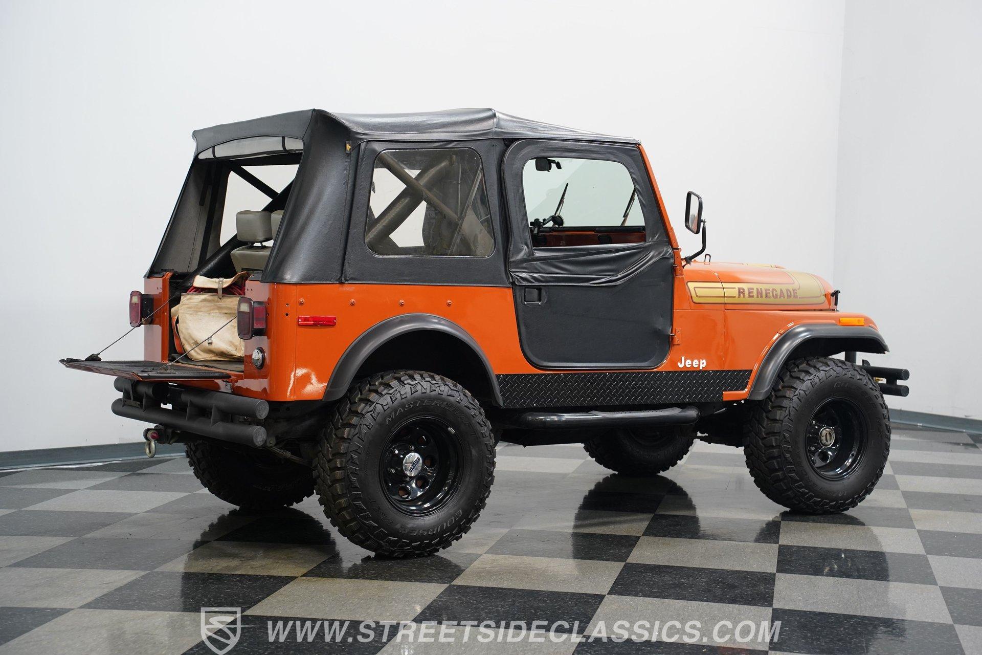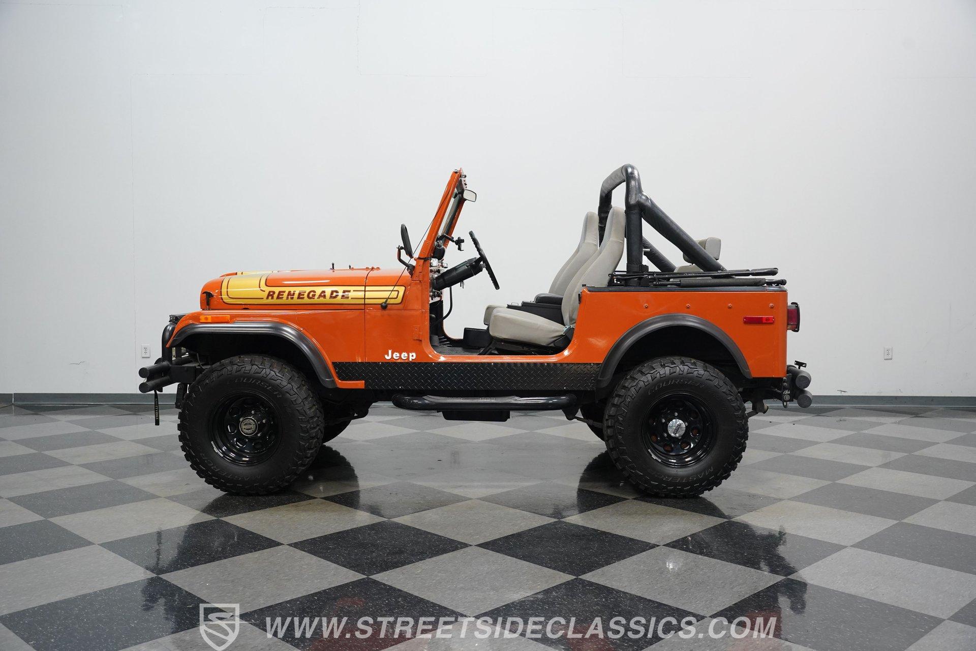 Step back into the rugged charm of the 1976 Jeep CJ7, a true icon of off-road freedom and vintage style. This classic is not just a vehicle, it's a statement. A symbol of adventure and raw capability that echoes through every mile. Cloaked in striking Renegade Orange with matching decals, this Jeep commands attention whether you're blazing trails or cruising town streets. With a fresh paint job, aggressive off-road tires, and a bold deer slayer bumper equipped with a 10,000-pound winch, the 1976 Jeep CJ7 is ready to conquer any terrain and turn heads wherever it goes.