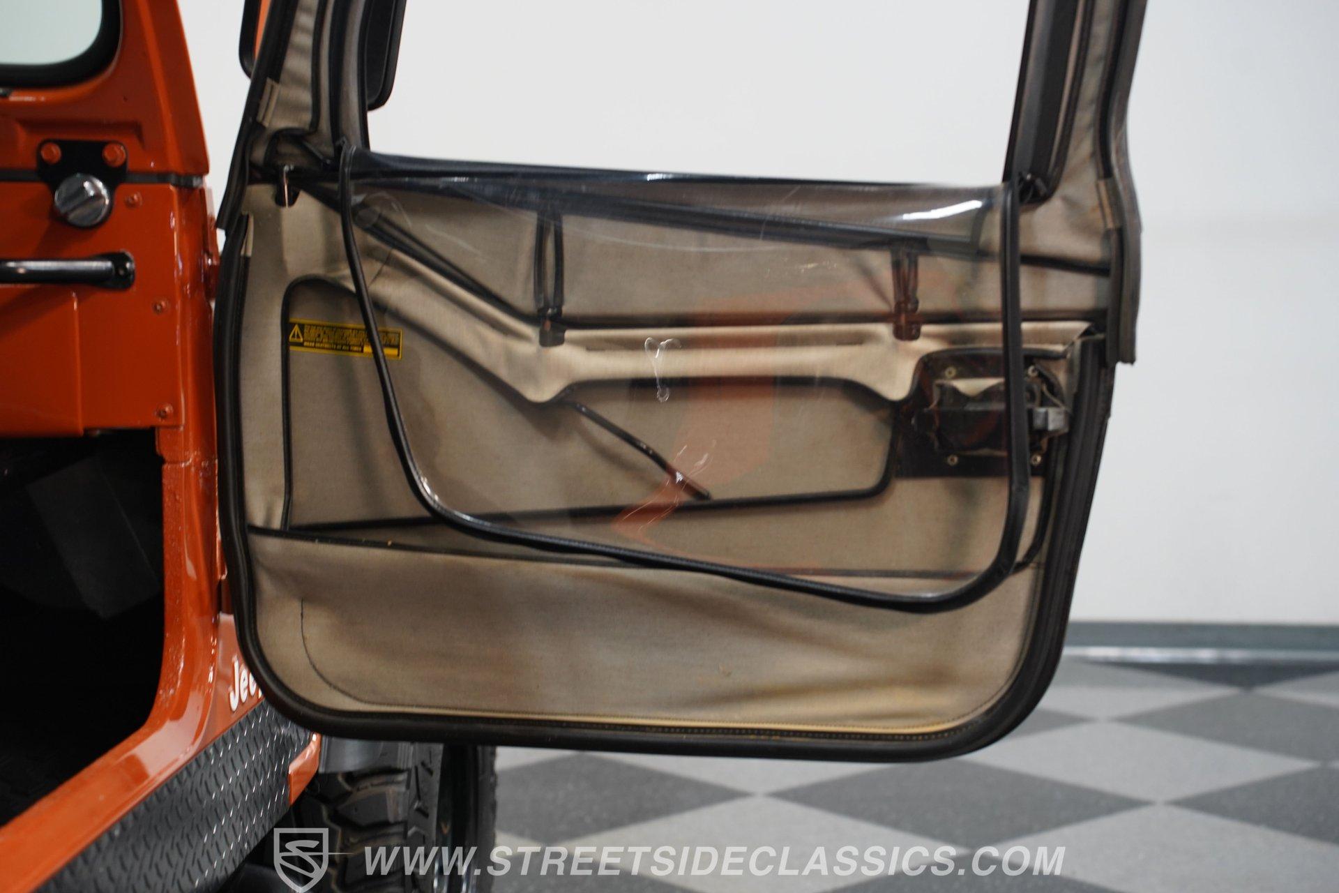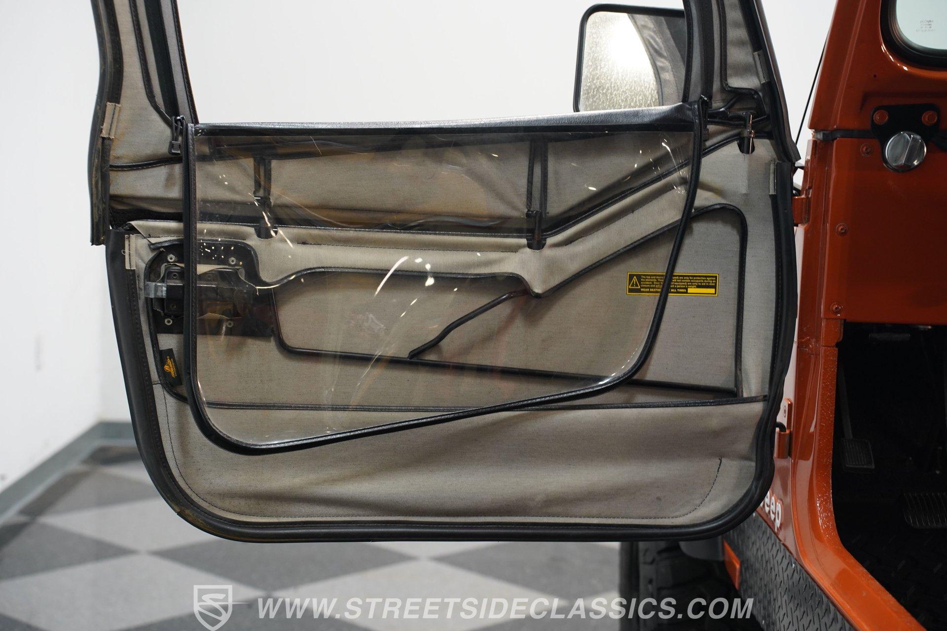 Under the hood, a strong 258 cubic inch inline six-cylinder engine delivers a steady rumble that thrills any enthusiast. Paired with a four-speed manual transmission and assisted by power steering, this Jeep offers a driving experience that's both engaging and manageable. The drivetrain remains true to its rugged roots, while the aftermarket single exhaust adds a satisfying growl on every gear shift. This is a machine built for both trailblazing and vintage driving pleasure.