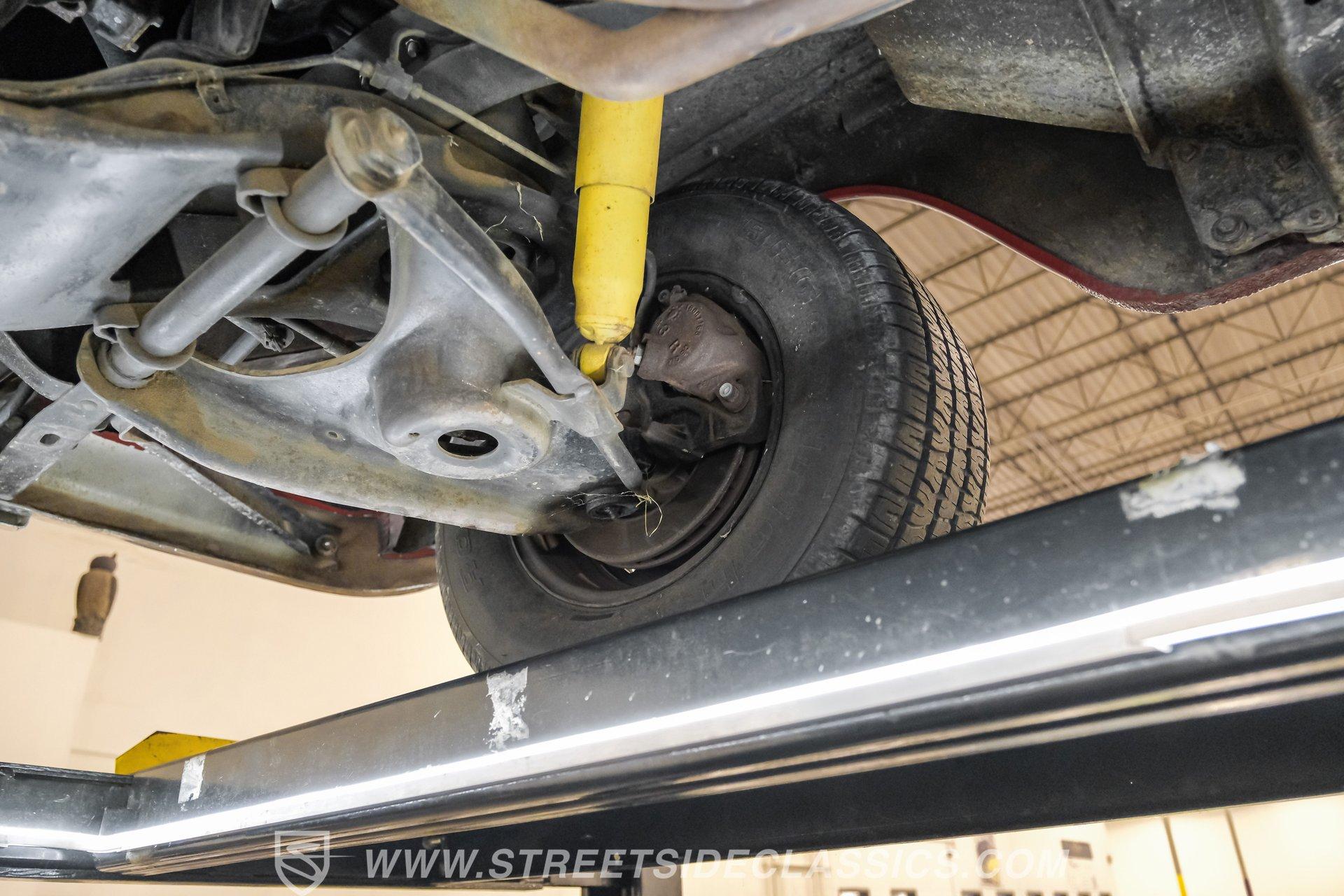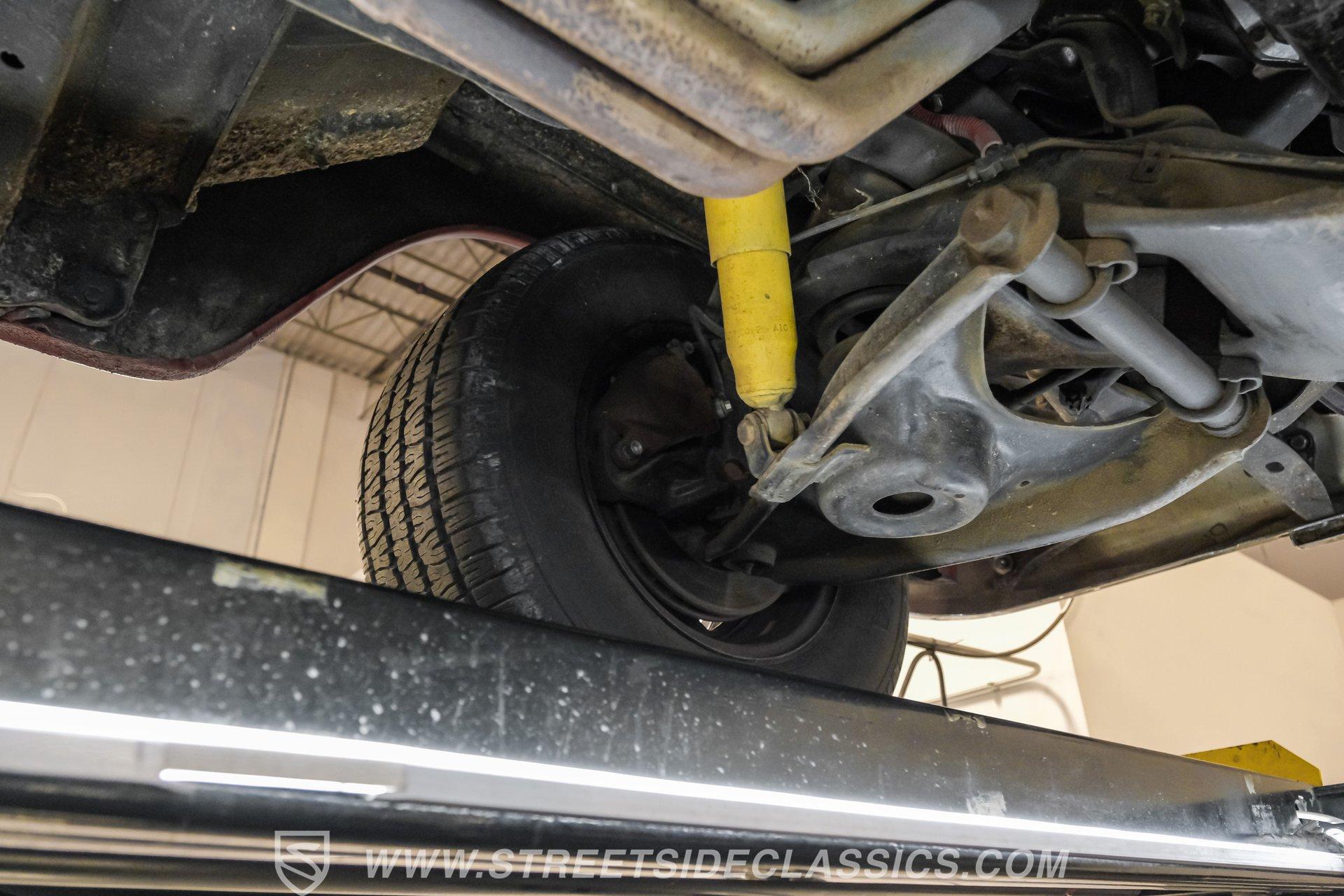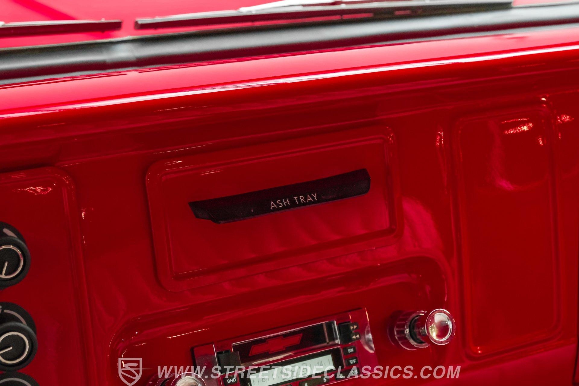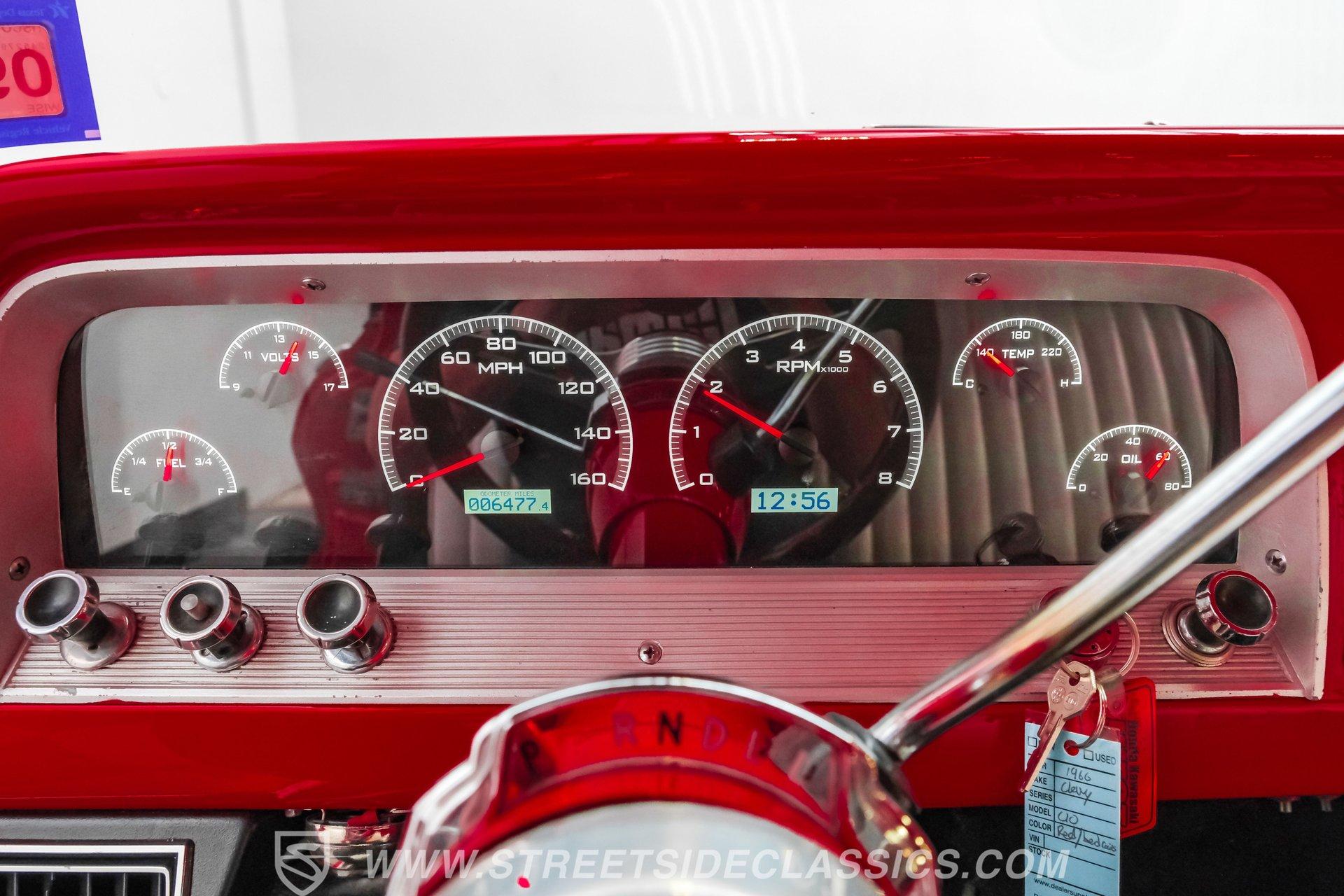 Inside, the white vinyl bench seat invites you to relax while the red factory dashboard, enhanced with Dakota Digital gauges, provides clear, precise information at a glance. The Grant wood rim steering wheel on the factory column adds a touch of classic craftsmanship, while the cold-blowing under-dash air conditioning and RetroSound AM/FM cassette radio keep you comfortable and entertained on every journey.