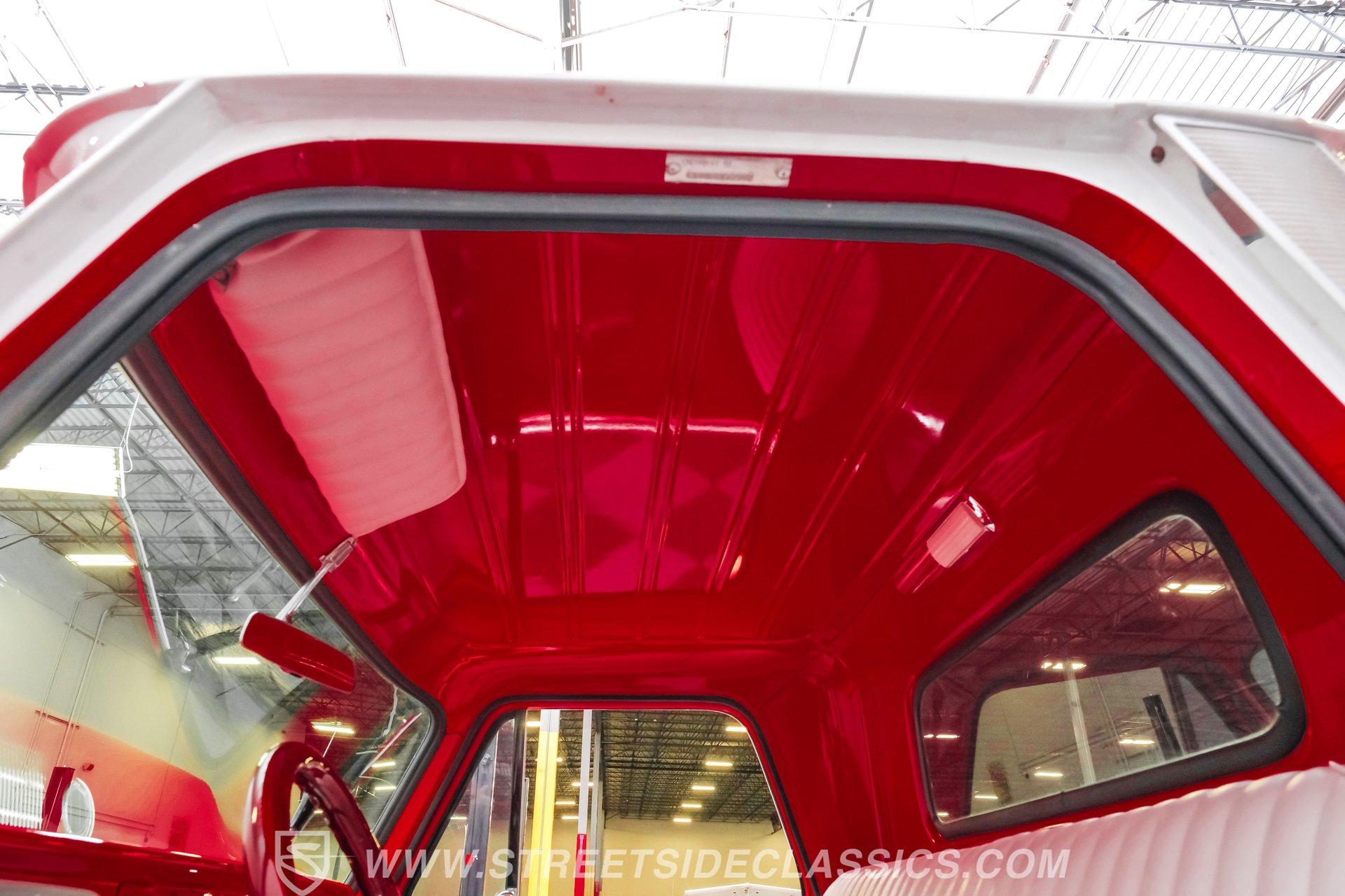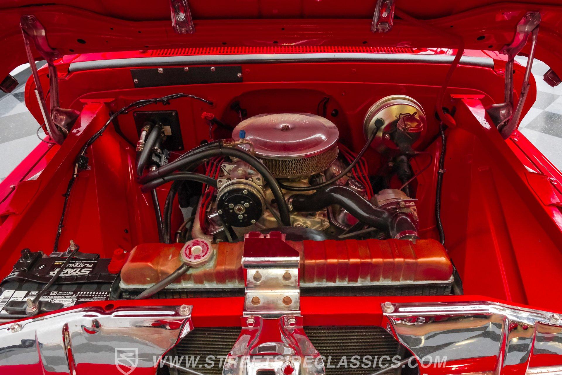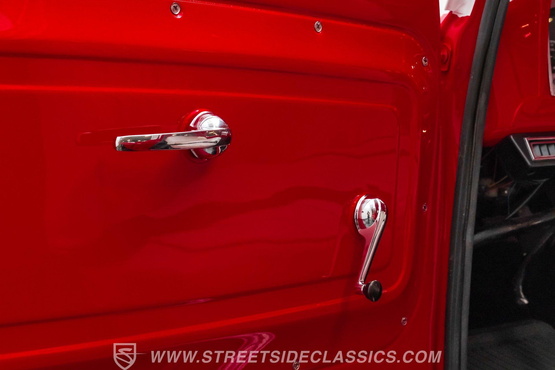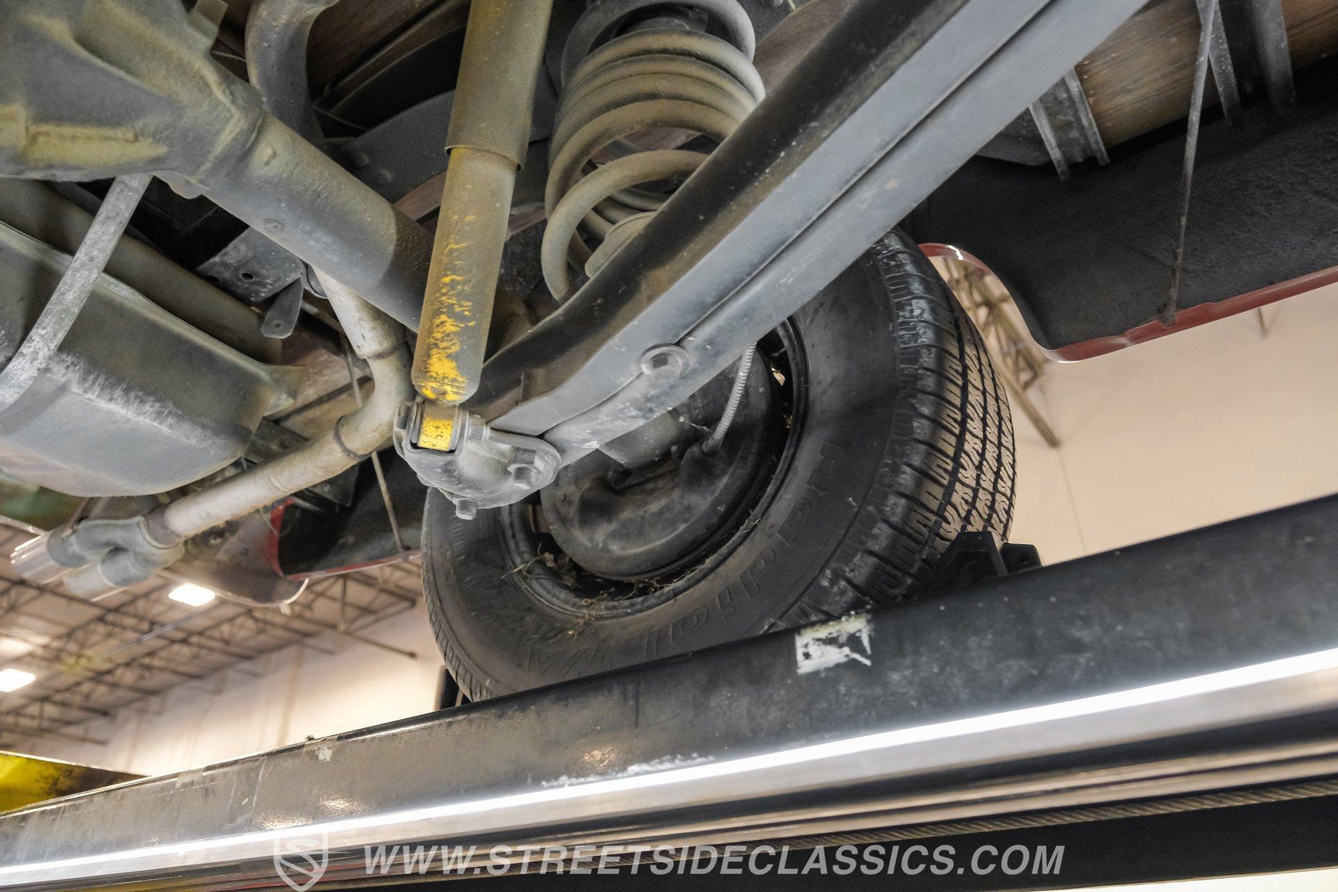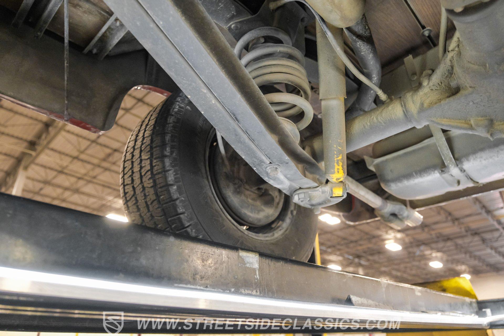 Inside, the white vinyl bench seat invites you to relax while the red factory dashboard, enhanced with Dakota Digital gauges, provides clear, precise information at a glance. The Grant wood rim steering wheel on the factory column adds a touch of classic craftsmanship, while the cold-blowing under-dash air conditioning and RetroSound AM/FM cassette radio keep you comfortable and entertained on every journey.
