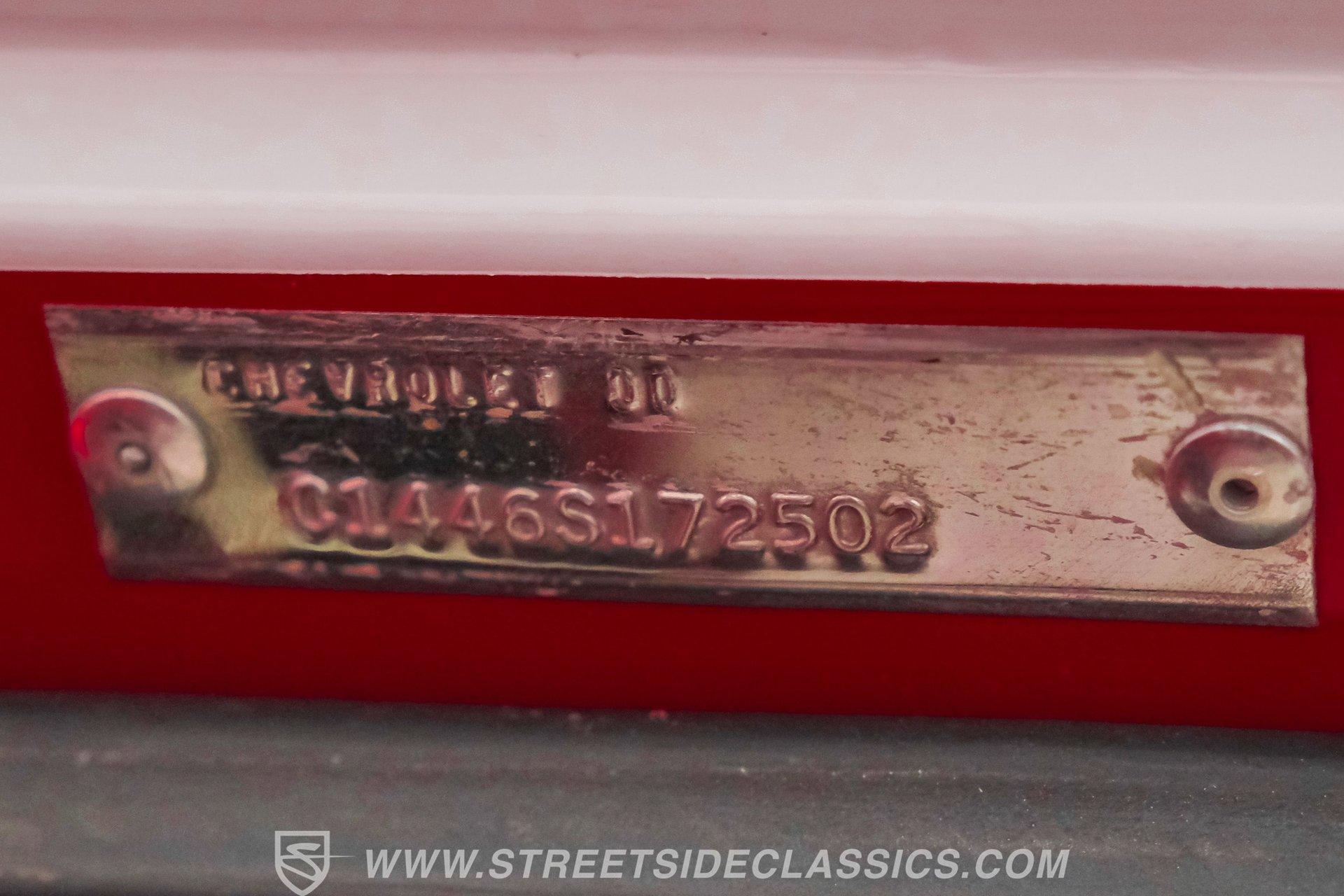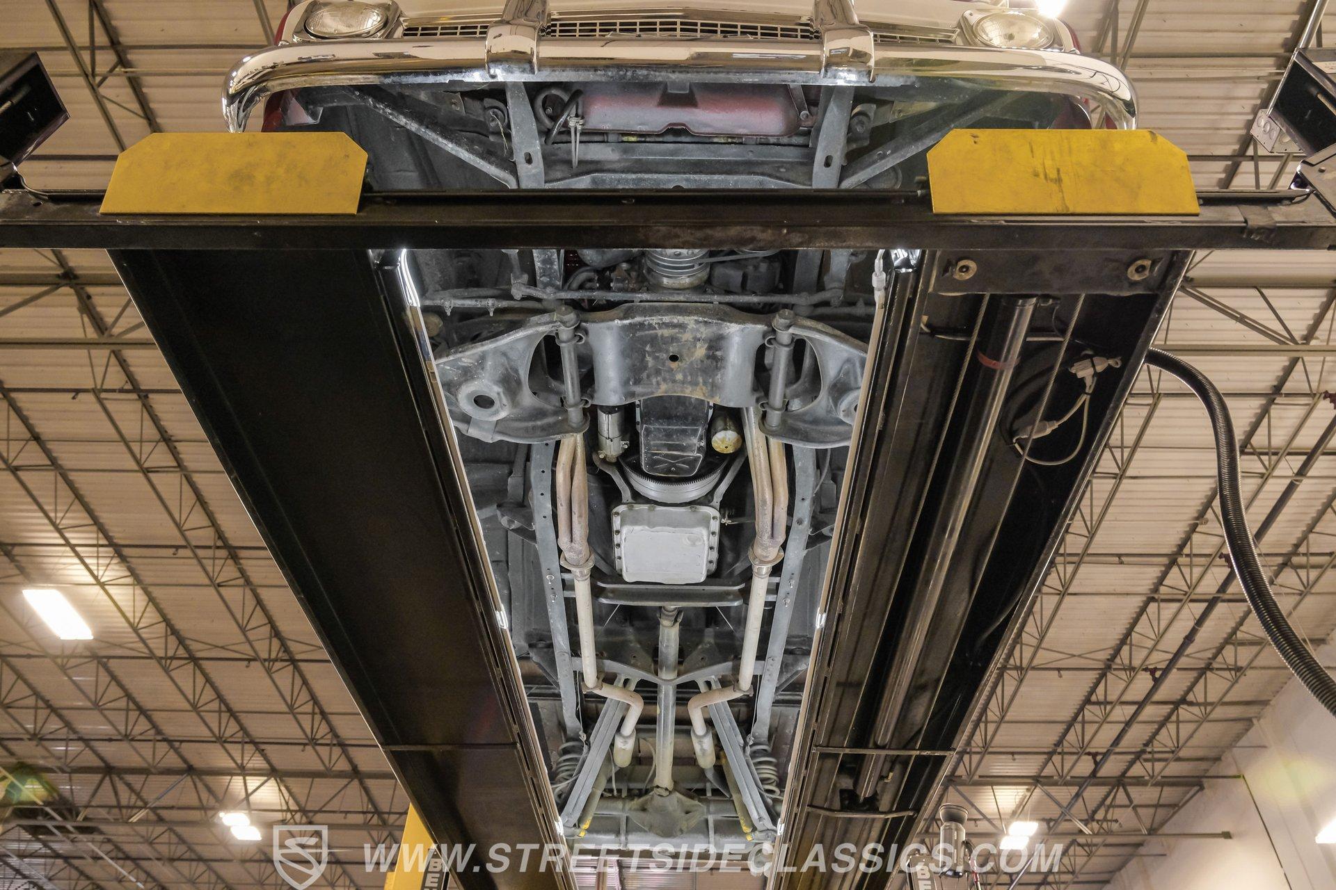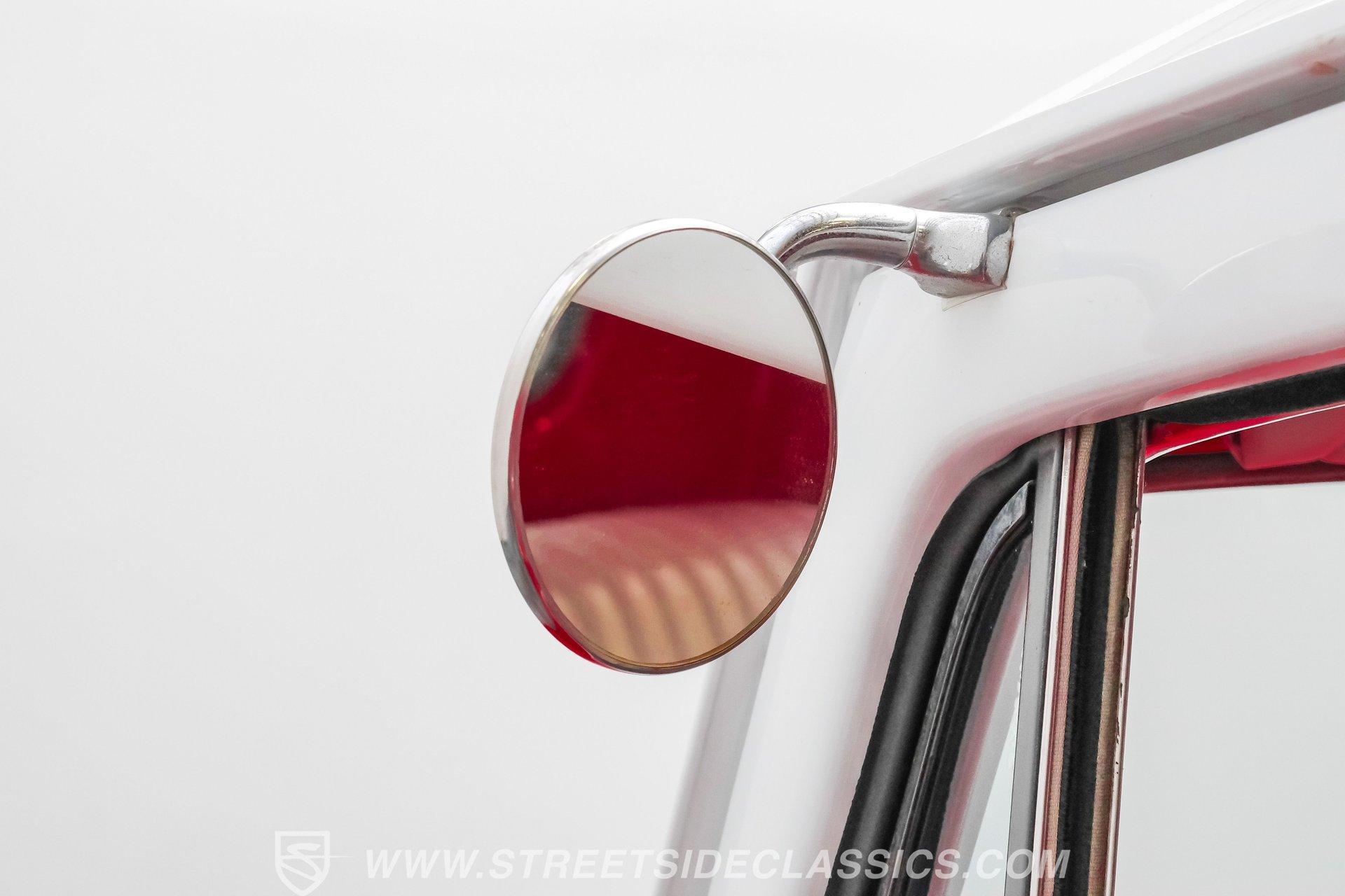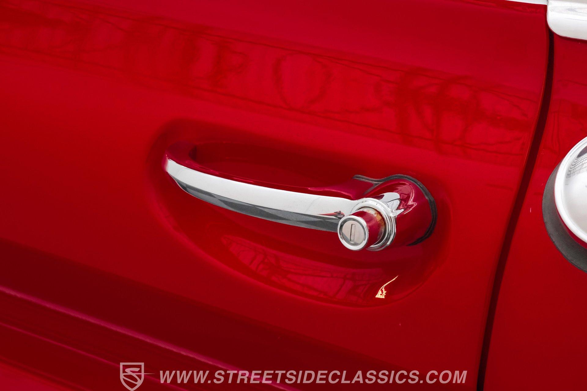 Inside, the white vinyl bench seat invites you to relax while the red factory dashboard, enhanced with Dakota Digital gauges, provides clear, precise information at a glance. The Grant wood rim steering wheel on the factory column adds a touch of classic craftsmanship, while the cold-blowing under-dash air conditioning and RetroSound AM/FM cassette radio keep you comfortable and entertained on every journey.