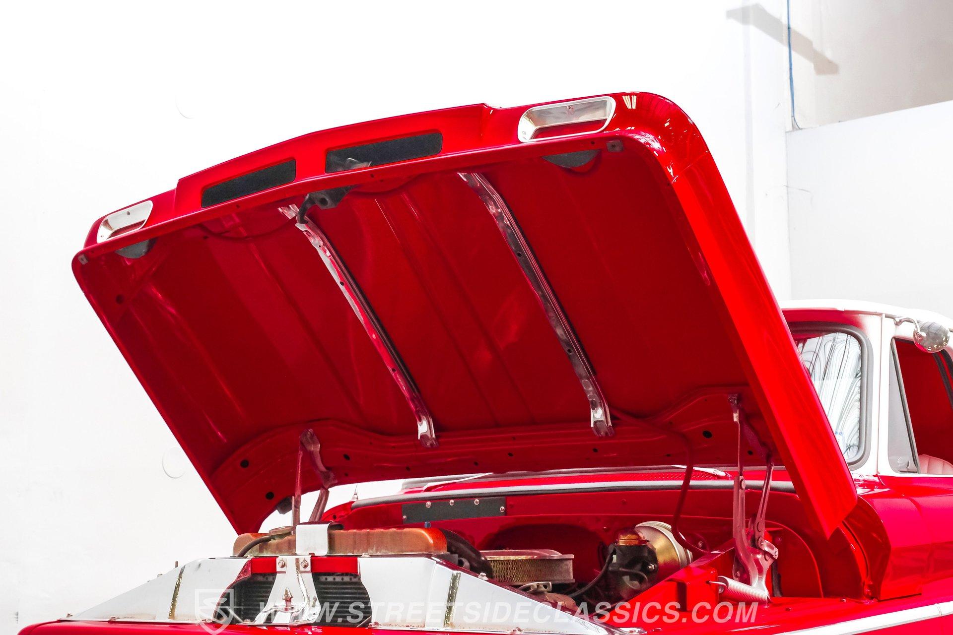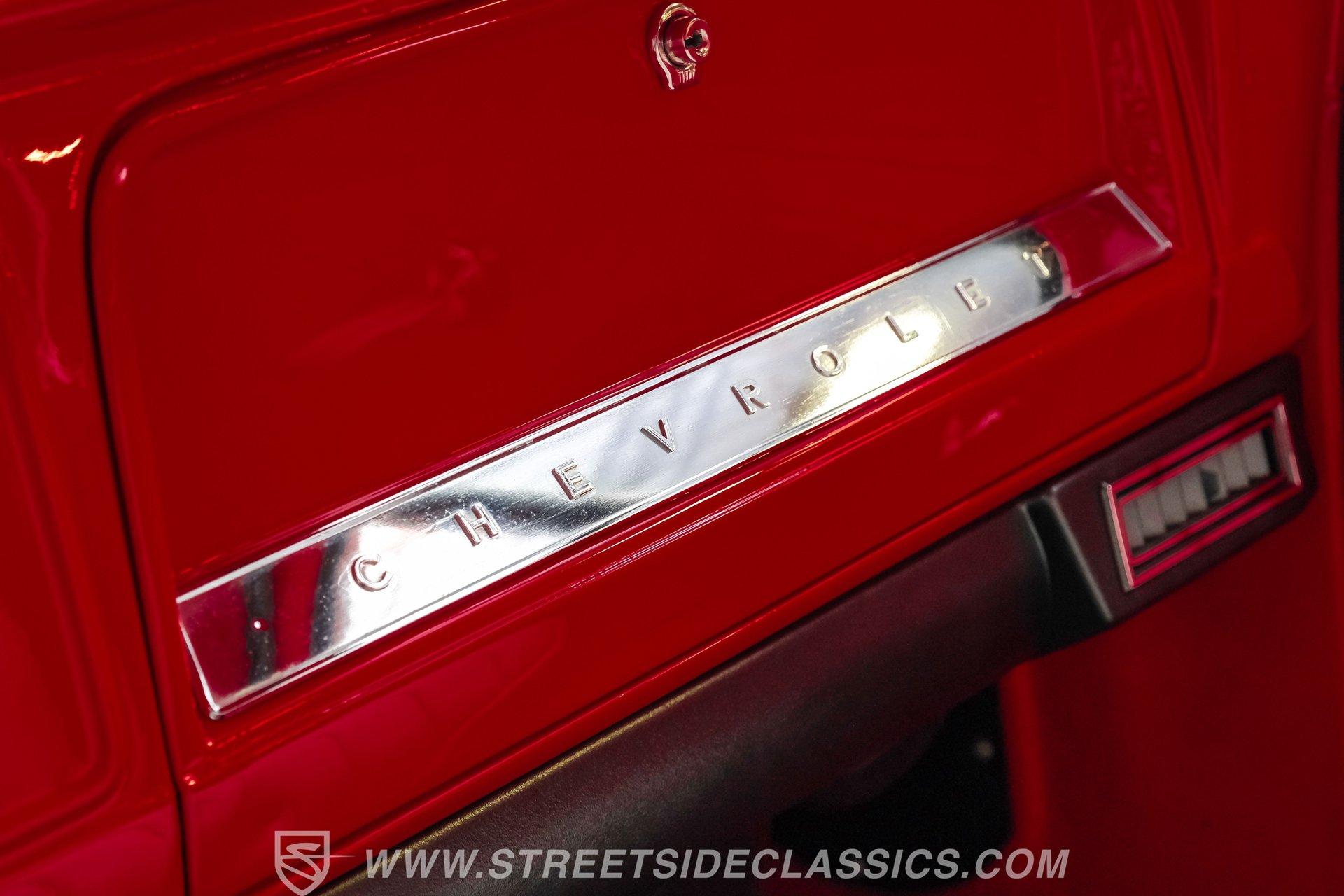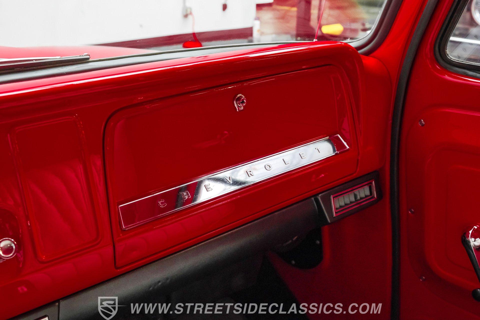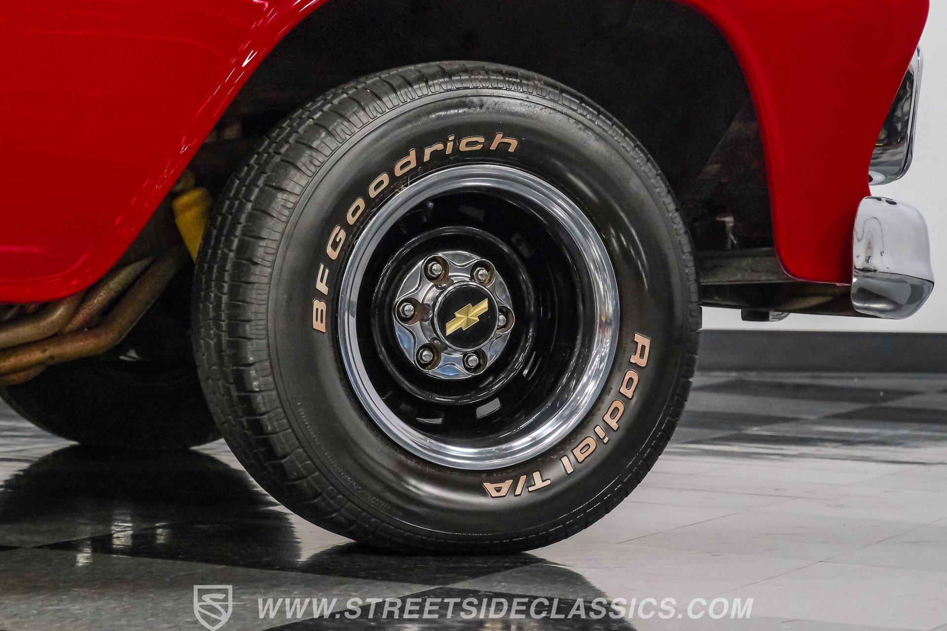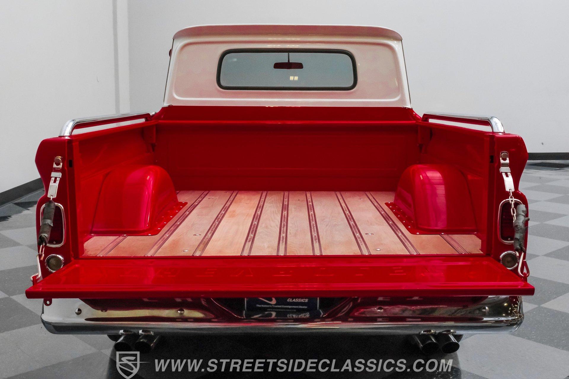 This 1966 Chevrolet C10 is a standout blend of classic style and honest muscle, restored to be driven and enjoyed. Refinished in 2014 in factory-correct Medium Red and White, the two-tone paint highlights the truck's iconic lines, accented by chrome bumpers, grille, and subtle side stripes. It sits just right with a slightly lowered factory stance, rolling on 15-inch steel wheels with hubcaps and BFGoodrich white-letter tires. Details like the wood plank bed and relocated under-bed fuel tank add both functionality and visual appeal, making this C10 as purposeful as it is eye-catching-whether it's cruising Main Street or heading out for a weekend escape.