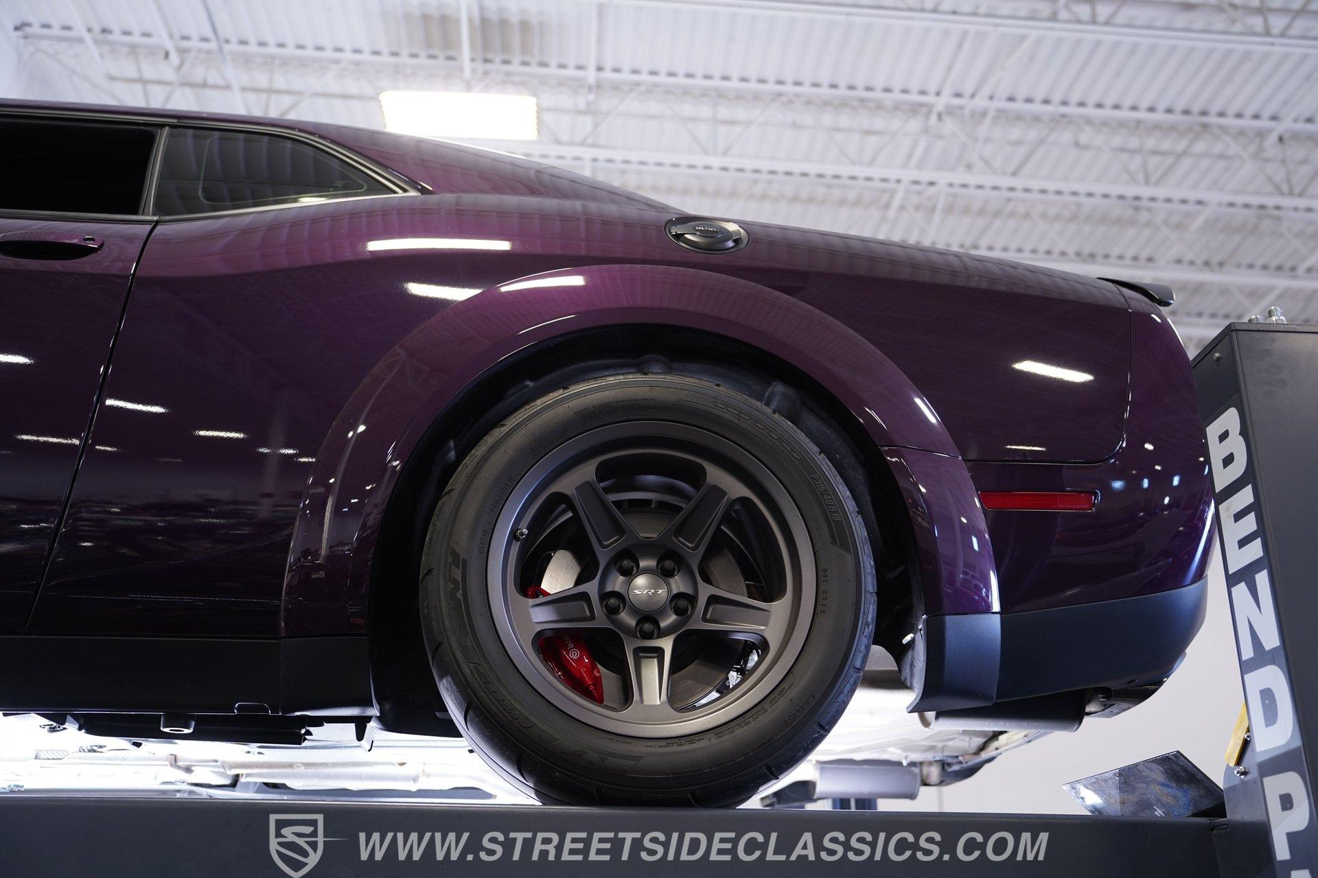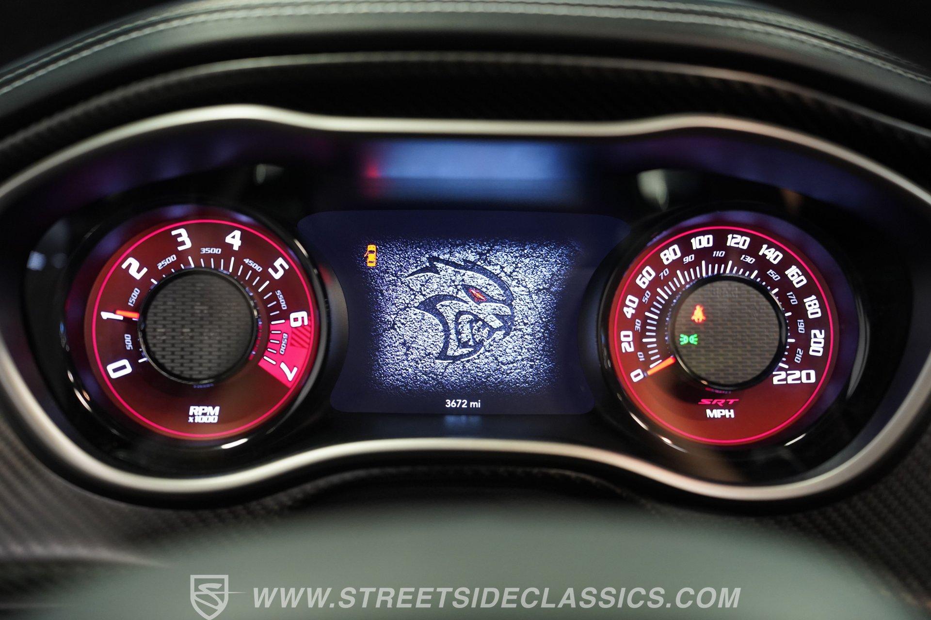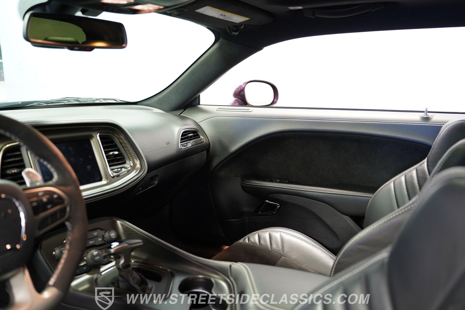 Under the hood, the 6.2L supercharged HEMI engine unleashes over 800 horsepower, delivering an exhilarating rumble that reverberates through the chassis. Paired with an 8-speed ZF automatic transmission, shifts are smooth and lightning-fast, translating raw power into seamless acceleration. Brembo ceramic brakes provide exceptional stopping power, while the dual exhaust system announces your presence with a deep, aggressive growl. The factory Bilstein shocks and limited-slip rear differential ensure that every twist and turn is met with precise control and confidence.