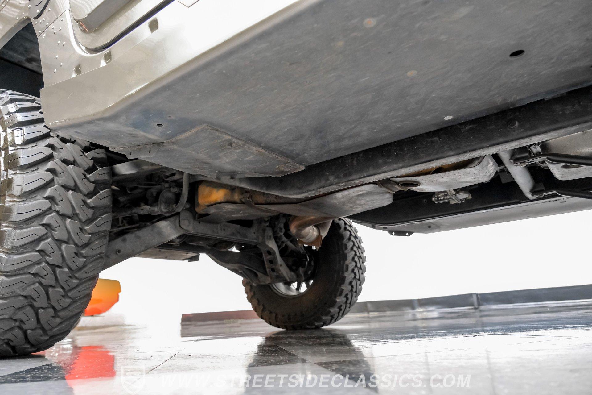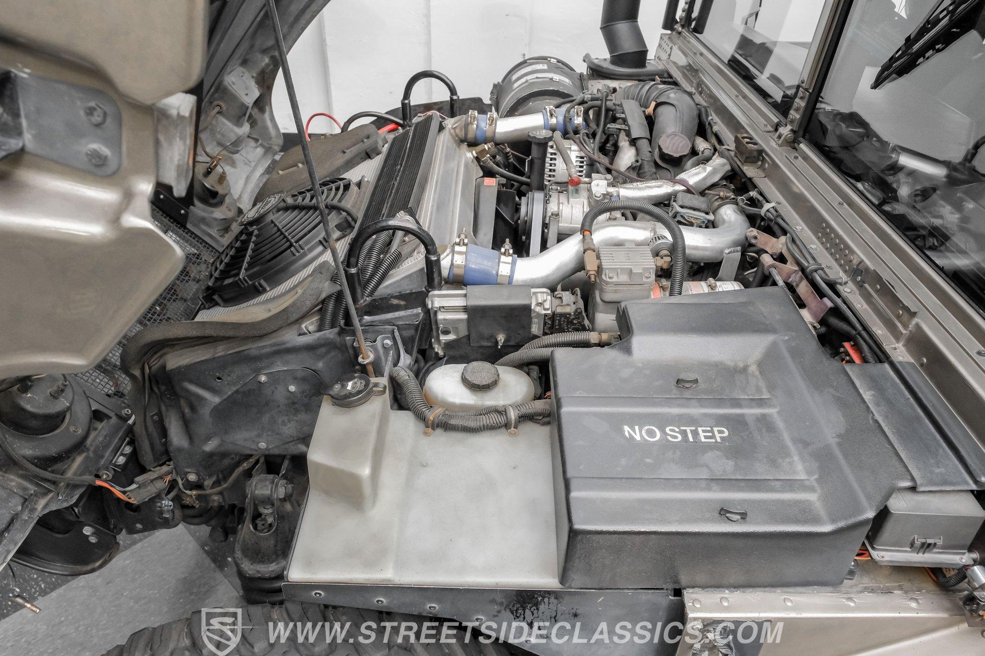 Underneath that big front-hinged clamshell hood, we find the heart of this Predator conversion. A 6.6-liter Predator Inc.-built Duramax LBZ diesel V-8 engine replaces the old stock 6.5-liter unit. This monster produces approximately 450-horsepower and 900 foot-pounds of torque, while averaging an improved 18-20 combined miles per gallon. That power is routed through a beefed-up Allison six-speed automatic transmission before being sent through the selectable 2WD/4WD/AWD transfer case and on to the 18-inch powder-coated Method wheels shod with massive 38-inch Toyo tires.