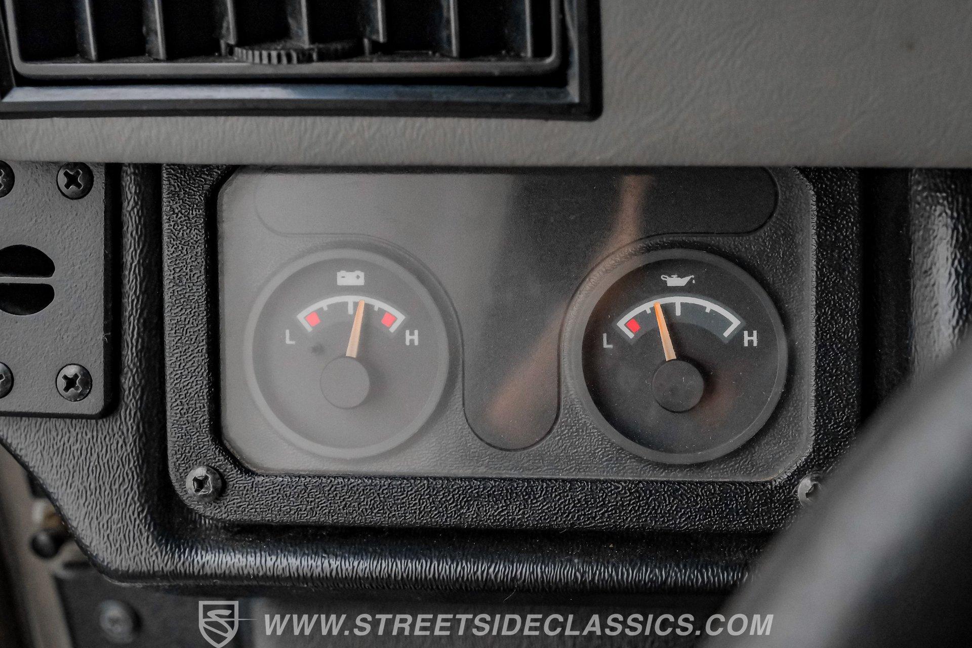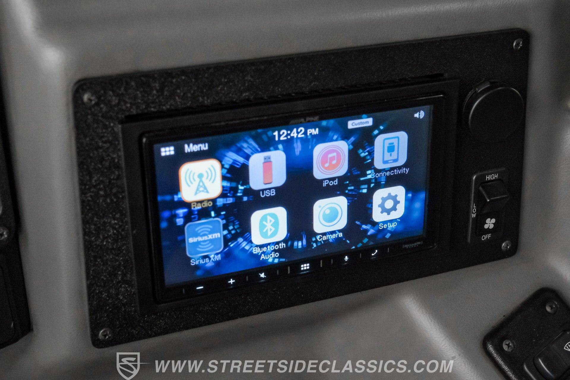 Inside, we find a relatively posh interior for a Hummer. A large center console separates a pair of high-back leather bucket seats, while a three-spoke power-assisted Momo wheel sits ahead of a Spartan two-pod gauge cluster featuring a 100-mph speedometer and 4,000-rpm tachometer. Power windows, locks, mirrors, air conditioning, backup camera, and cruise control make life a bit easier, while the upgraded Alpine AM/FM/AUX Double DIN head unit offers Bluetooth connectivity, providing far more soundtrack options than the unit it replaces.
