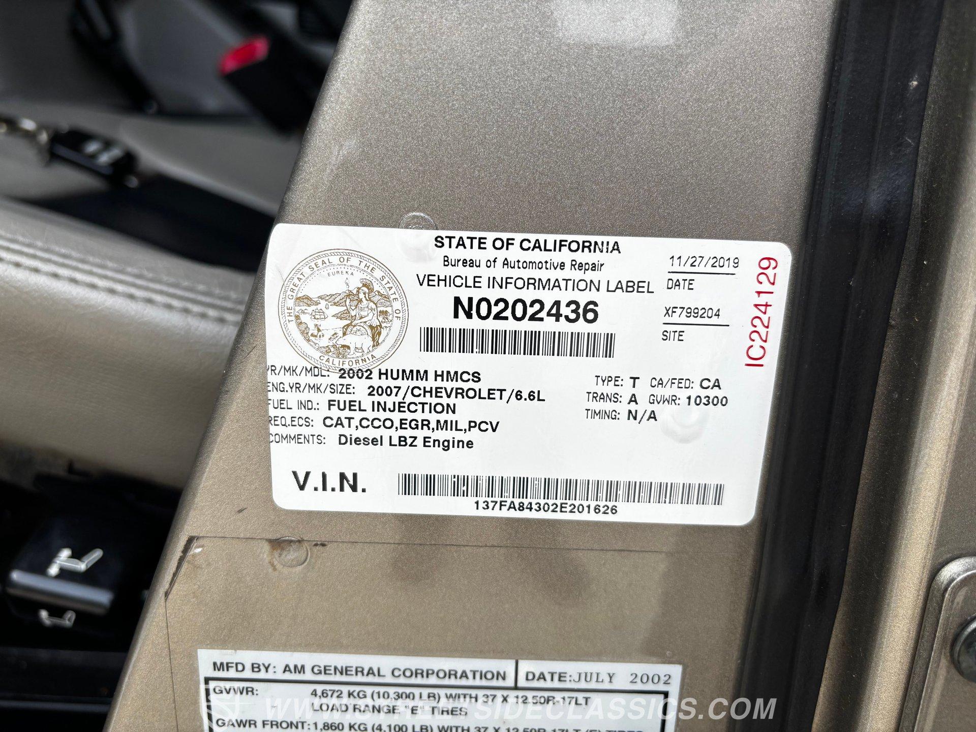 This 2002 Hummer H1 Wagon Predator Conversion rides on a lifted heavy-duty factory-style suspension, while four-wheel disc brakes wait to scrub off speed whenever called up on whether you're on or off-road. Meticulously maintained, this incredibly rare, unbelievably powerful, and undeniably head-turning H1 Hummer Predator Wagon Conversion is ready for its next lucky owner to add to its extremely low mileage count. If you've been looking for something that you aren't likely to find anywhere else, this special truck is the one you've been waiting for. Don't wait, call today!