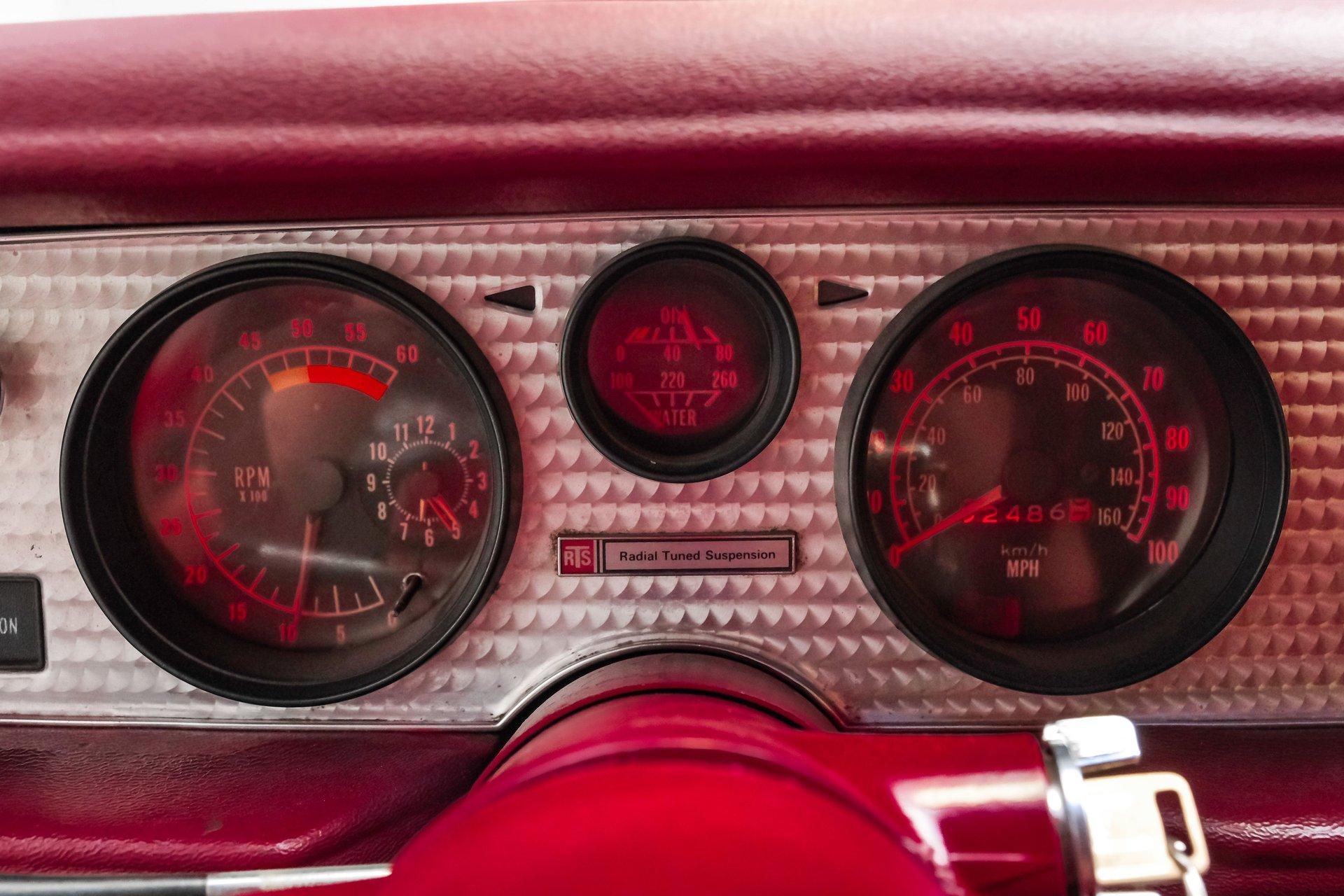 Step inside and feel the blend of comfort and classic style with new crushed velour bucket seats that hug you as you drive. The Carmine interior is accented by red-lit gauges and a factory AM/FM radio that keeps the vintage vibe alive. Power windows and functional air conditioning, ensure you stay comfortable during every mile. The dash is crack-free, and the clean carpet and headliner complete the inviting cabin atmosphere.