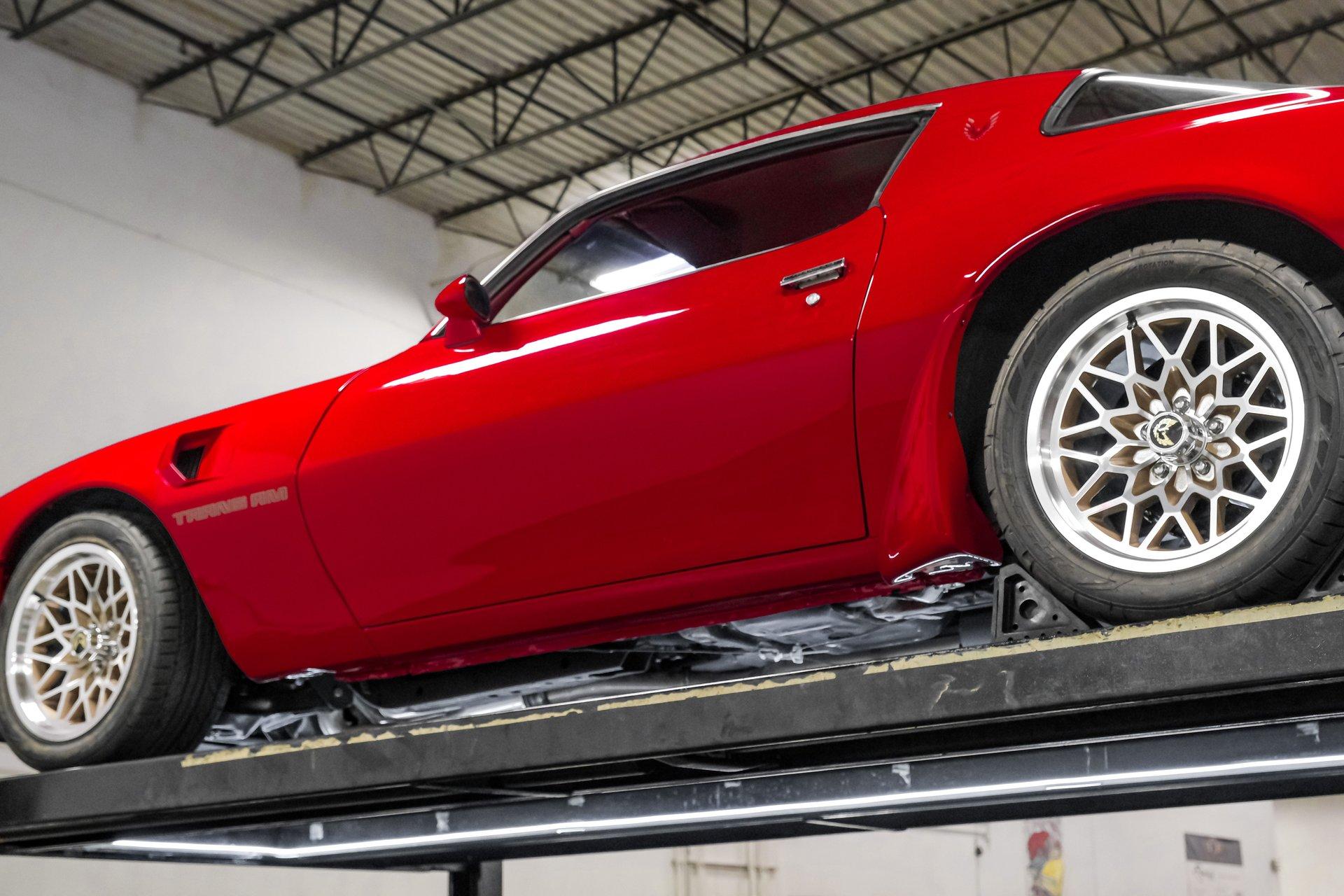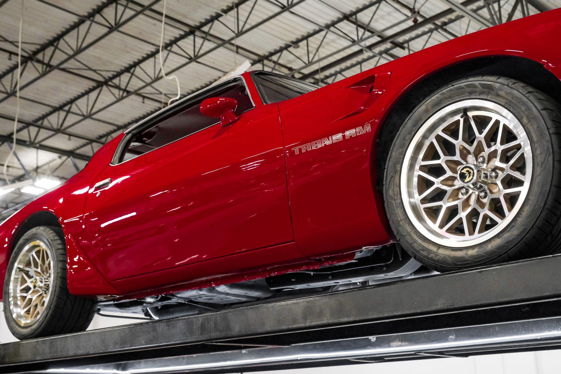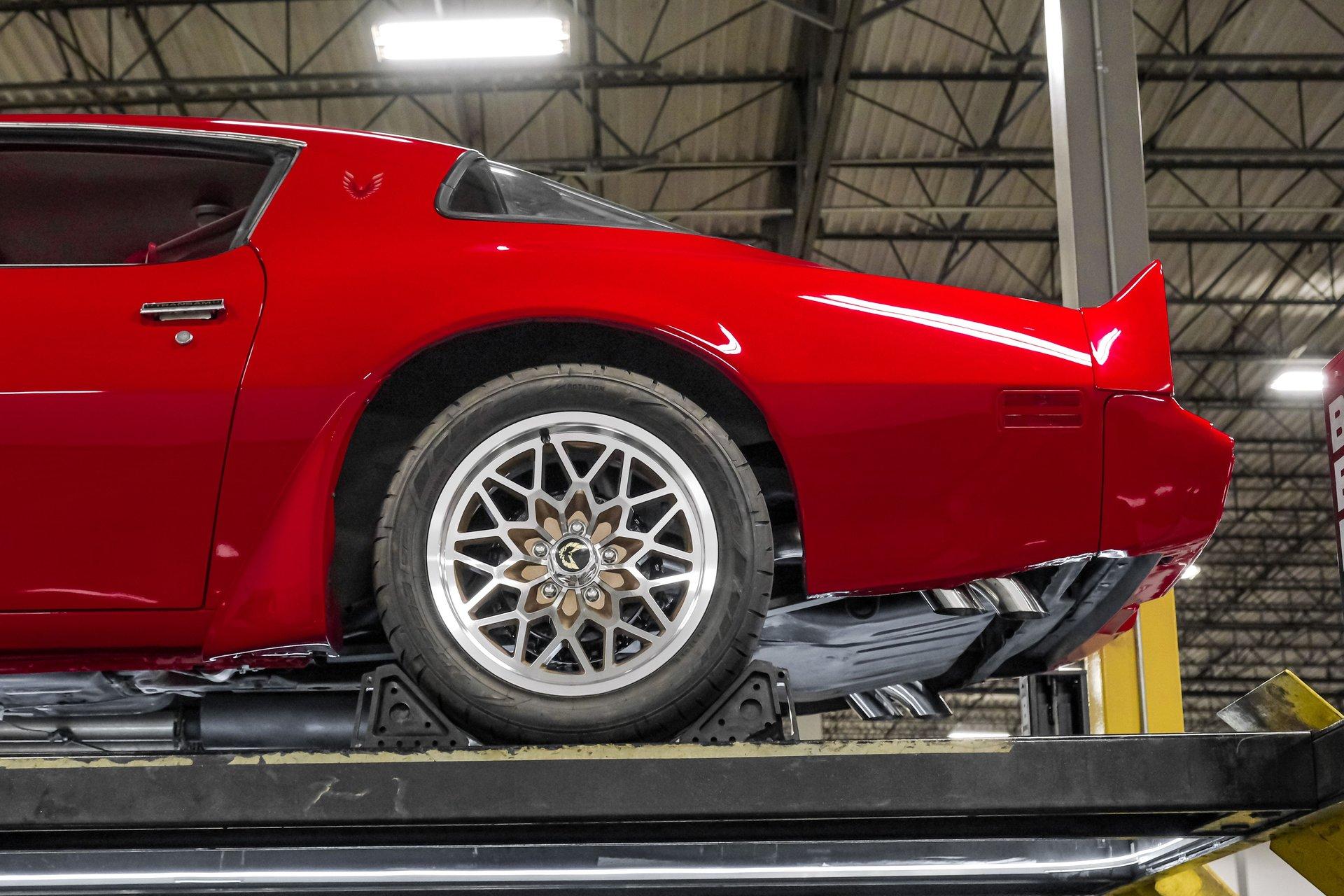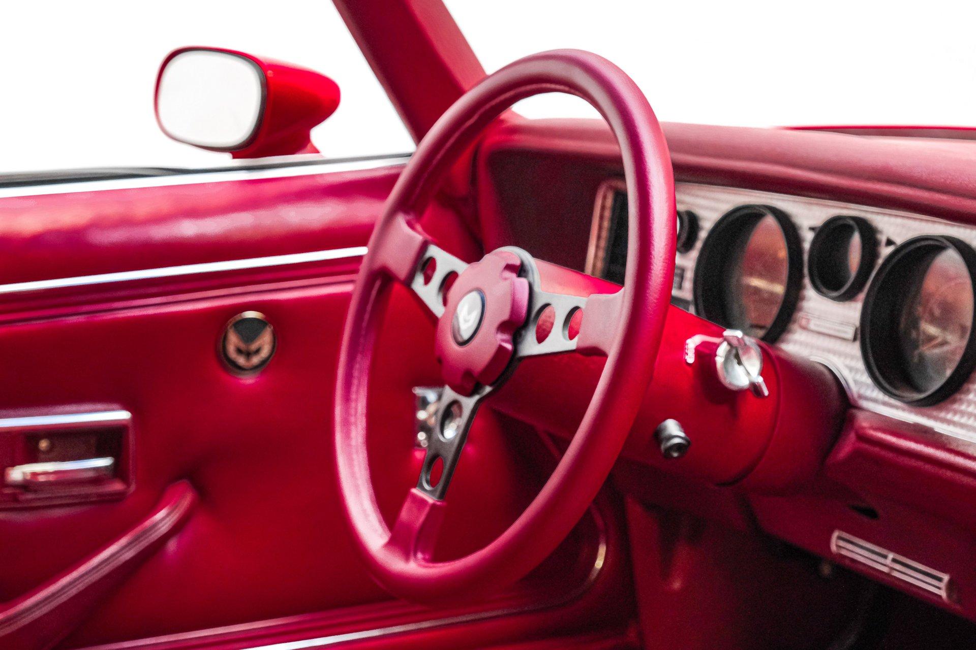 This 1979 Pontiac Firebird delivers classic American muscle with an unmistakable presence. Finished in factory correct Mayan Red and wearing proper Trans Am decals, its aggressive stance is matched by upgraded 17 inch Snowflake alloy wheels accented with chrome TA center caps and wrapped in Nitto tires. Every angle reflects the Firebird's performance driven heritage, blending vintage style with modern upgrades for a car that sounds right, looks right, and drives with the confidence of a true muscle car icon.