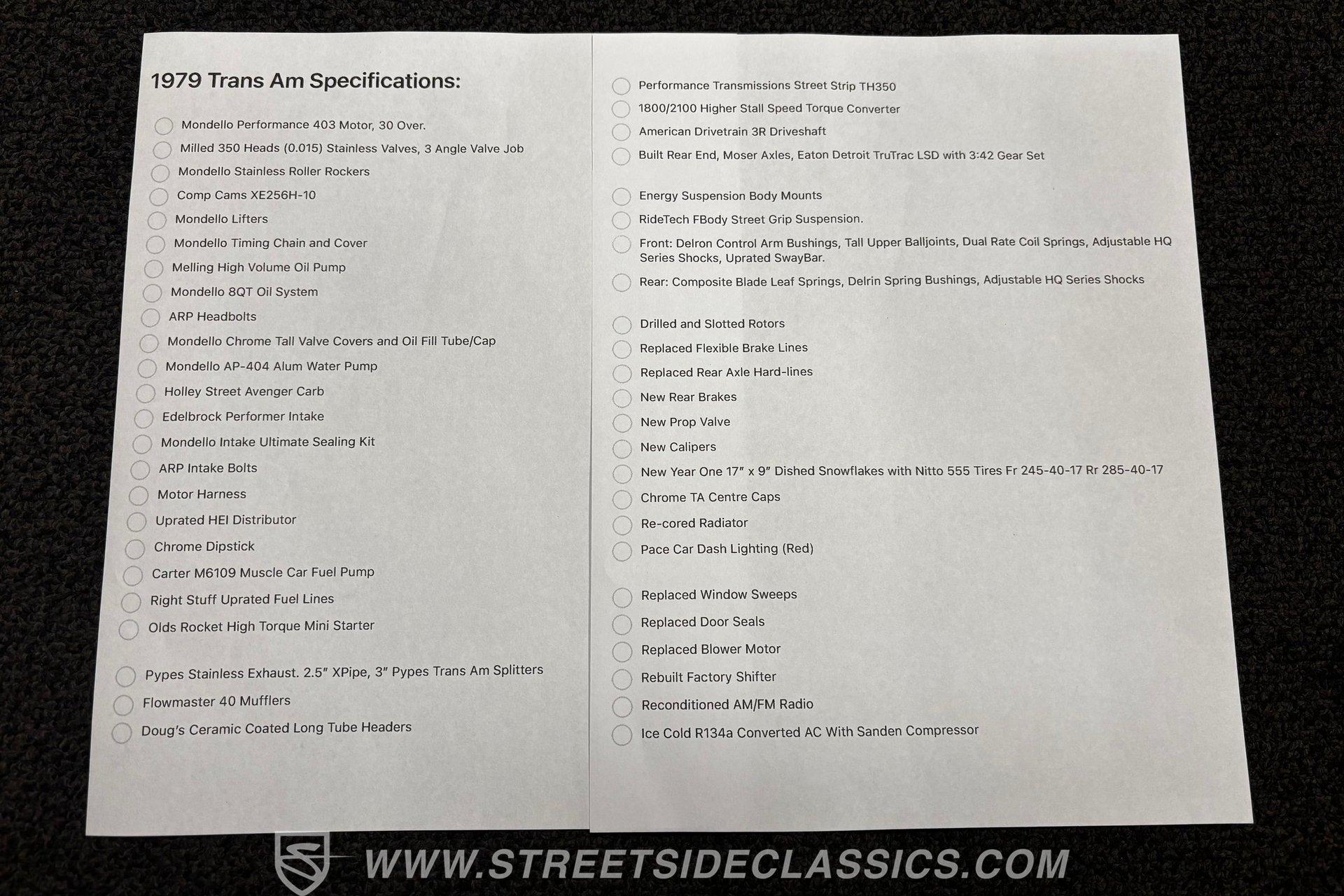 Ready to own a piece of muscle car history with modern performance and classic style? This 1979 Pontiac Firebird offers a thrilling driving experience, head-turning looks, and a well-appointed interior that makes every journey memorable. Call, email, or come visit our showroom today!