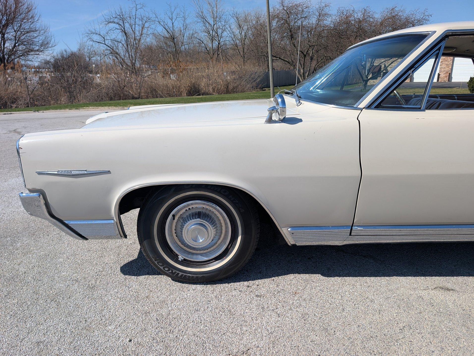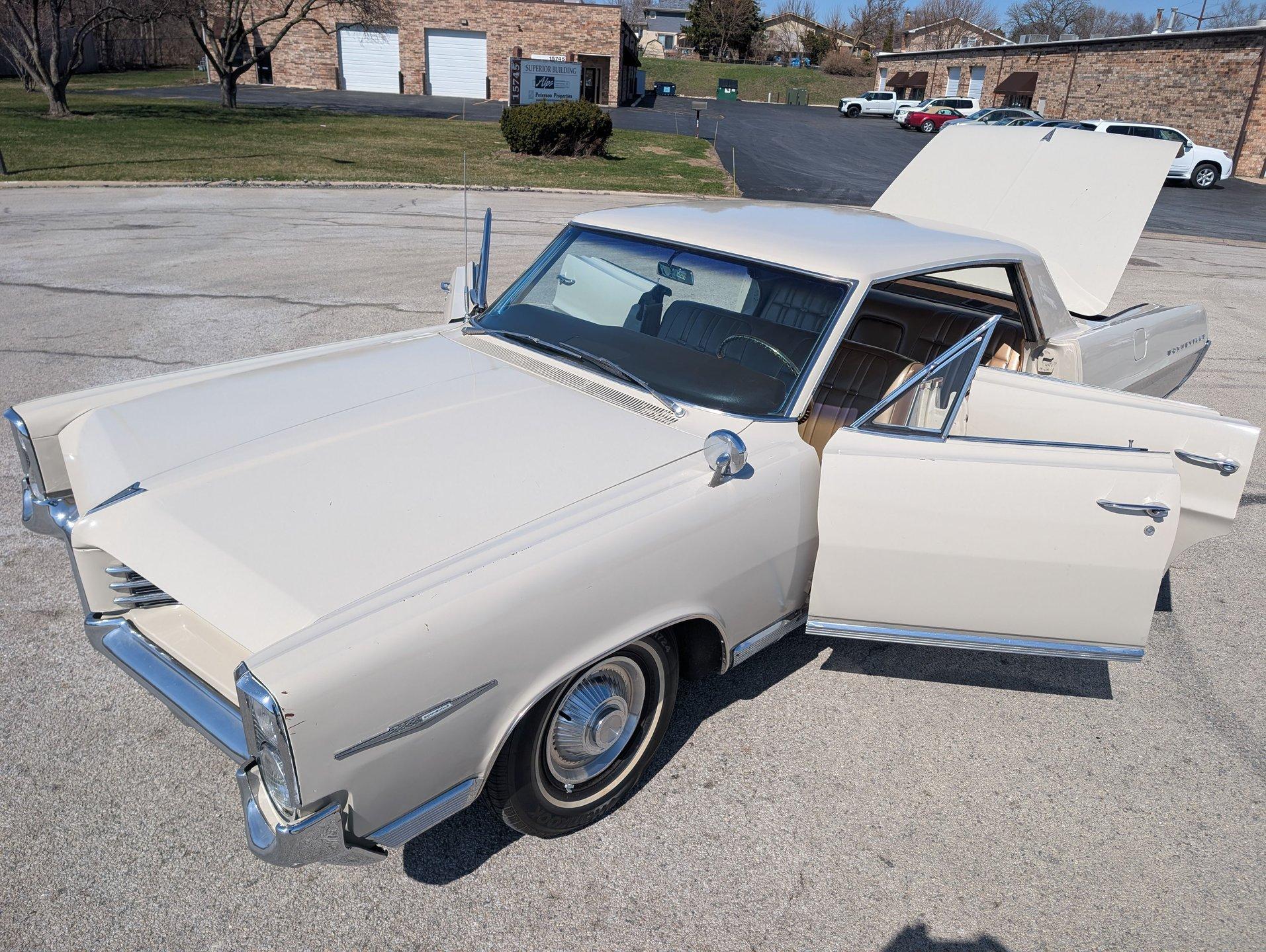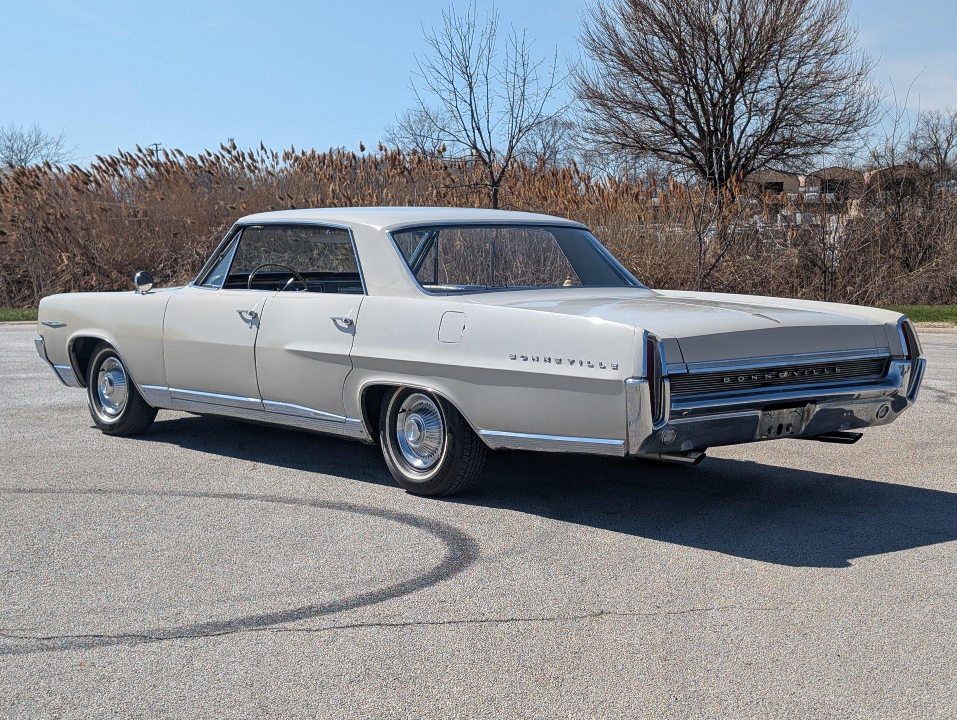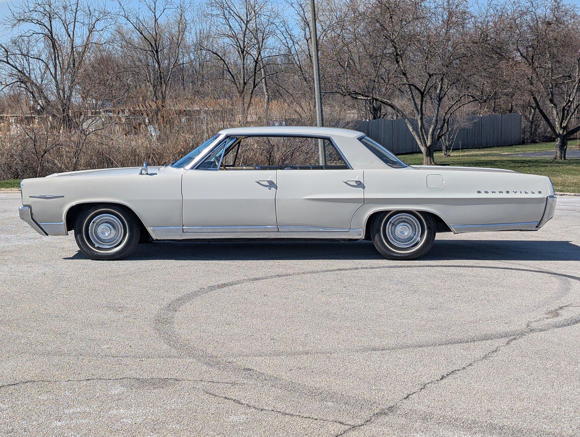 Survivor Classic Car Services Chicago is proud to present this family-oriented 1964 Pontiac Bonneville. This four door hardtop is powered by a 389 cubic inch V8 paired with a 4-speed automatic transmission. This no-post sedan gives sporty and luxury vibes, thanks to its pillarless design. However, having 4 doors makes it easy to bring the whole family along, or be the designated driver for the friend group!