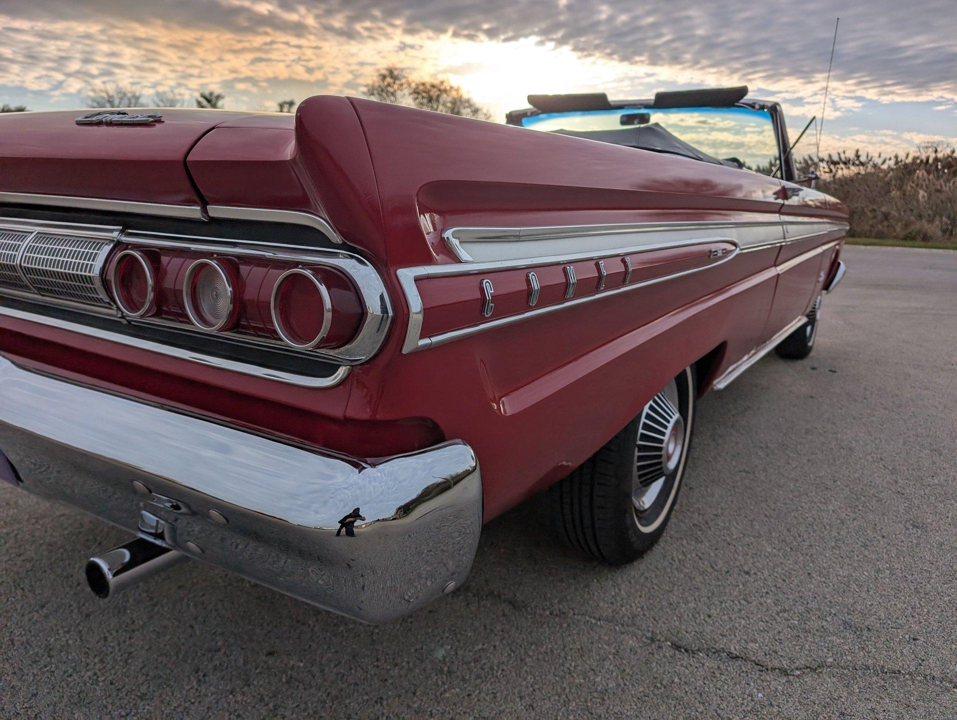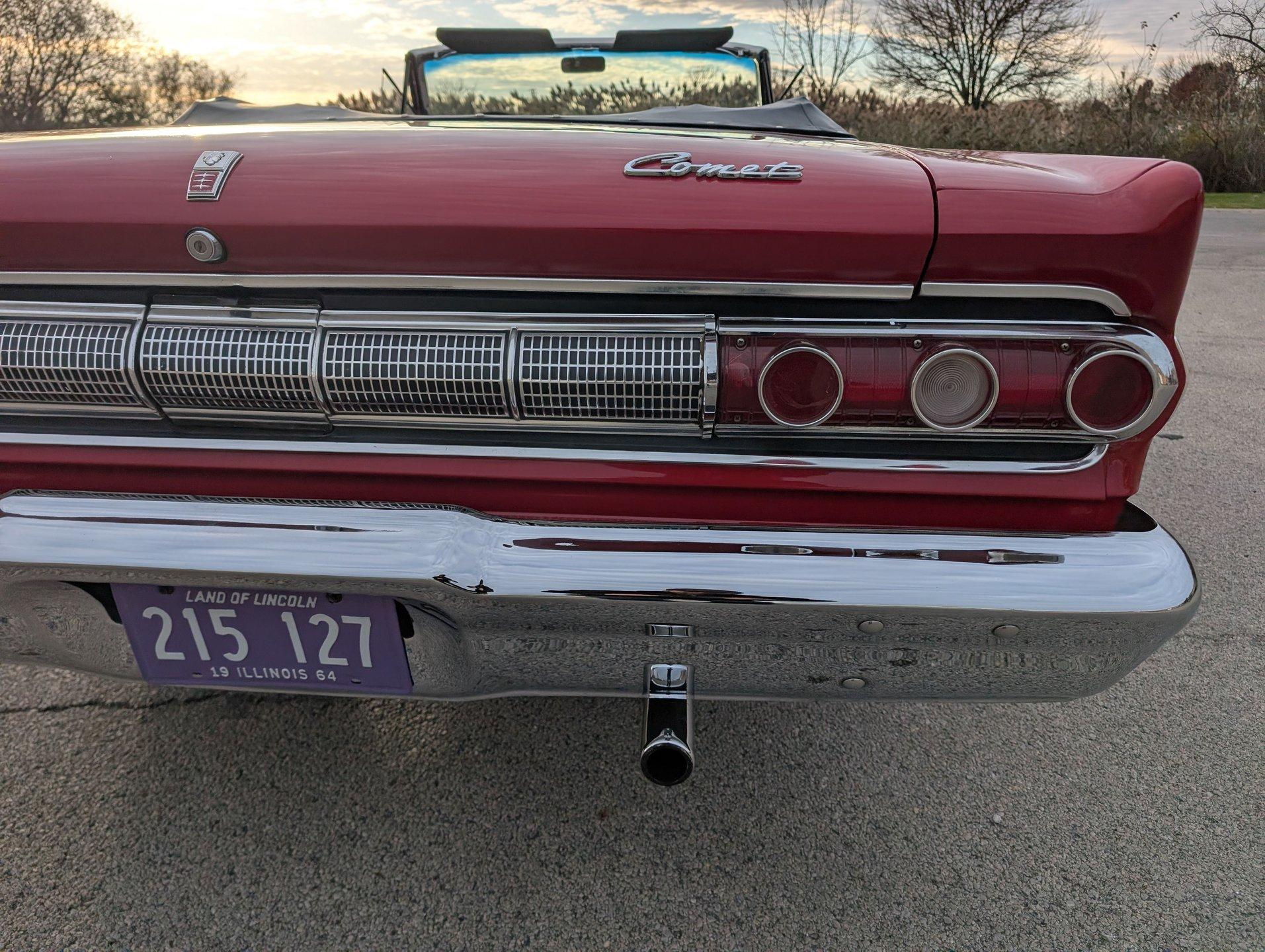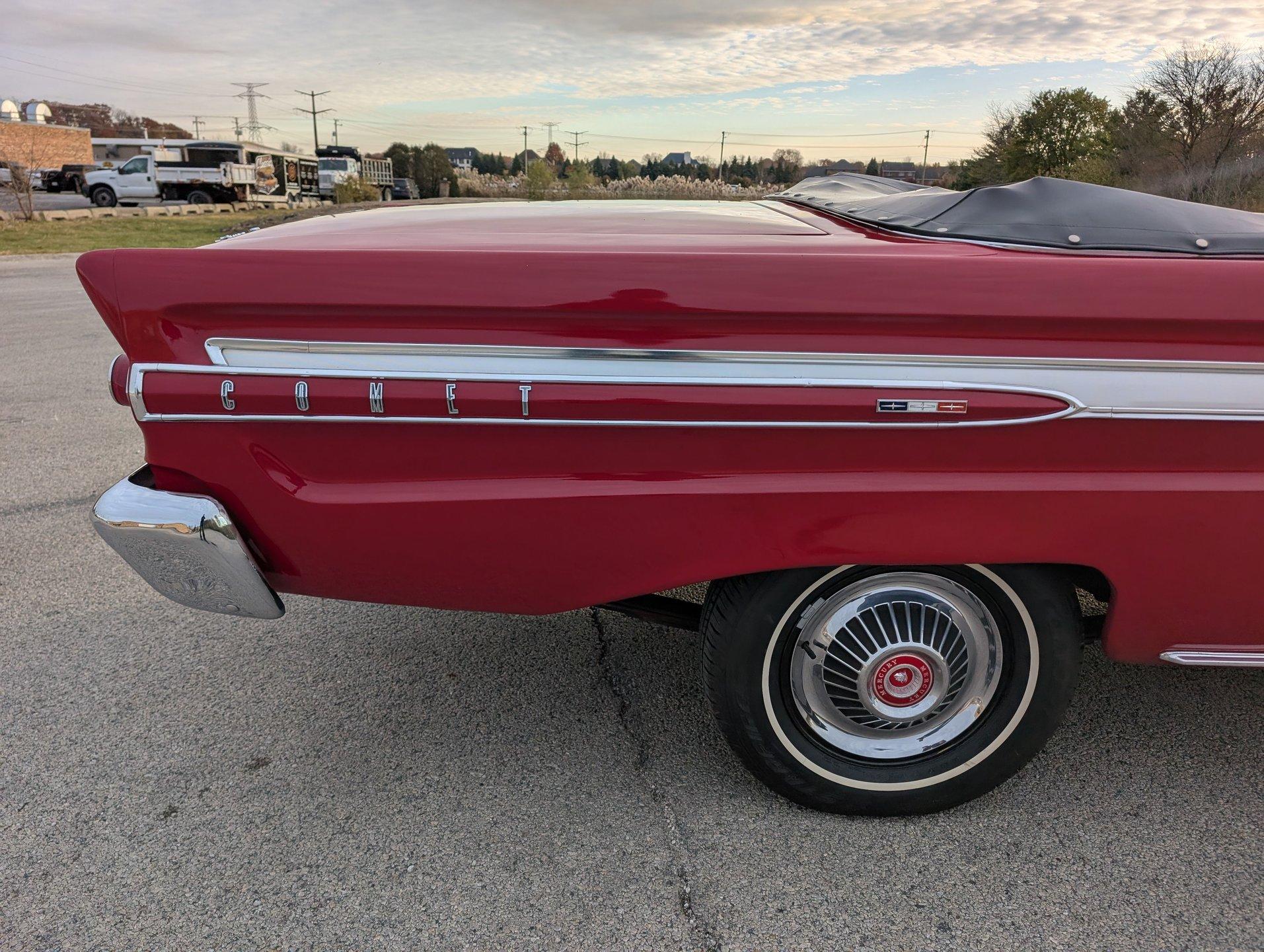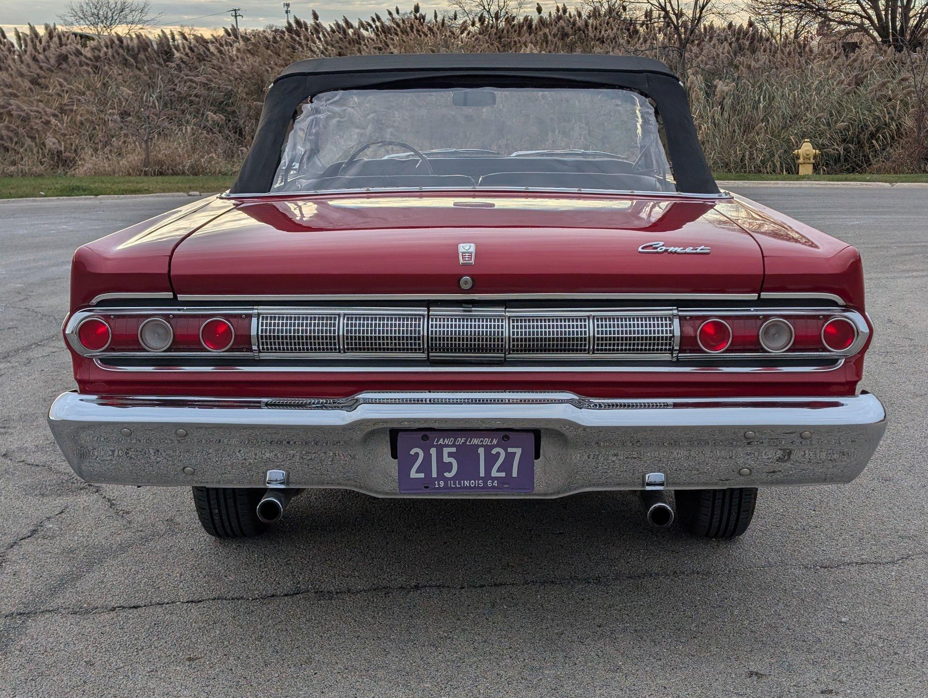 Survivor Classic Car Services Chicago is very proud to present this clean '64 Mercury Comet Caliente convertible! Under the hood sits a 260 cubic inch V8 partnered with a 3-speed automatic transmission. The bright red paint is laid down clean and even, and the convertible top looks brand new! Slide into the bench seat and feel the comfort of the new foam padding giving plenty of support! The door panels have been replaced with beautiful two-tone pieces in black and red that really make the interior pop! Recent mechanical work included a new oil pan gasket and transmission pan gasket to eliminate leaks. The engine fires up easily and is ready for a long haul at a moments notice! A new windshield was fitted to make sure that the view ahead is always crystal clear!
