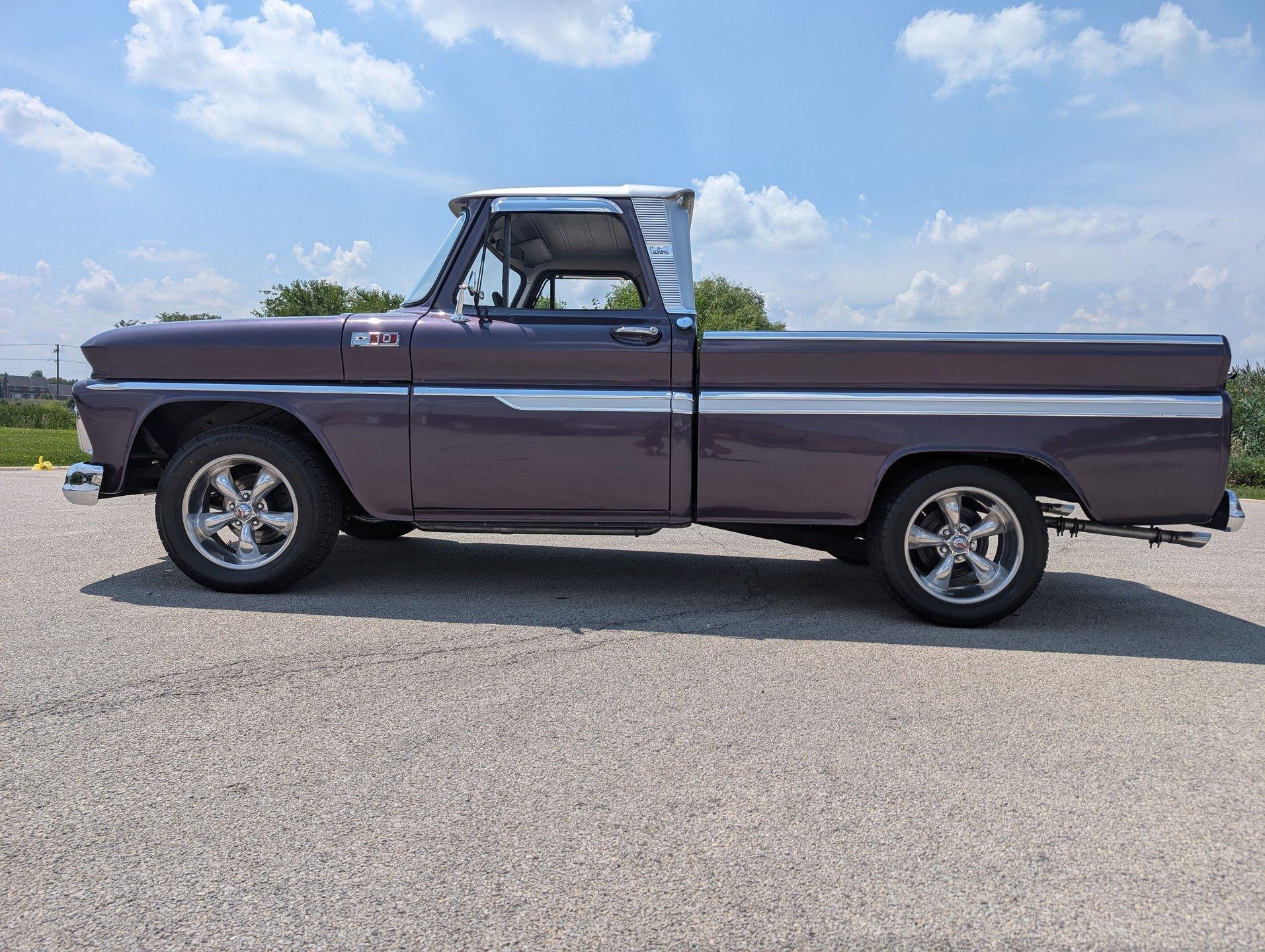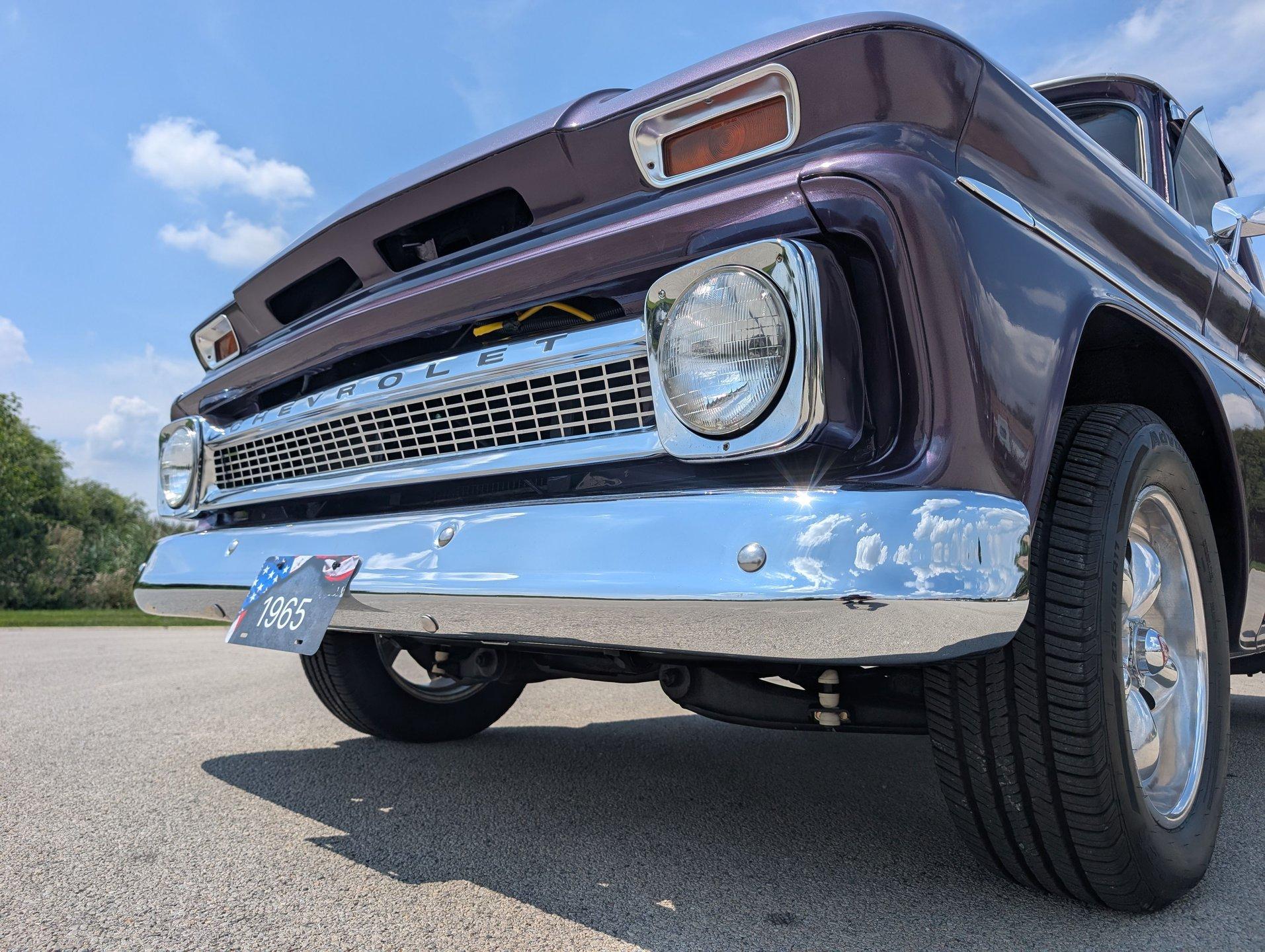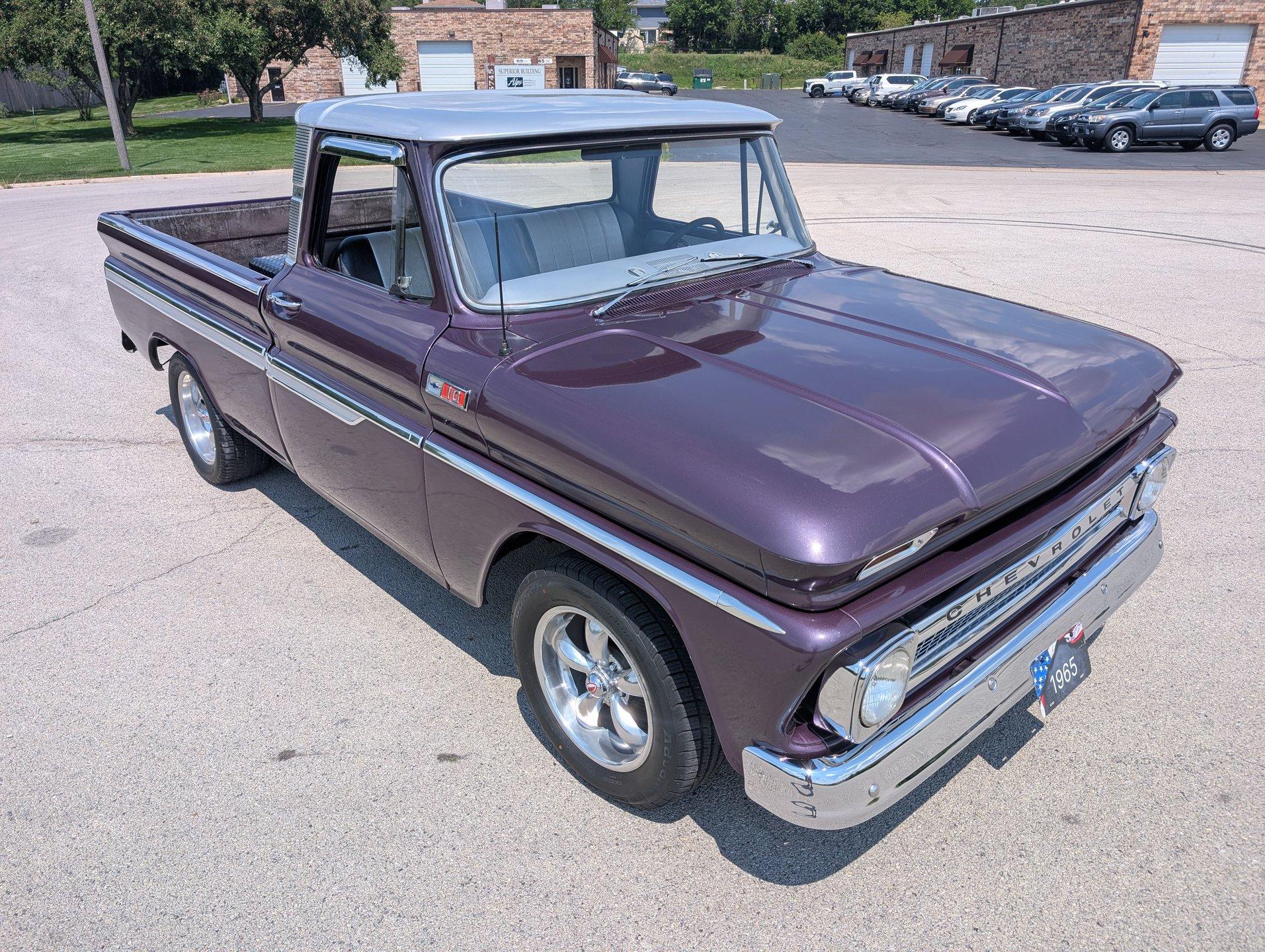Survivor Classic Car Services Chicago is very proud to present this beautiful 1965 Chevrolet C10. This C10 has been lightly resto-modded, but kept true to its soul. Under the hood is a torquey 350 cubic inch V8 paired with a 3-speed automatic transmission. The Truck has recently had a lot of maintenance, including having the 12-bolt rear axle stripped and refinished, new brakes on all four corners (disc in front and drum in rear) a new power booster and master cylinder, a new gas tank, fuel lines, and in-line fuel filter, a heavier-duty sway bar in front, and new shocks on all four corners. This C10 has been gone through front to back and provides a very enjoyable classic car owning experience, without needing to sacrifice reliability.