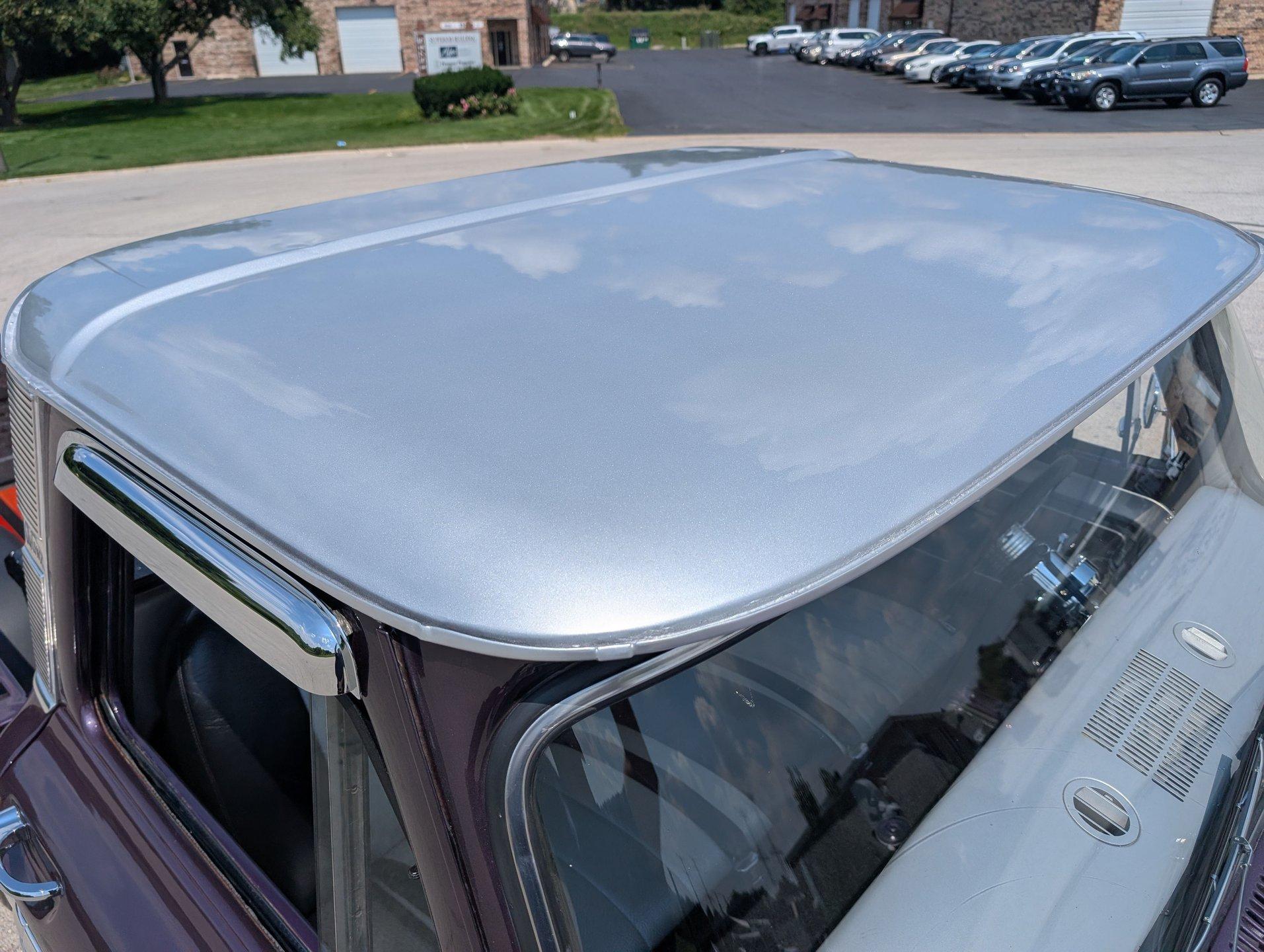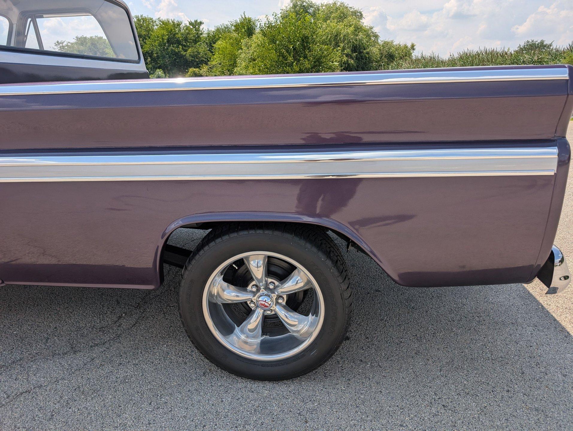 The Purple Mist paint pops in the sun, and the chrome shines just as bright! A simple turn of the key with a few squirts of fuel from the 4-bbl carb get this cast-iron powerplant turning with ease. The underside is just as clean as the top, and the throaty rumble of this truck is pure bliss! Slide onto the bench seat, drop the column shifter in ''D'' and tame the open road!