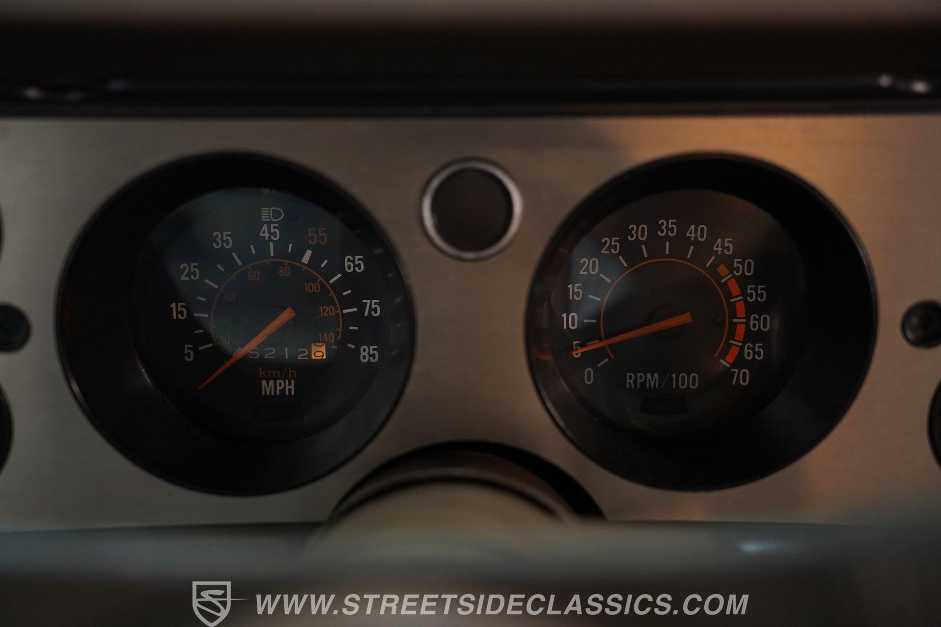 Step inside and feel the authenticity of the all-original camel vinyl seats, wrapped in a cabin that balances comfort and classic charm. Power windows glide smoothly at your fingertips, while the tilt steering wheel allows you to dial in your perfect driving position. The console shifter adds a tactile connection to the 3-speed automatic TH350 transmission, making every drive an engaging experience drenched in vintage style.