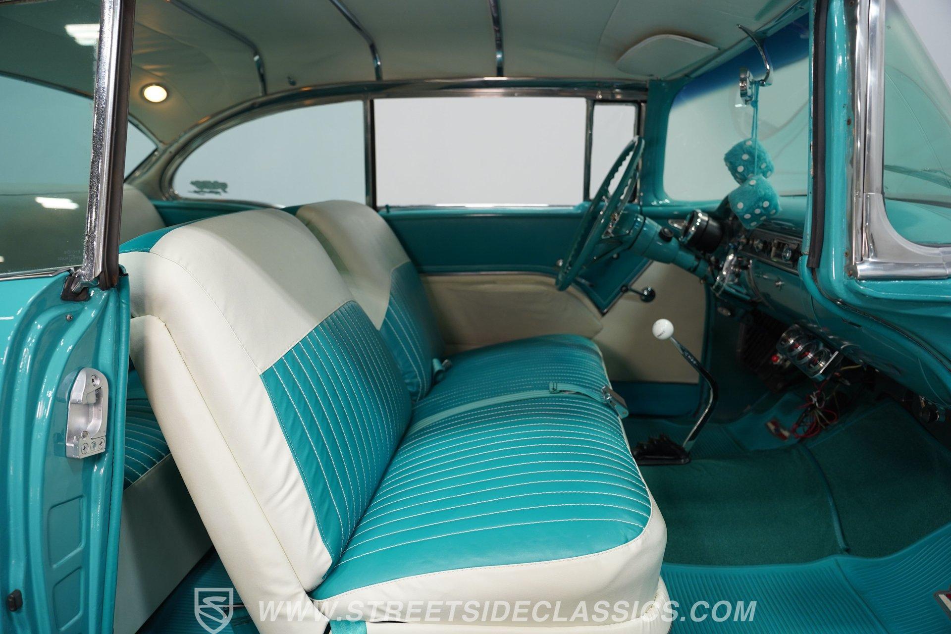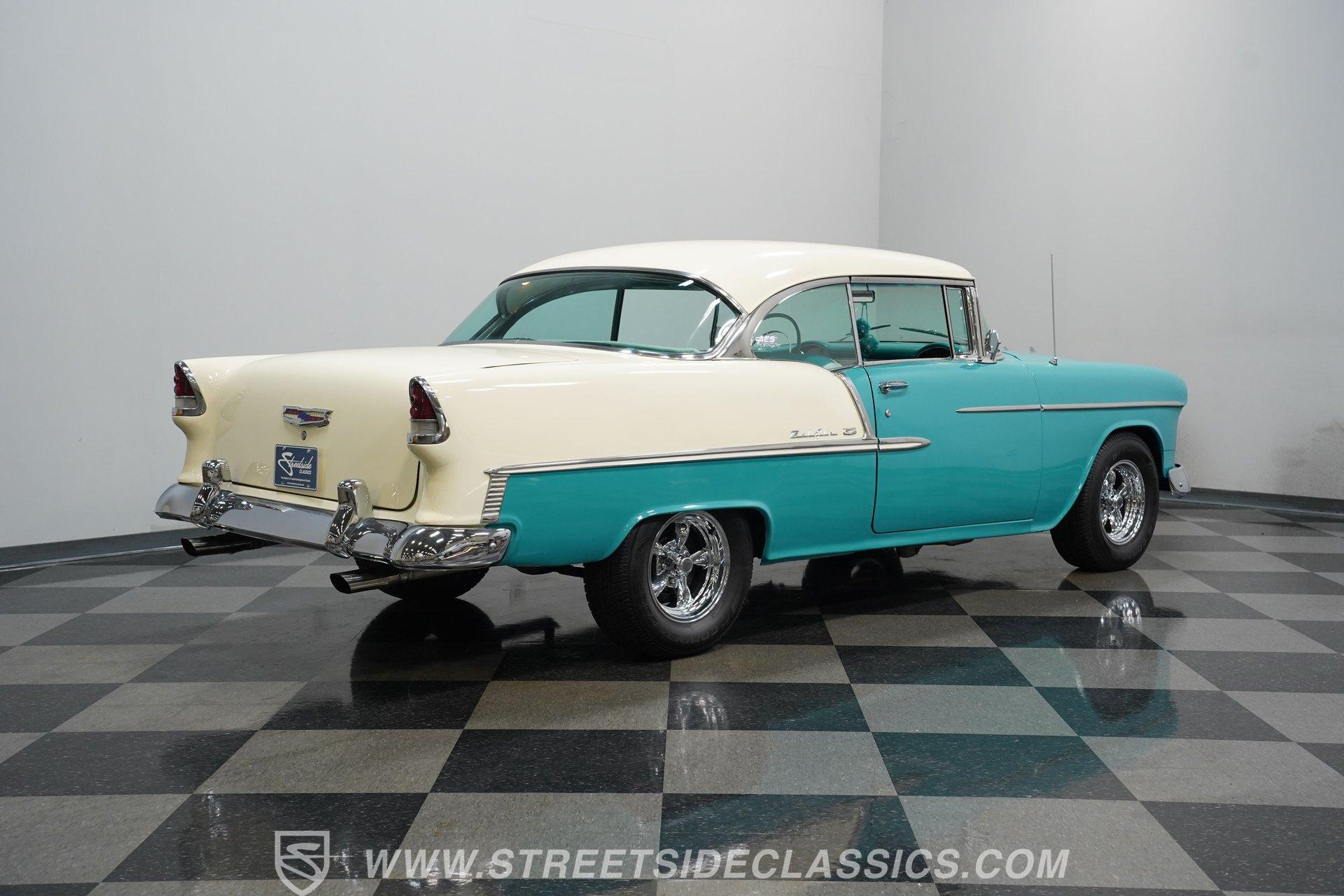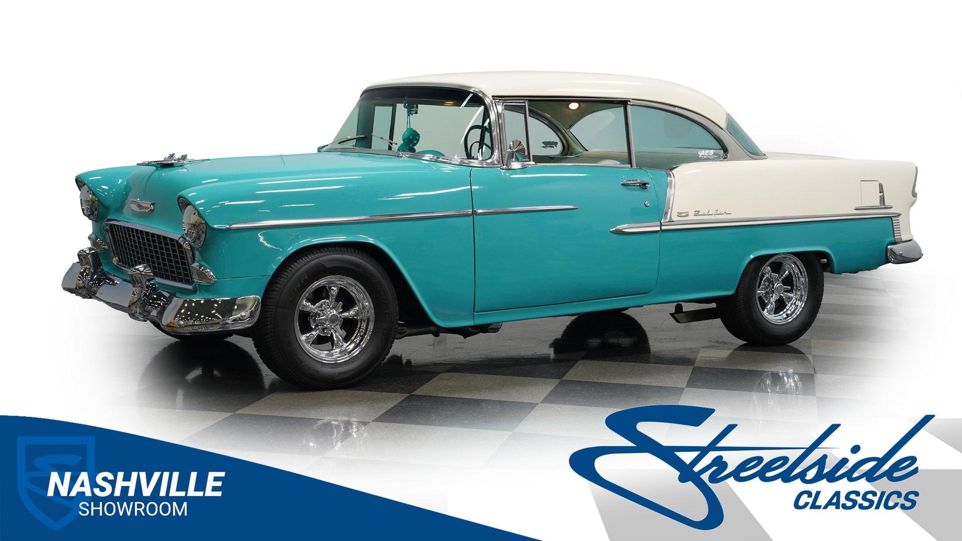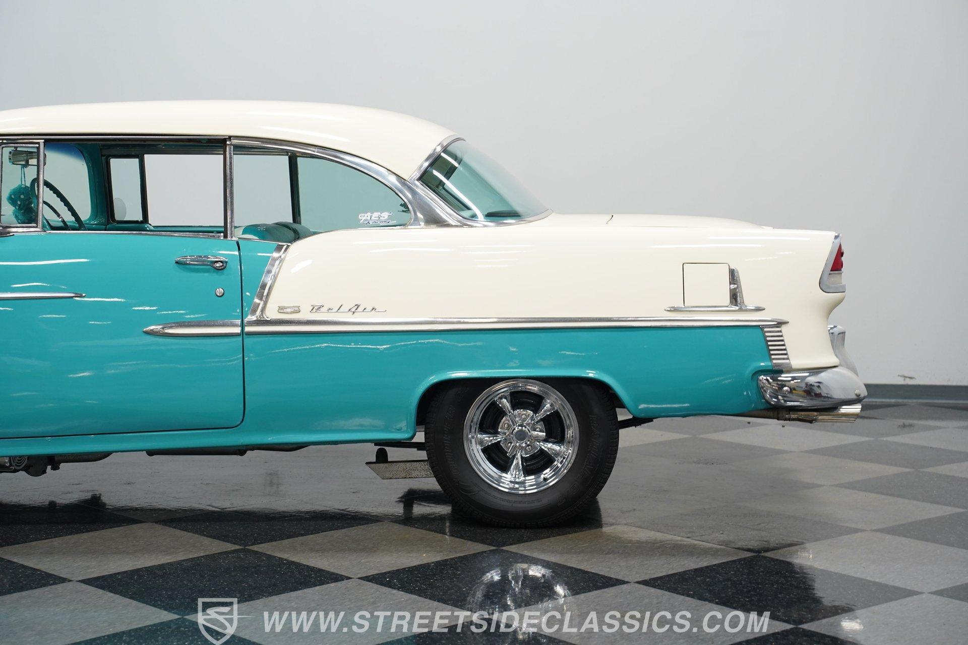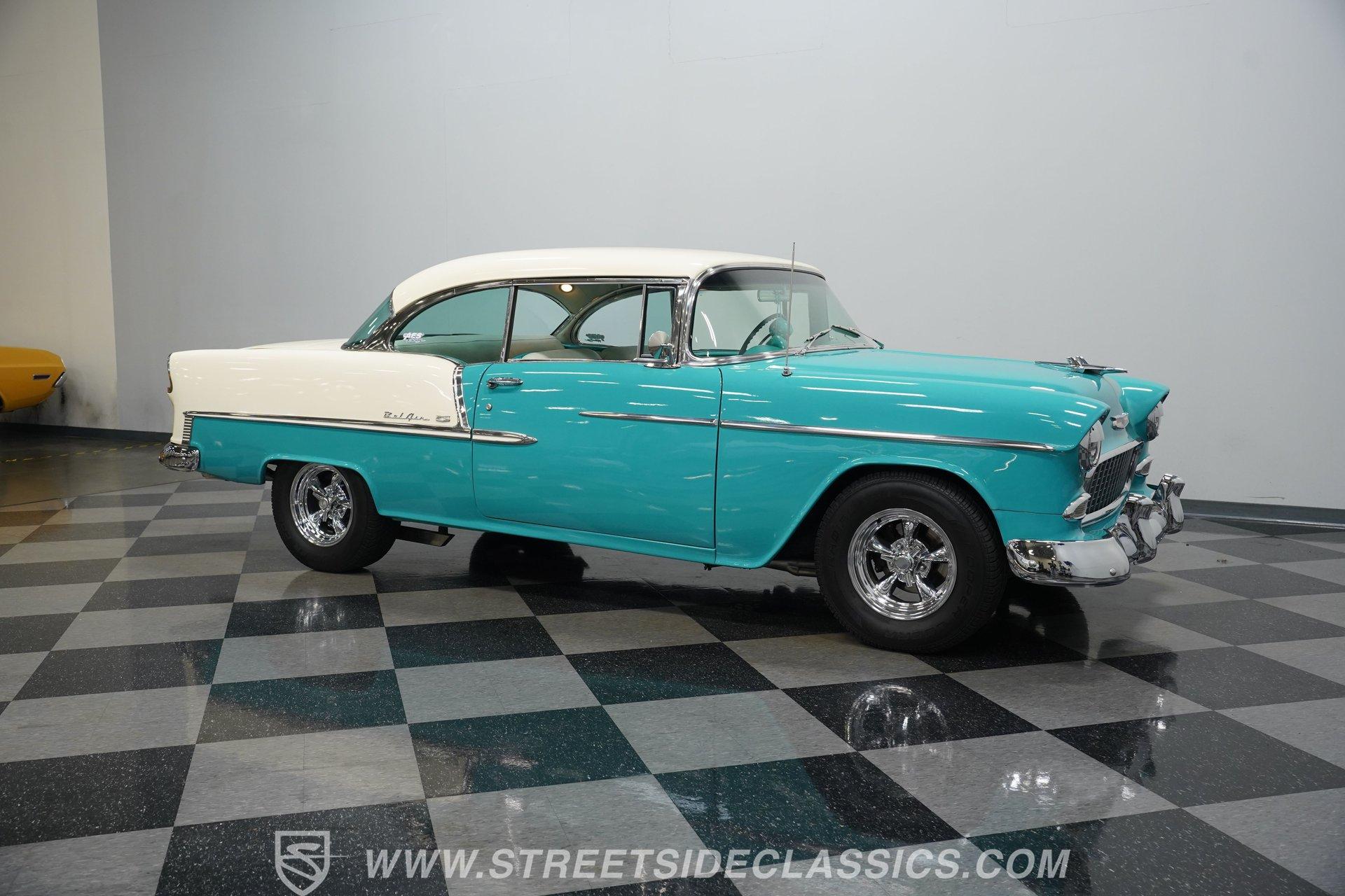 Step back into a golden era of automotive passion with this stunning 1955 Chevrolet Bel Air, a timeless icon that commands attention wherever it roams. Its two-tone Regal Turquoise and India Ivory paint gleams like a jewel, capturing the spirit of 1950s Americana. This car is more than just a showpiece; it's a rolling statement of style, power, and nostalgia that evokes memories of cruising endless highways under the sun. With a robust 400 V8 engine and a spirited four-speed manual transmission, this Bel Air invites you to experience the pure thrill of classic muscle car driving.