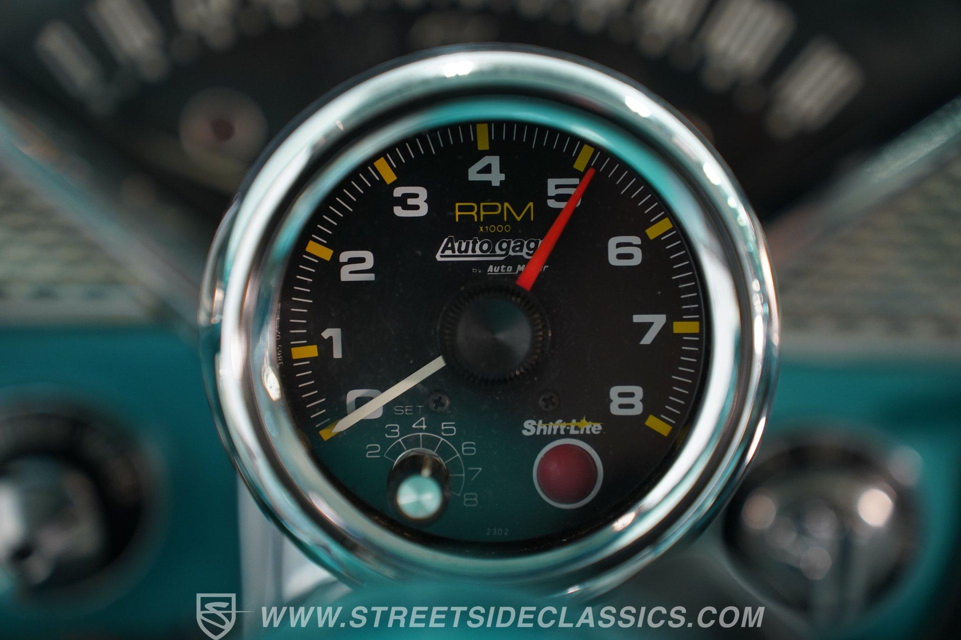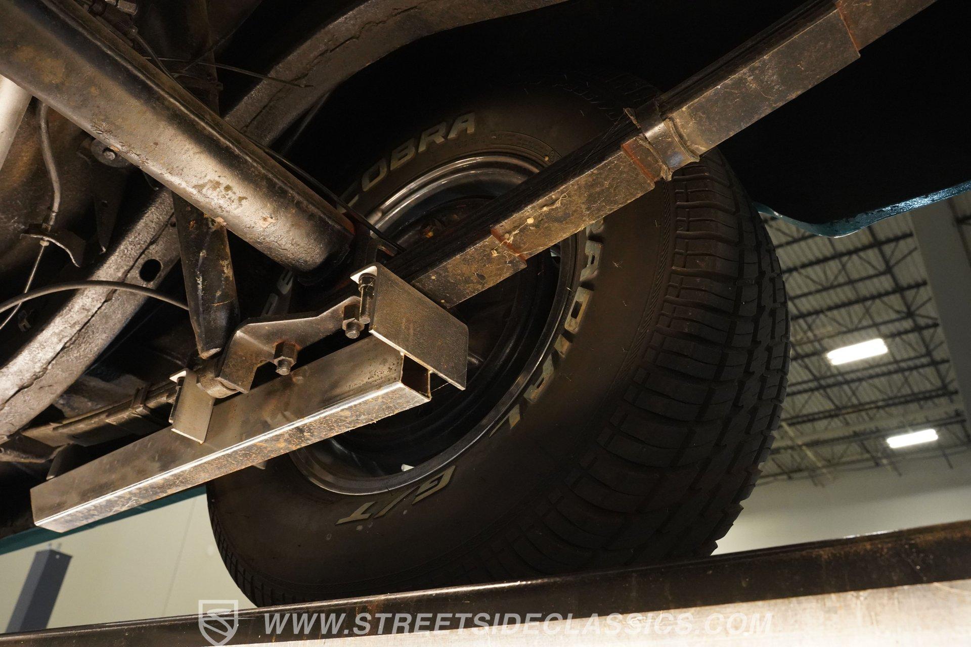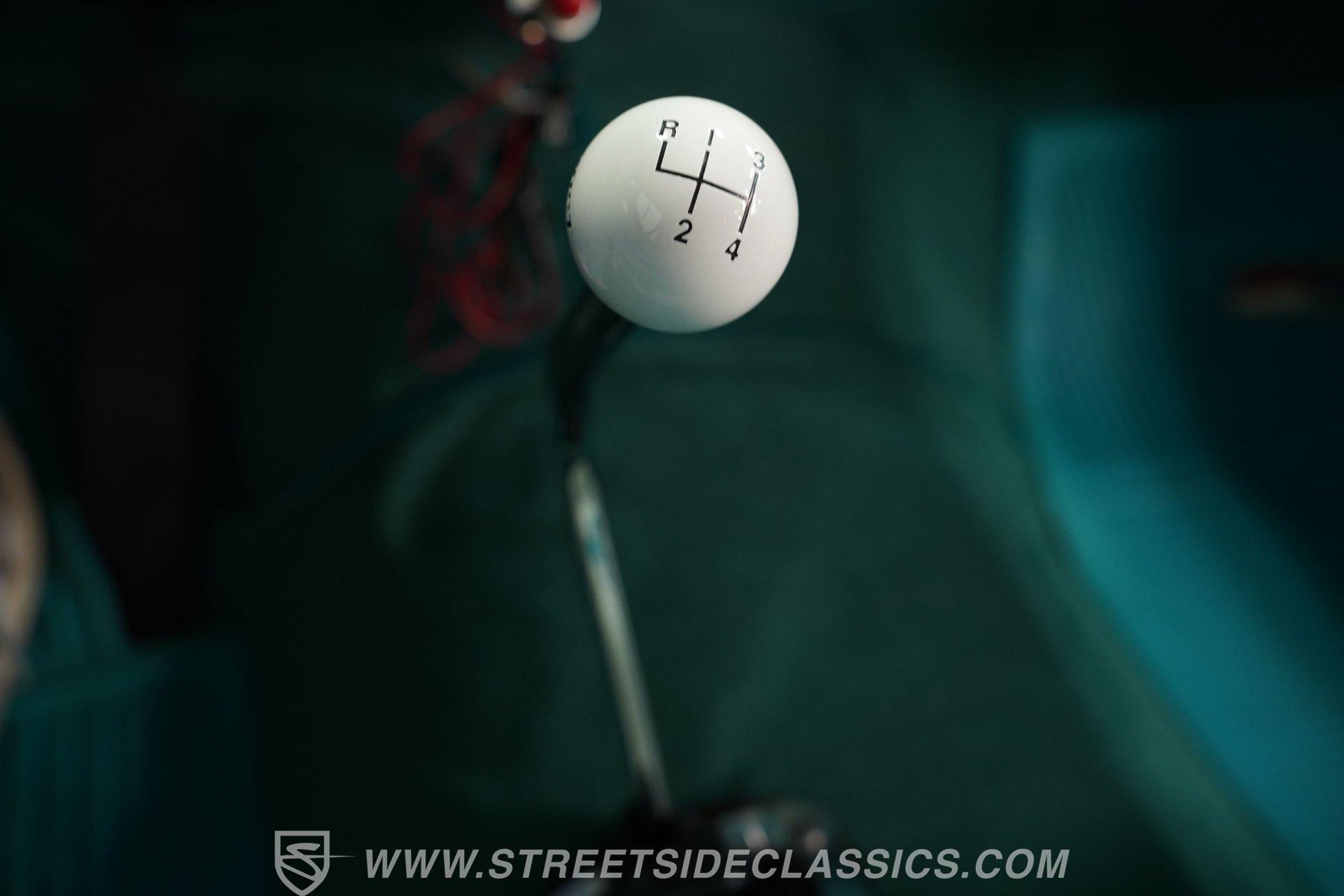 Slide inside to a cabin drenched in classic charm, where turquoise vinyl seats with white stitching perfectly complement the exterior's palette. The bench seating offers a spacious, comfortable ride, while the AM/FM cassette radio and aftermarket gauges keep you connected and informed. The tactile feel of the vinyl upholstery and the sturdy floor shifter add to the authentic driving experience, making every journey as enjoyable as the destination.