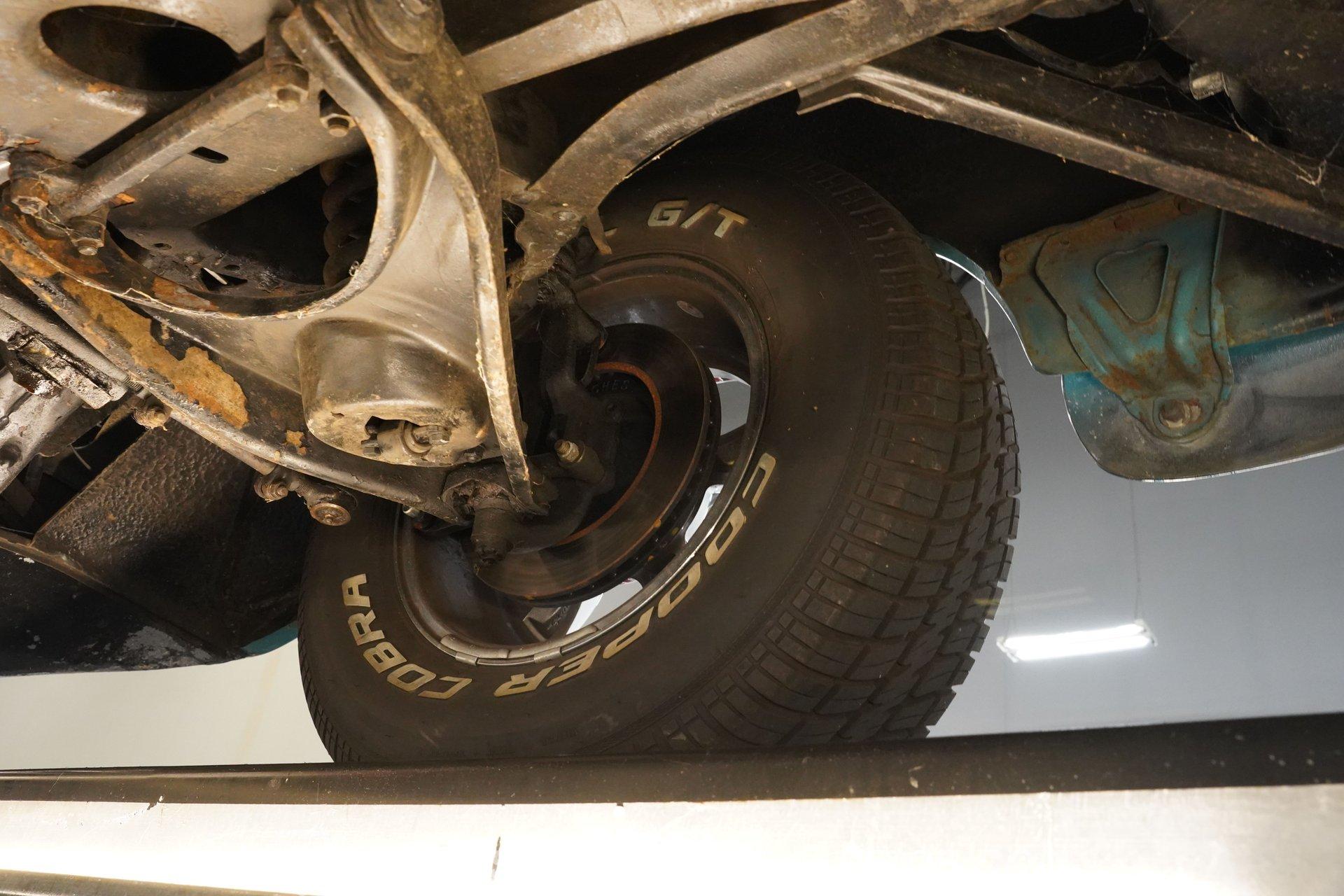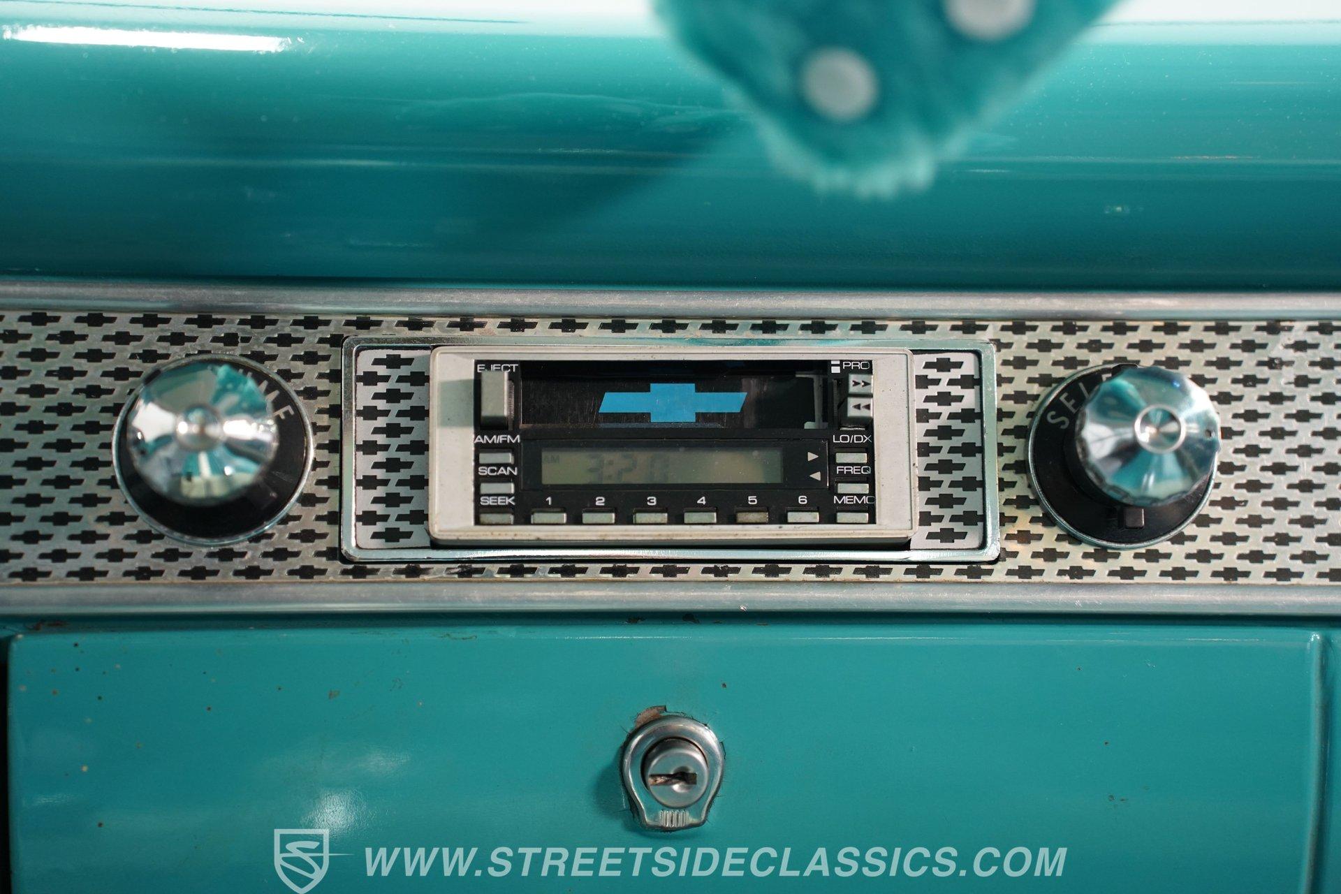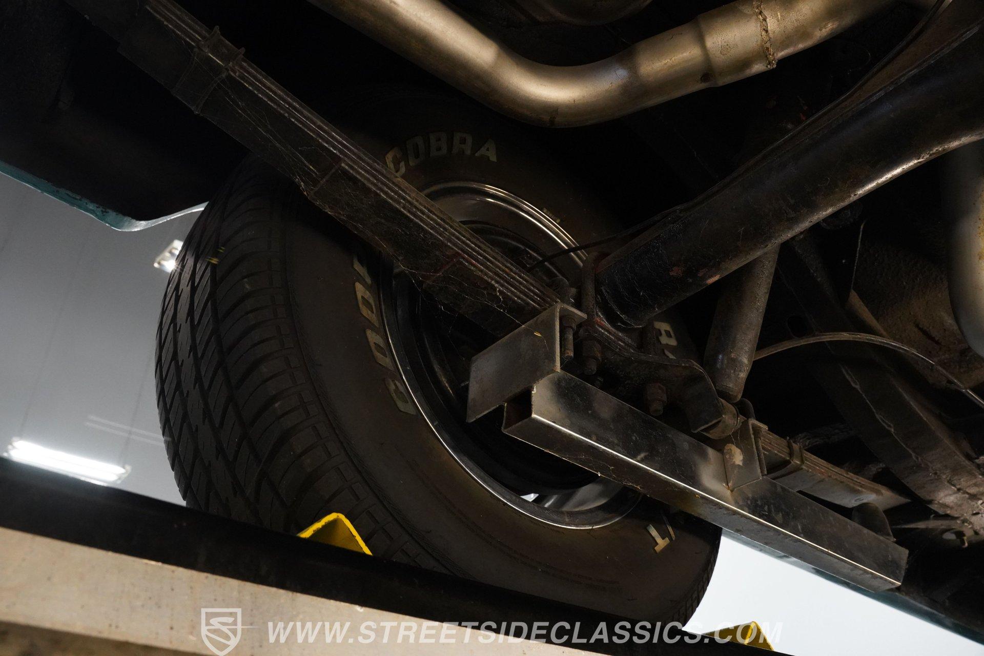Slide inside to a cabin drenched in classic charm, where turquoise vinyl seats with white stitching perfectly complement the exterior's palette. The bench seating offers a spacious, comfortable ride, while the AM/FM cassette radio and aftermarket gauges keep you connected and informed. The tactile feel of the vinyl upholstery and the sturdy floor shifter add to the authentic driving experience, making every journey as enjoyable as the destination.