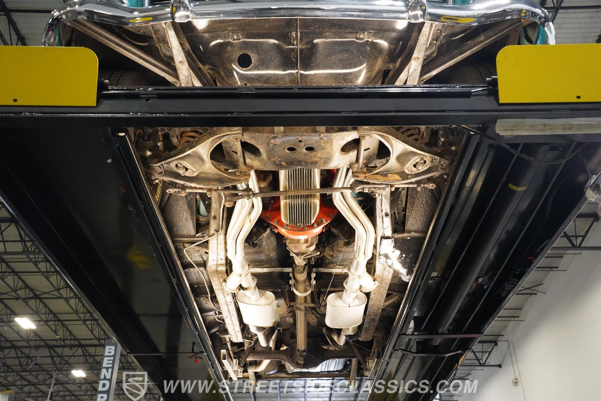 Beneath the hood lies a built 400 V8 that thumps with authority, delivering a deep, satisfying rumble that turns heads and stirs the soul. Paired with a four-speed manual Borg Warner transmission, every shift connects you intimately with the road. Power front disc brakes offer confident stopping power, while the dual exhaust system sings a throaty tune on every acceleration. This Bel Air blends raw muscle with precise engineering, promising a driving experience that's both thrilling and engaging.