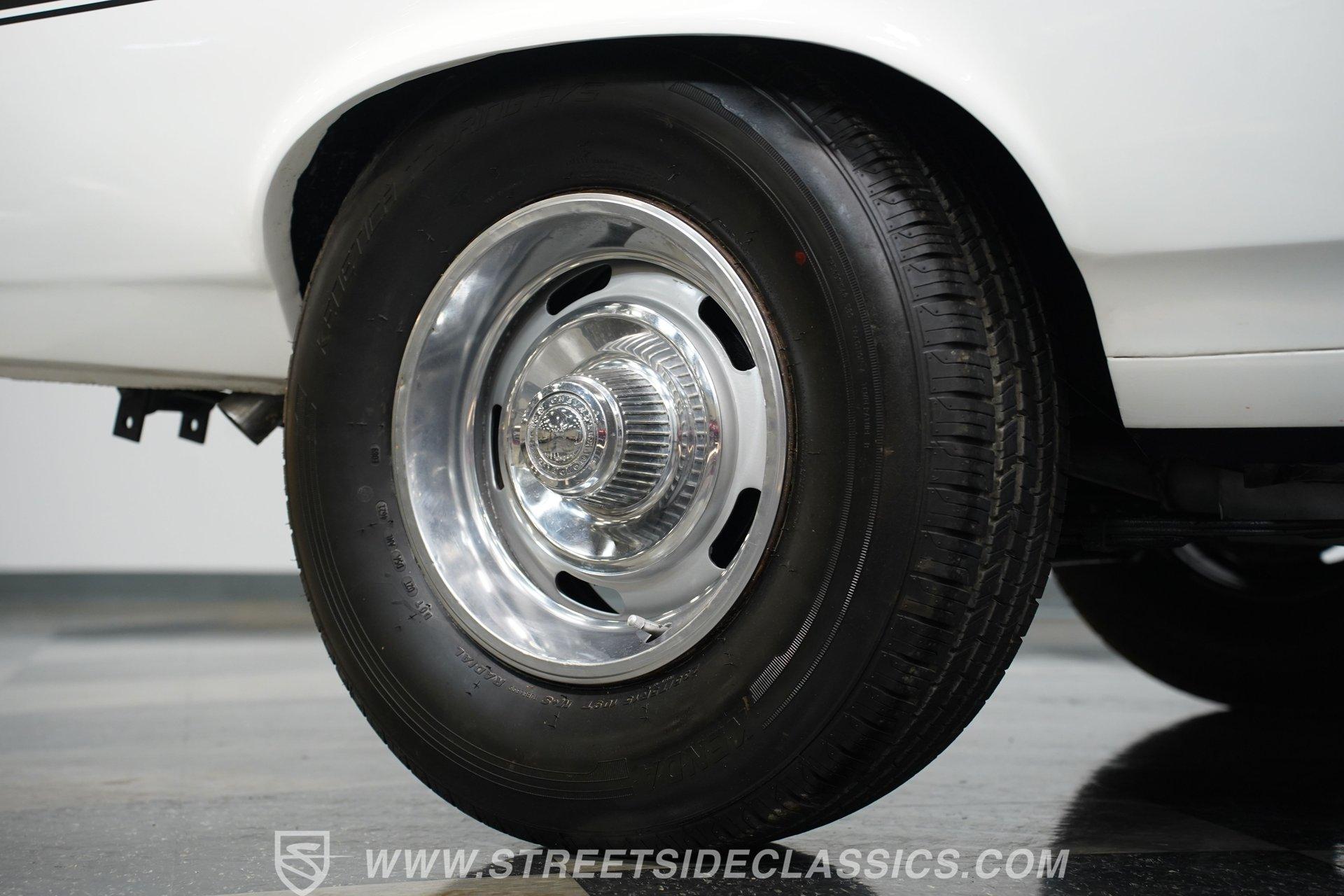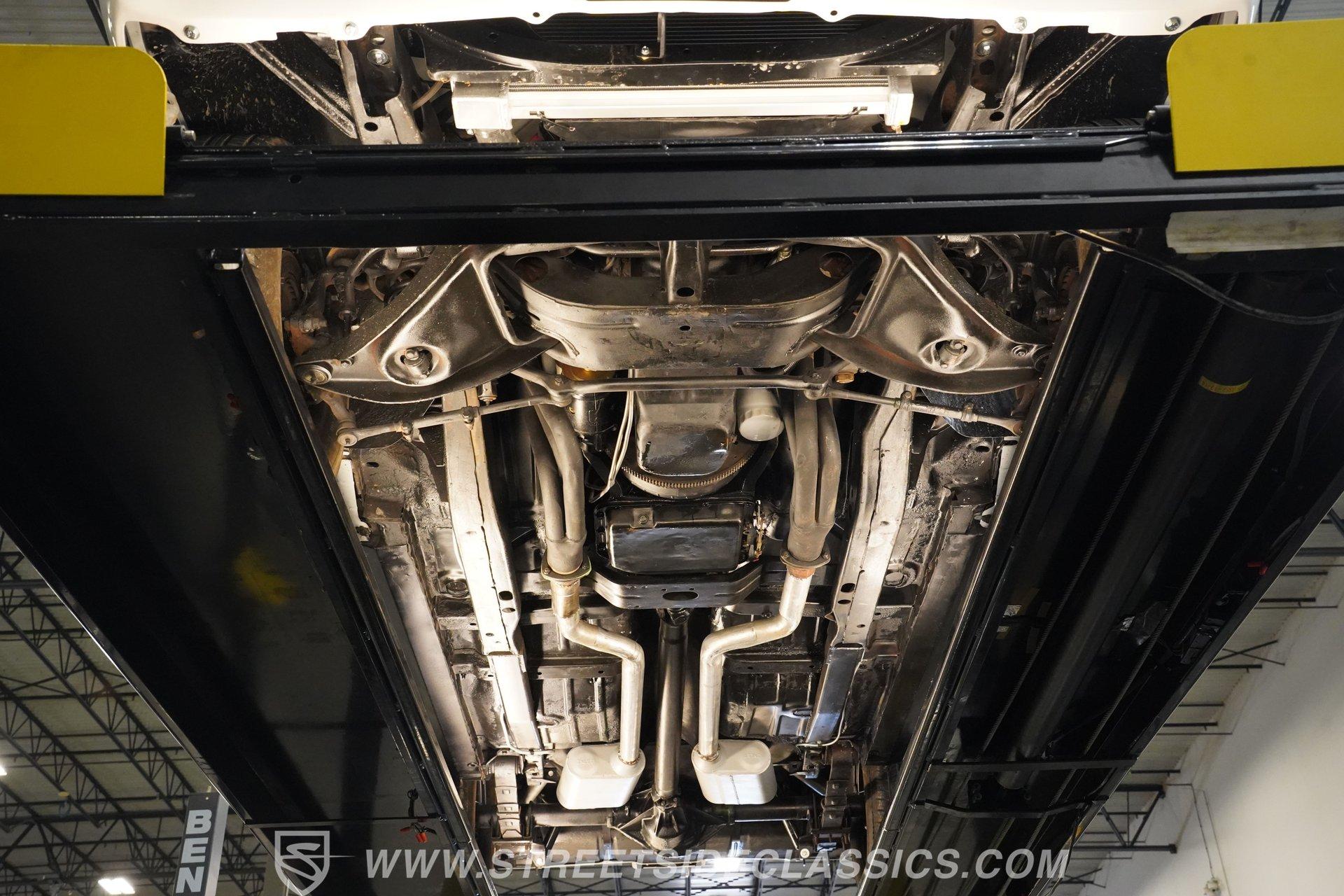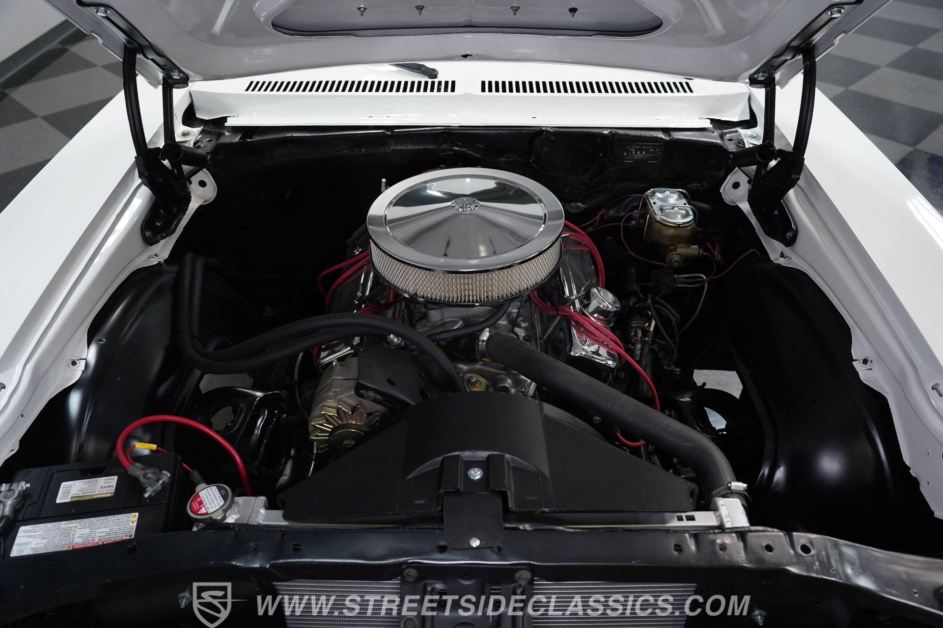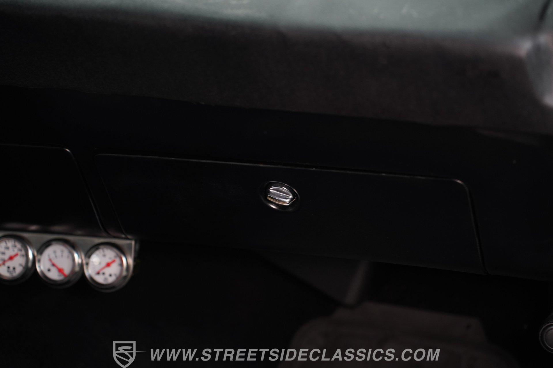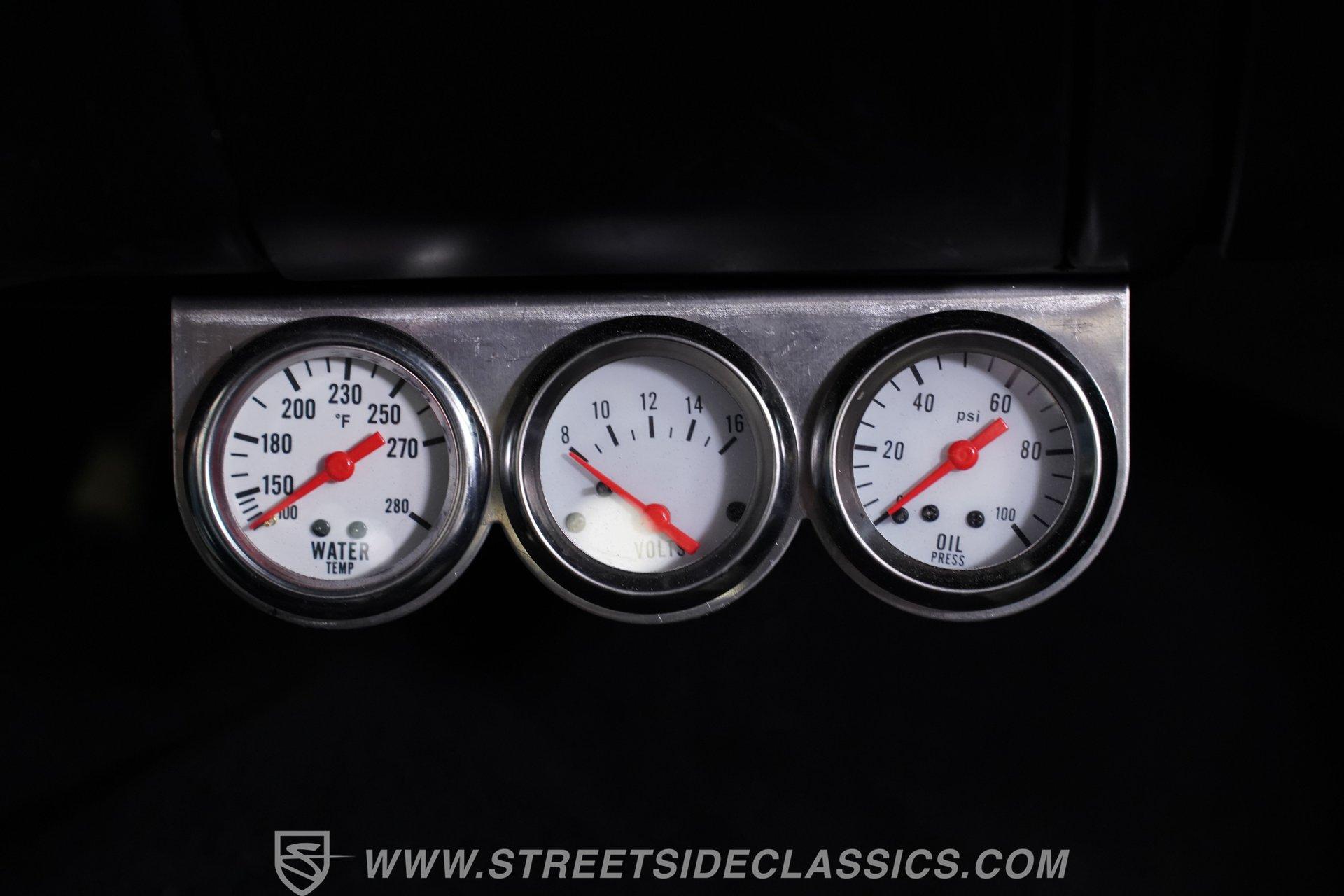 Slide into the black vinyl bucket seats, where vintage charm meets straightforward functionality. The cabin is a driver-focused environment with aftermarket gauges keeping you informed and a B&M ratchet shifter that feels solid and responsive in your hands. While the interior carries a classic vibe, it invites you to personalize and make this muscle car truly your own.