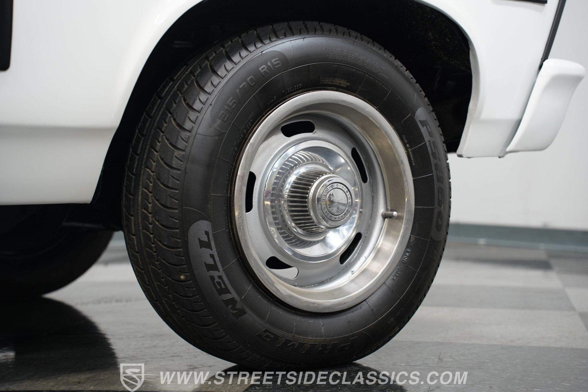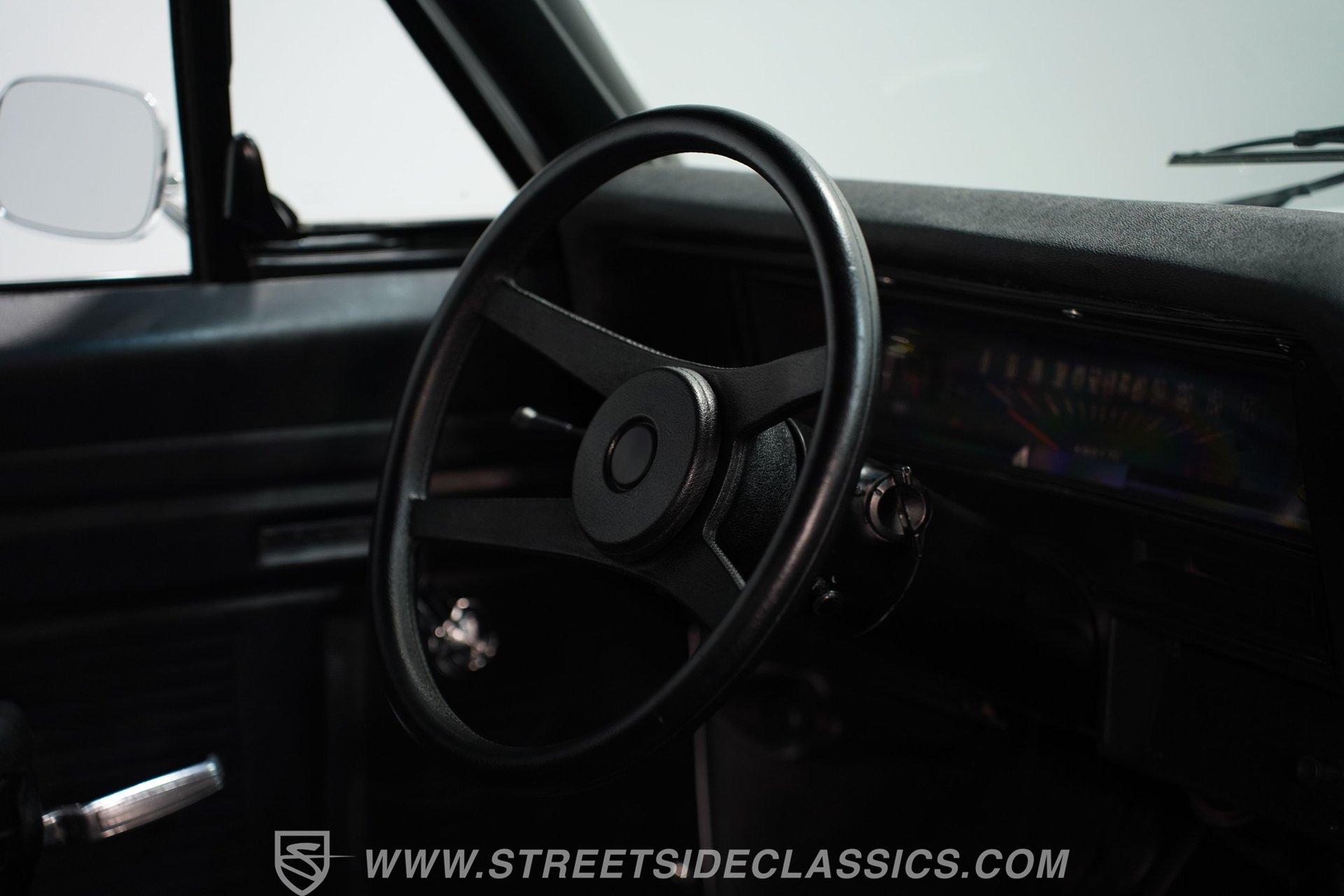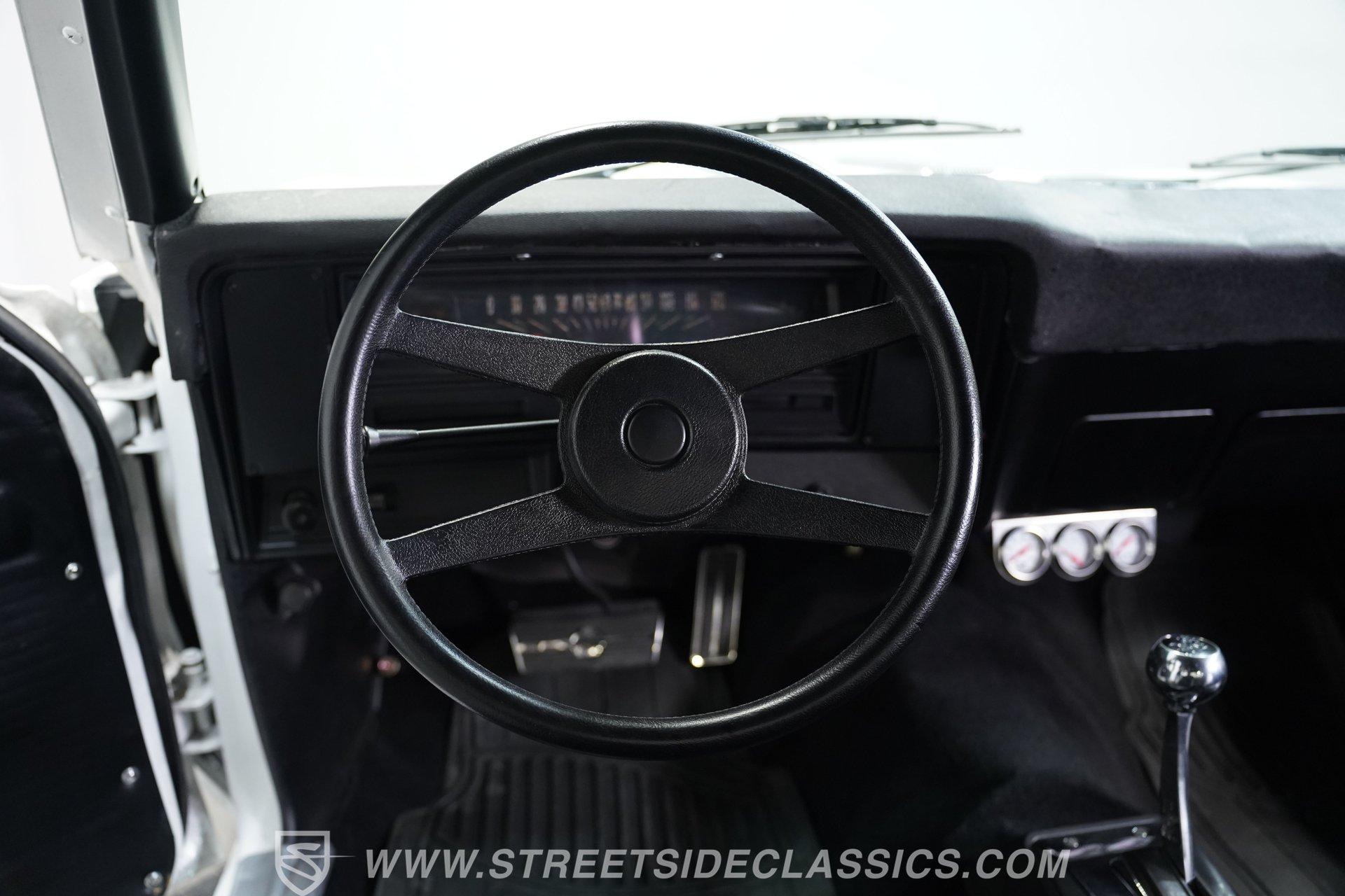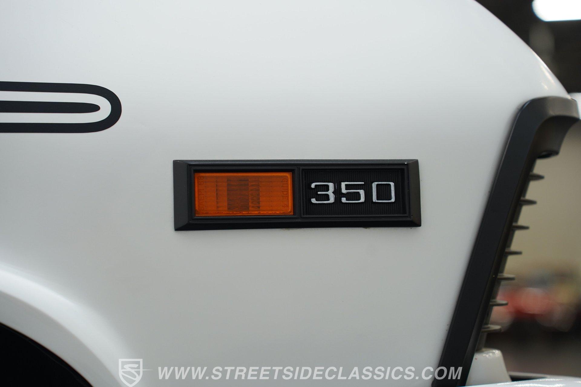 Under the hood, a GM Goodwrench 350 crate engine roars to life with a Brawler carburetor feeding fuel through long tube headers, producing a deep, aggressive rumble that commands attention. The power flows through a smooth-shifting TH350 automatic transmission to a 10-bolt rear end equipped with a 3.73 Posi differential, delivering confident traction and exhilarating acceleration. The dual exhaust system amplifies the soundtrack, making every drive a pulse-pounding experience.