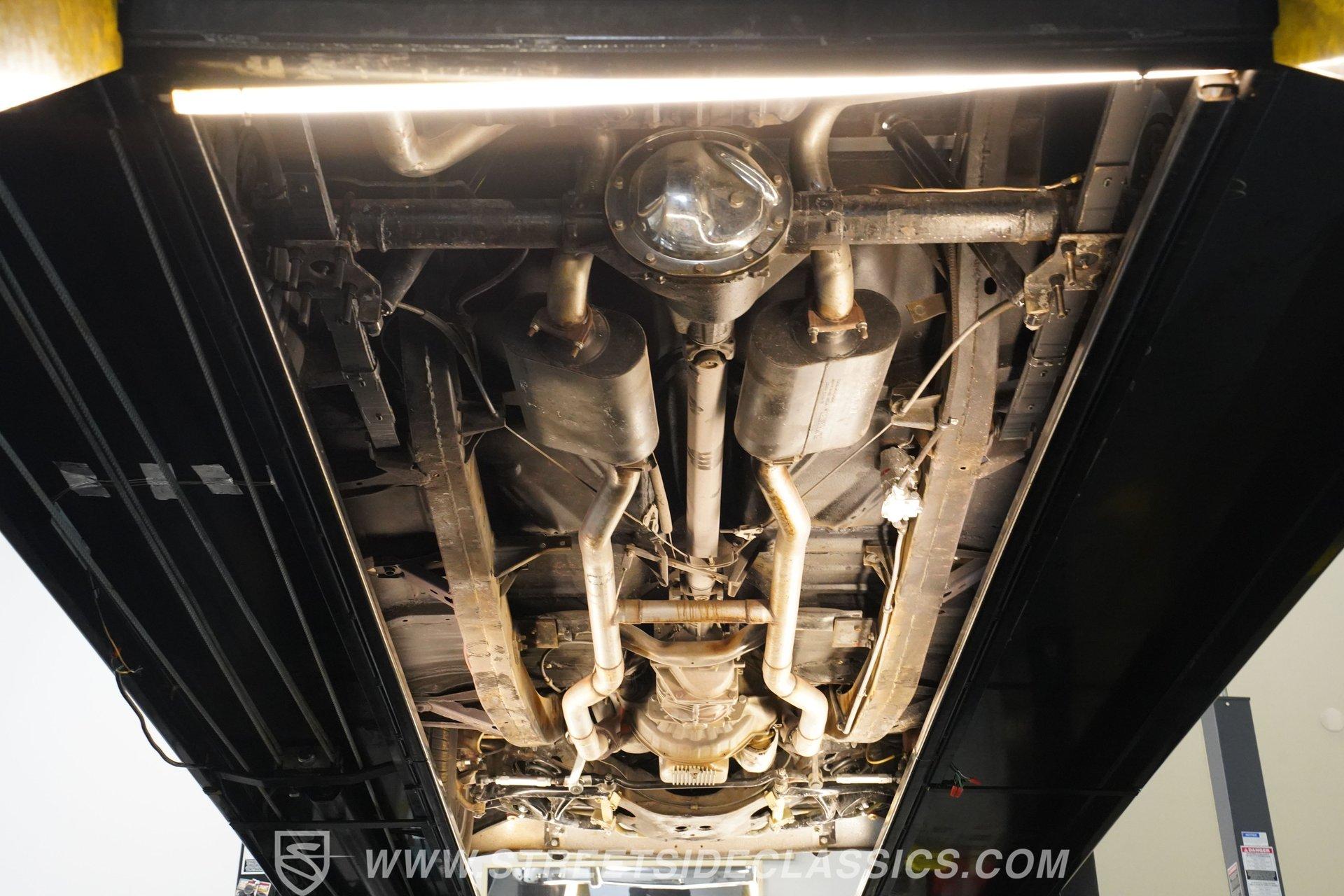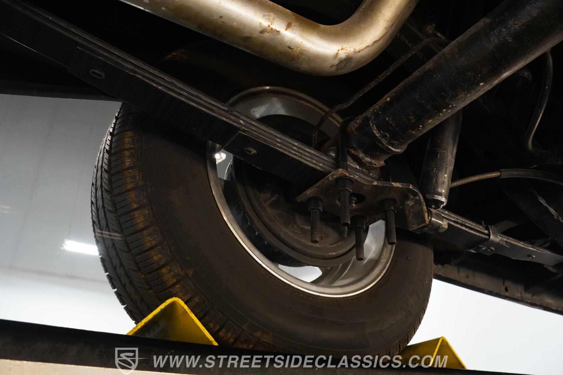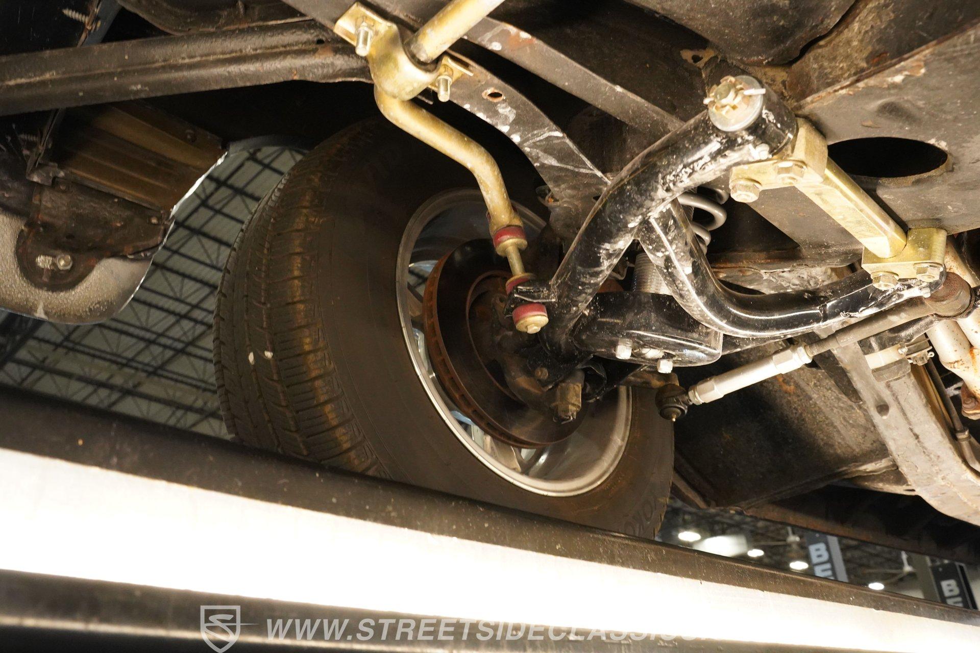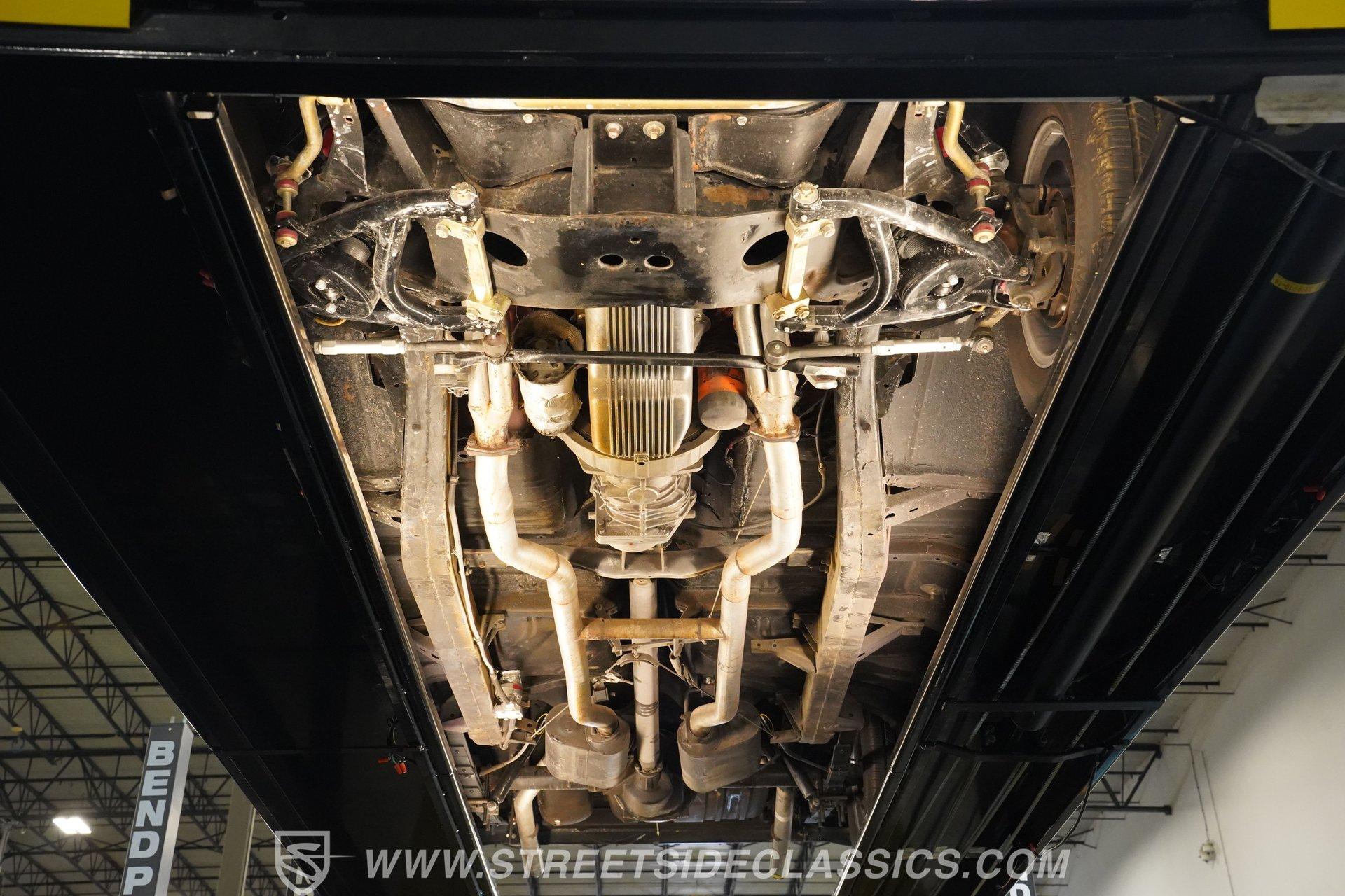 Under the hood, you'll find a robust 327 V8 engine, featuring an Edelbrock 4-barrel carburetor and an Edelbrock intake for enhanced performance. The engine bay sports plenty of chrome accessories, an aluminum radiator and electric fans, complemented by an upgraded ignition system and aftermarket air conditioning. This Bel Air is paired with a 5-speed manual transmission delivering smooth shifts and a confident drive. Headers flow back through rumbling Flowmaster mufflers to create a muscular exhaust note. Power front disc brakes and rear drums provide reliable stopping power, while the suspension with tubular front control arms maintains a raked and slightly lowered stance on polished American Racing Torq Thrust wheels wrapped in performance tires.