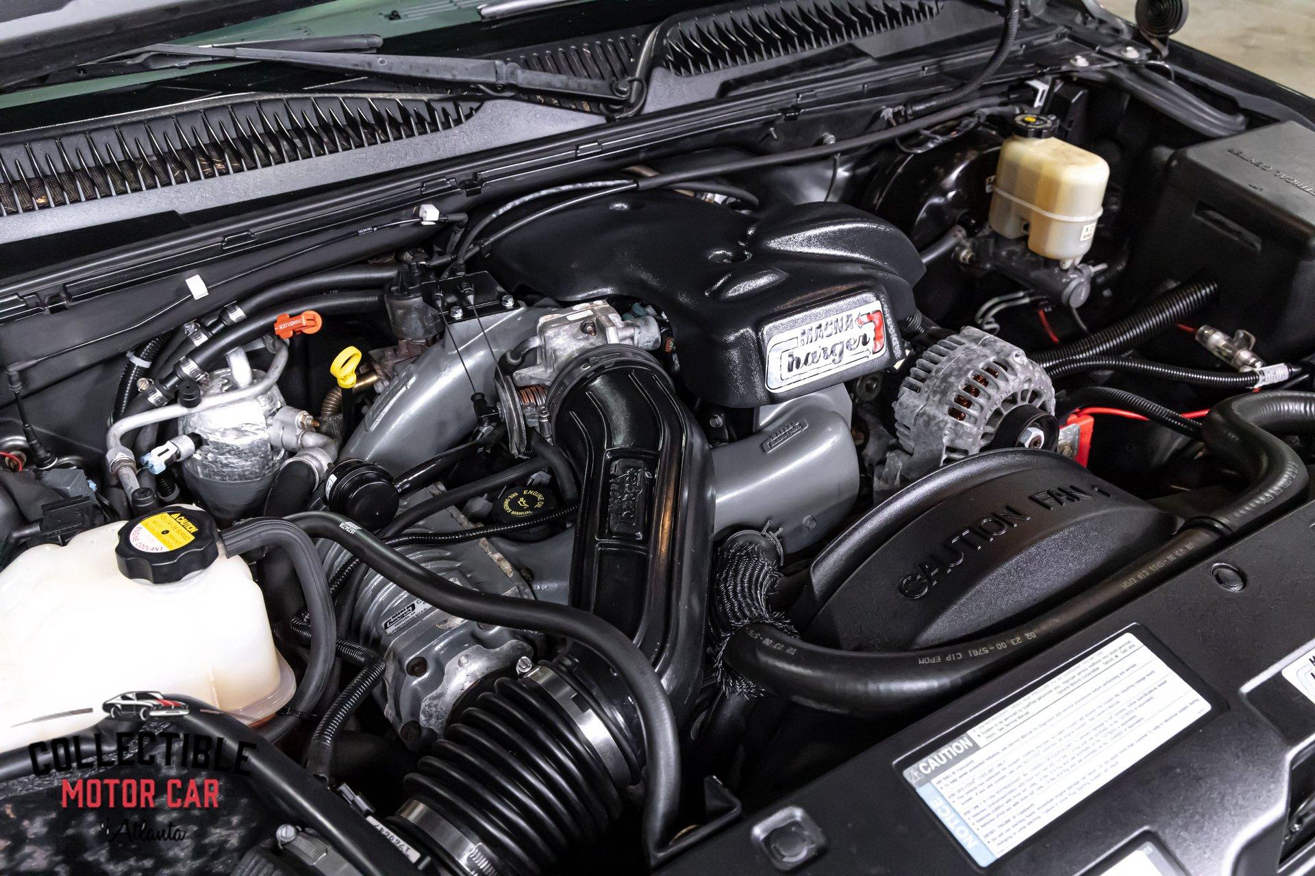 Under the hood is where this Sierra really earns its place. The 5.3L Vortec V8 was upgraded in 2001 with a Magna Charger supercharger kit and revised engine management, giving this truck a serious bump in performance while keeping the installation period-correct and well sorted. A K&N intake system was later added, and the truck also features a cat-back exhaust for the right sound to match the added power.