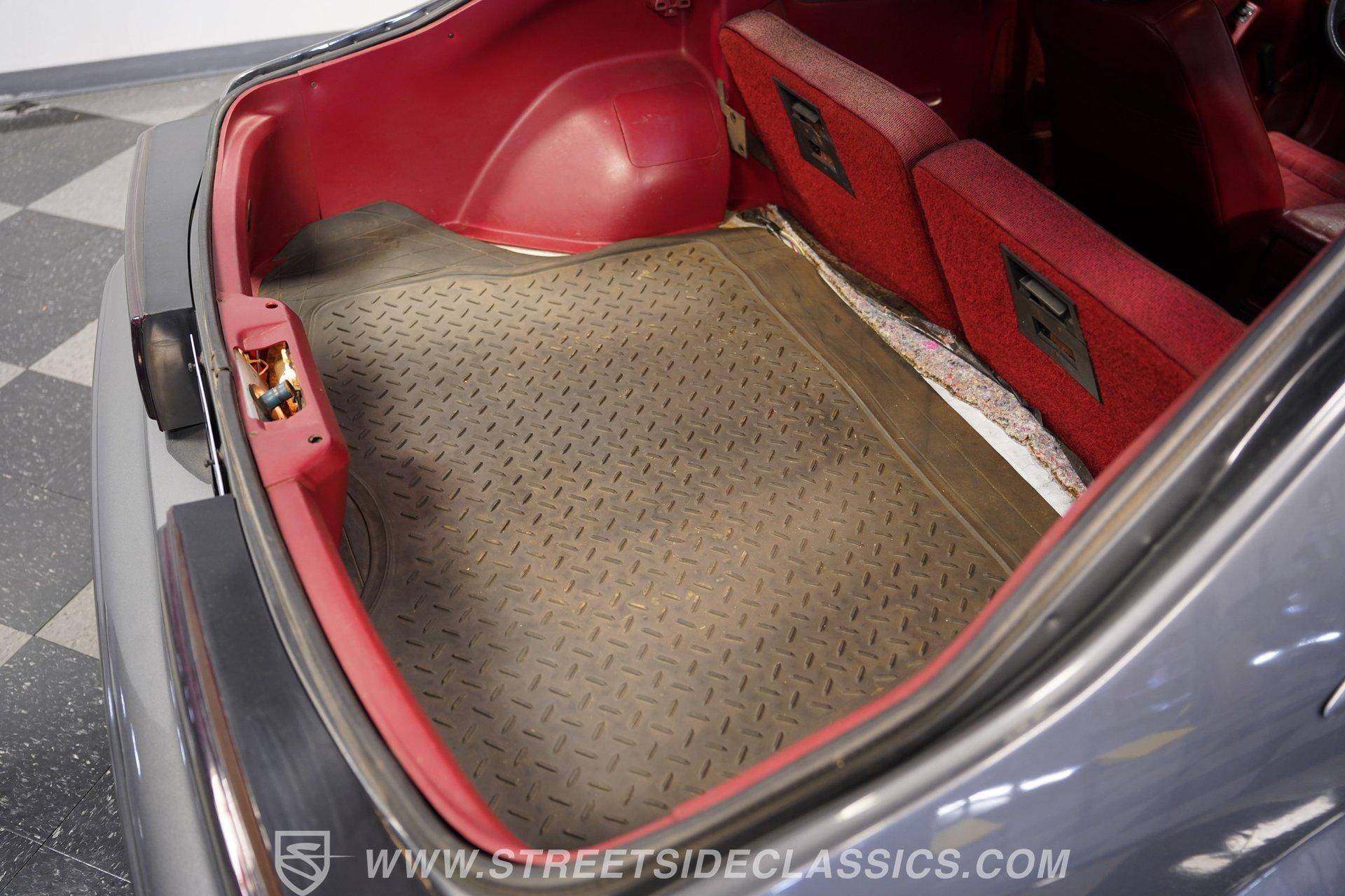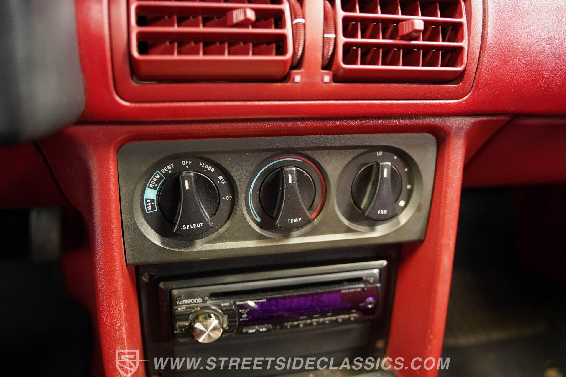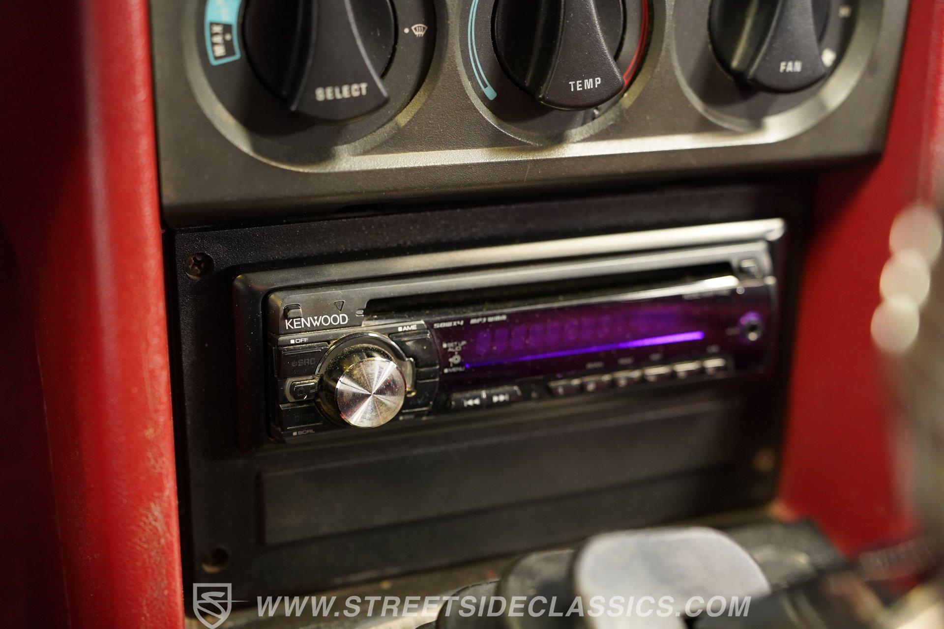 Slide inside the scarlet red vinyl and cloth interior, where comfort meets classic style. The cockpit features factory dash and gauges that retain their original charm, complemented by an aftermarket Kenwood radio for your favorite tunes. The driver's seat offers just the right amount of vintage wear to remind you of its heritage, while carpets and headliner remain in solid shape for day-to-day enjoyment.