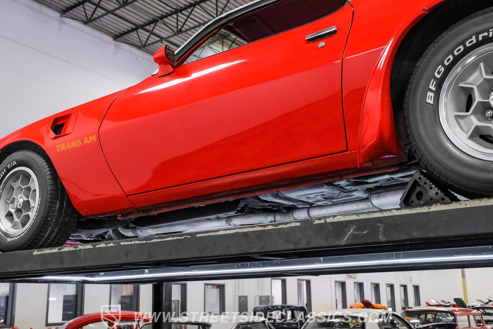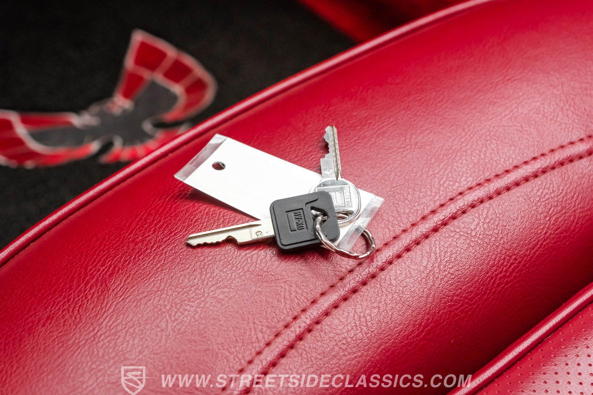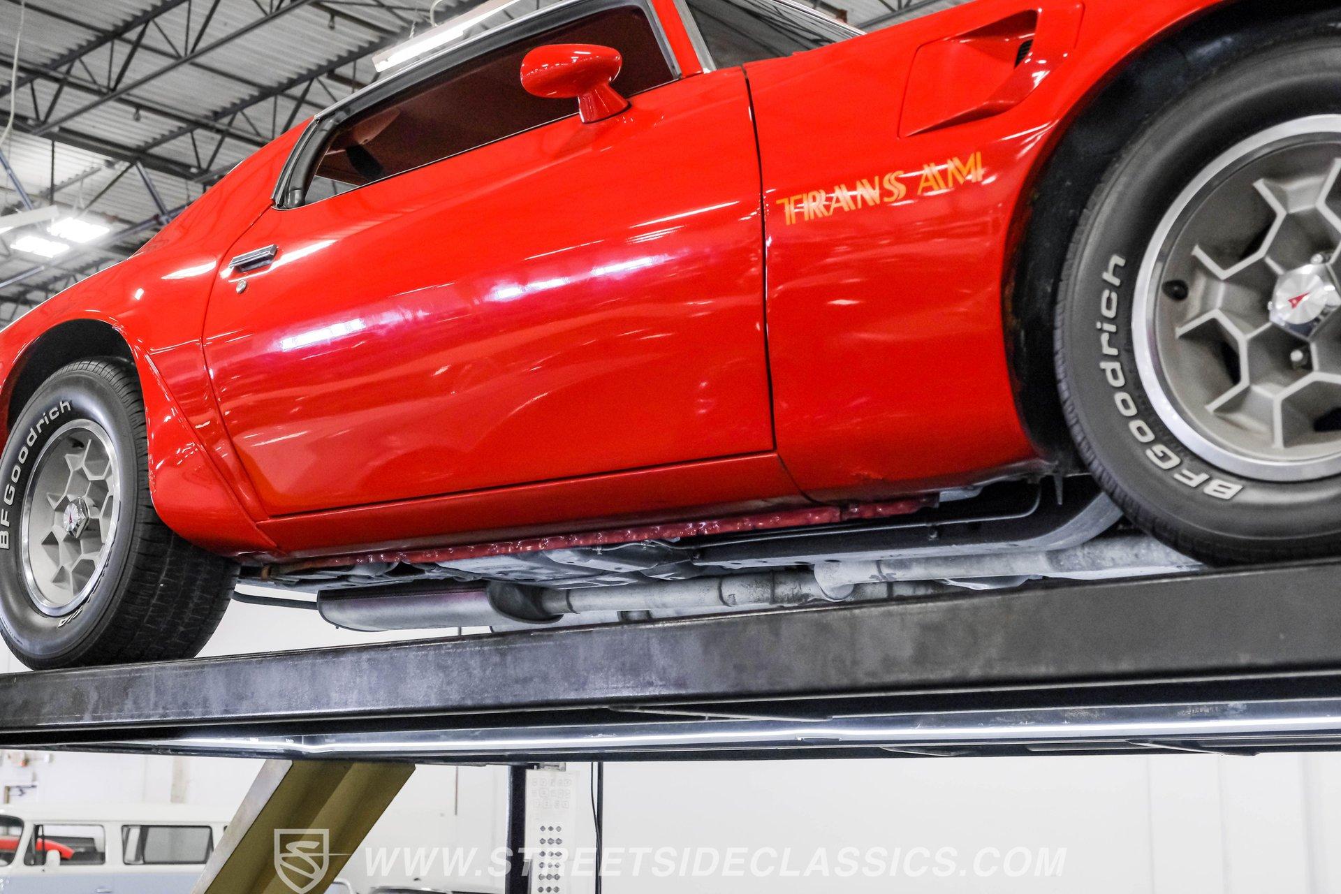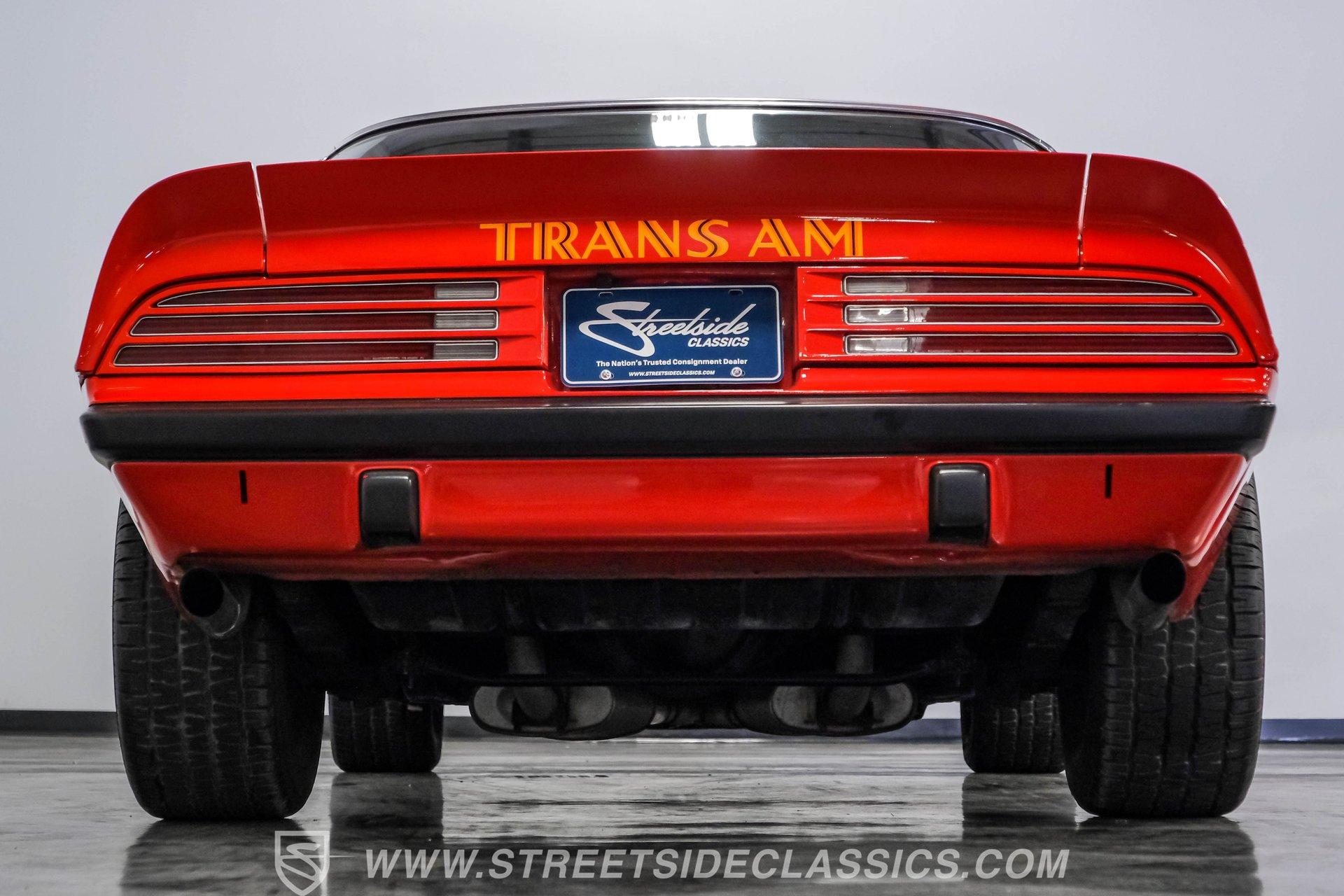 What hustles this classic sports car down the road is a 455 cubic-inch V8. To add extra power, Edelbrock aluminum heads, an Edelbrock intake manifold, and a 4-barrel carburetor have been installed. To handle that horsepower and torque, the Trans Am is equipped with a TH400 3-speed automatic transmission. The front suspension does its job with coil springs, shocks, and a sway bar, while the rear uses leaf springs with shocks and a sway bar. The 15-inch honeycomb-style wheels are wrapped in 245/60R14 front tires and 275/60R15 tires at the rear. These bolt up to power front disc brakes and rear power drum brakes. And for that signature Trans Am sports car sound, dual exhaust with an X-pipe and aftermarket mufflers are installed.
