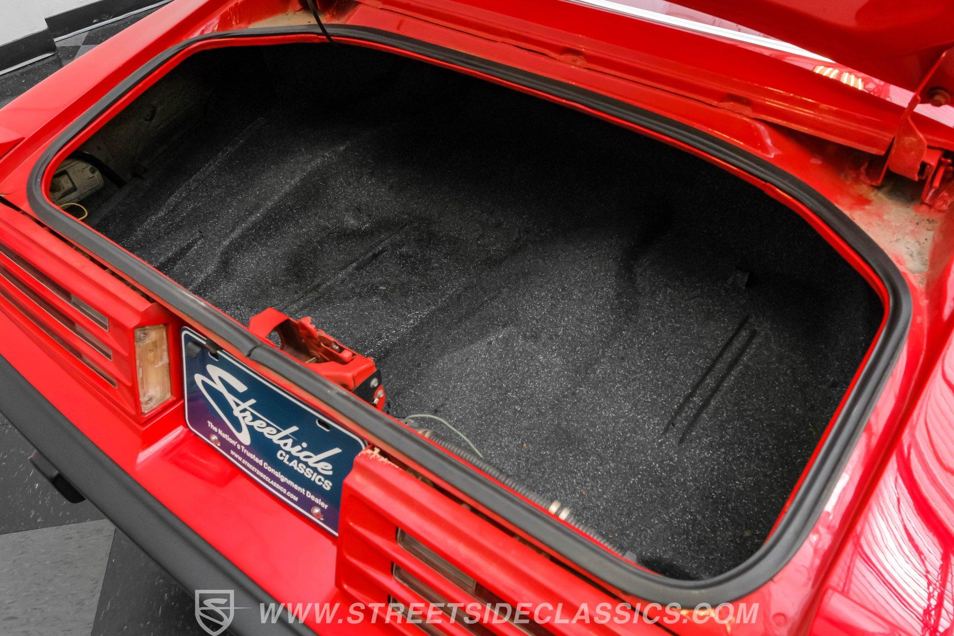 Red engulfs the interior of this Trans Am, complementing the exterior perfectly. It appears to be pretty stock, which makes it even cooler. The dashboard gauges look stock, along with the stainless steel gauge surround, the heat and air conditioning controls, and the AM/FM radio with cassette player. The dashboard and center console themselves seem to be holding their age well. The back seats and carpets look very clean, and the black Firebird floor mats add a nice touch to the interior.