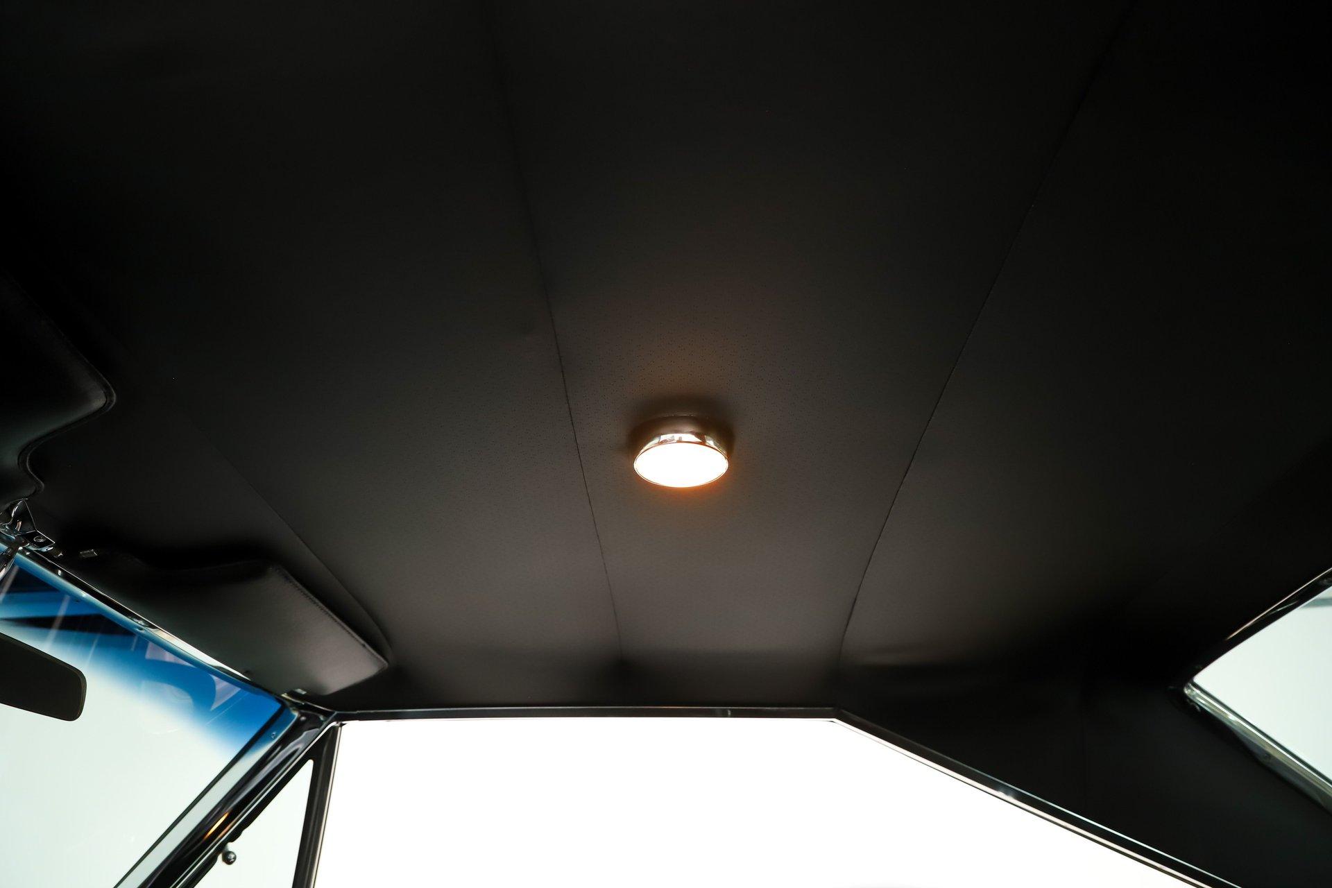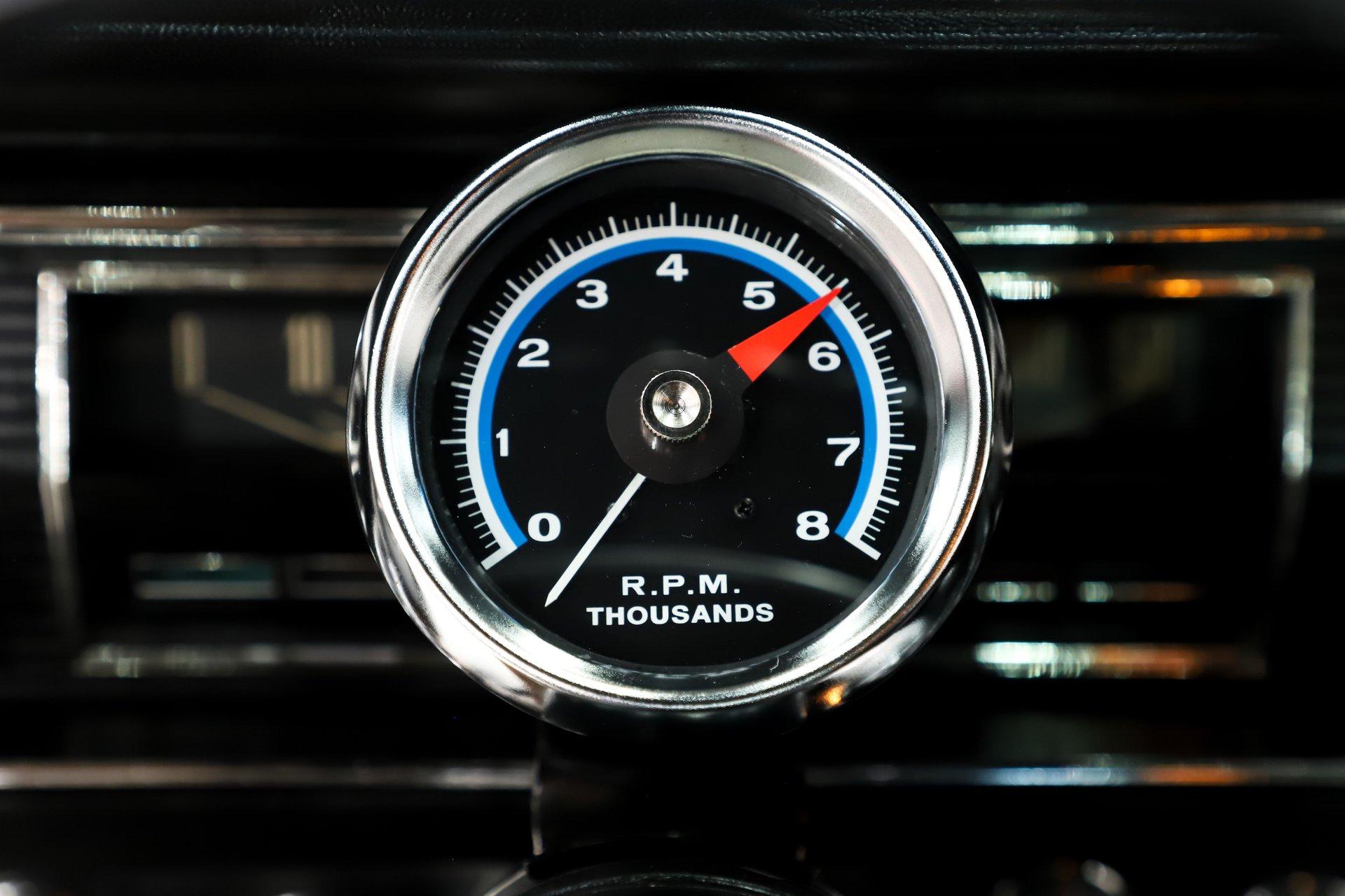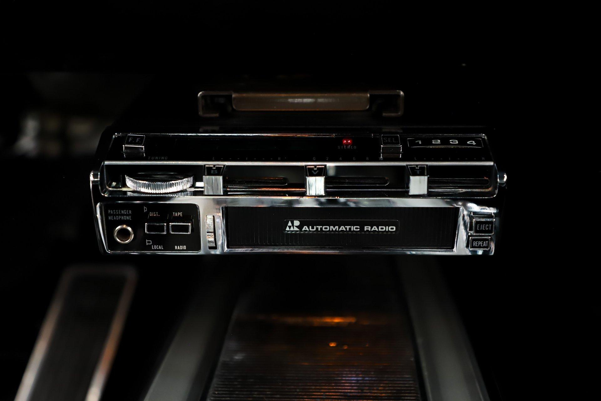 INTERIOR: The interior is extremely tidy and exceptionally well presented. Up front is an especially clean dash featuring detailed trim, shiny bezels, and the original radio still in place with no broken or drilled surfaces. Mounted to the steering column is a vintage style tachometer, just like enthusiasts installed back in the day. The center console is in mint condition and houses the automatic shifter along with working interior lights, while a nostalgic 8-track player is mounted just above it. The seats have been recushioned and reupholstered with a smooth, wrinkle free fit. The door panels and armrests have been replaced, and it retains a full set of seat belts front and rear. Fresh looking carpet covers the floor, while a tight fitting new headliner finishes the cabin overhead. Interior moldings, emblems, and even the pedals are all exceptionally clean, reflecting the overall quality and care of this car.