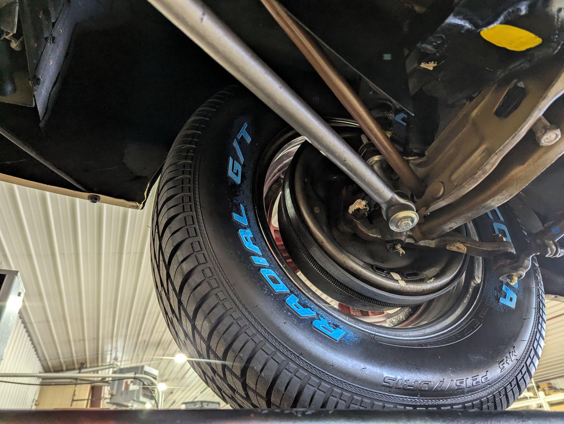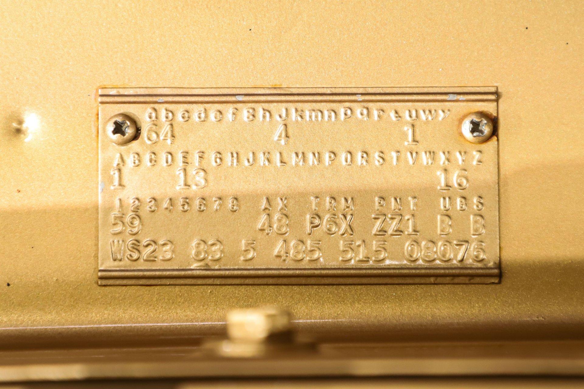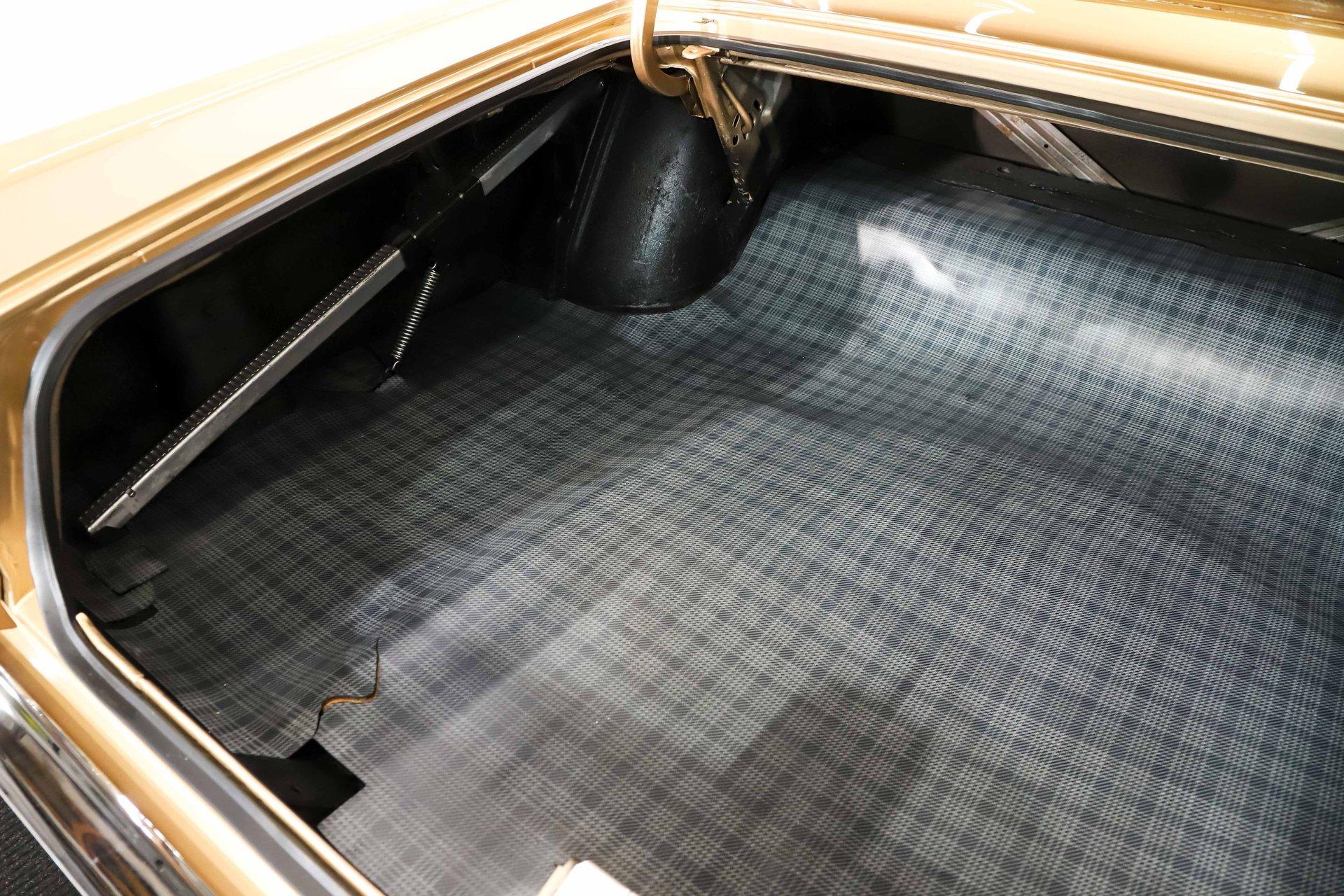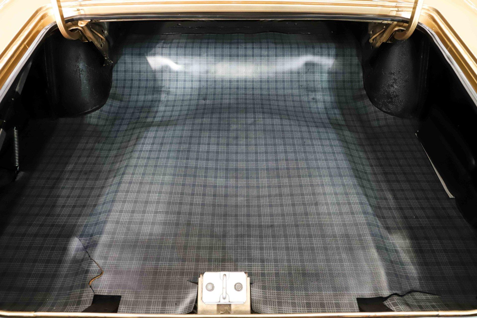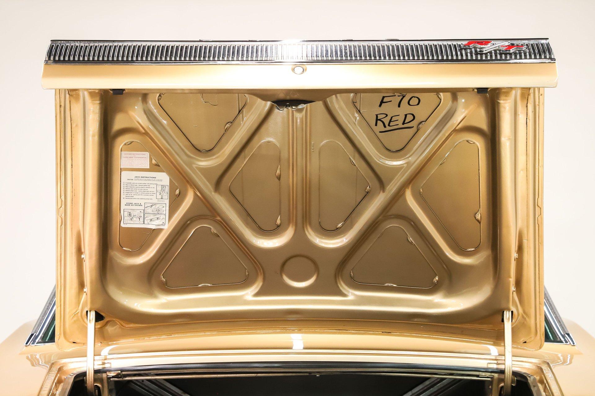 TRUNK COMPARTMENT: Under the trunk lid is finished just as nicely as the rest of the car, with the jamb beautifully painted and detailed with the correct factory decals and assembly line markings. Inside, the trunk compartment is rock solid and exceptionally clean. Lifting the mat reveals a proper redline spare tire, while the jack is mounted in its correct factory location, further highlighting the car's authenticity and careful restoration.