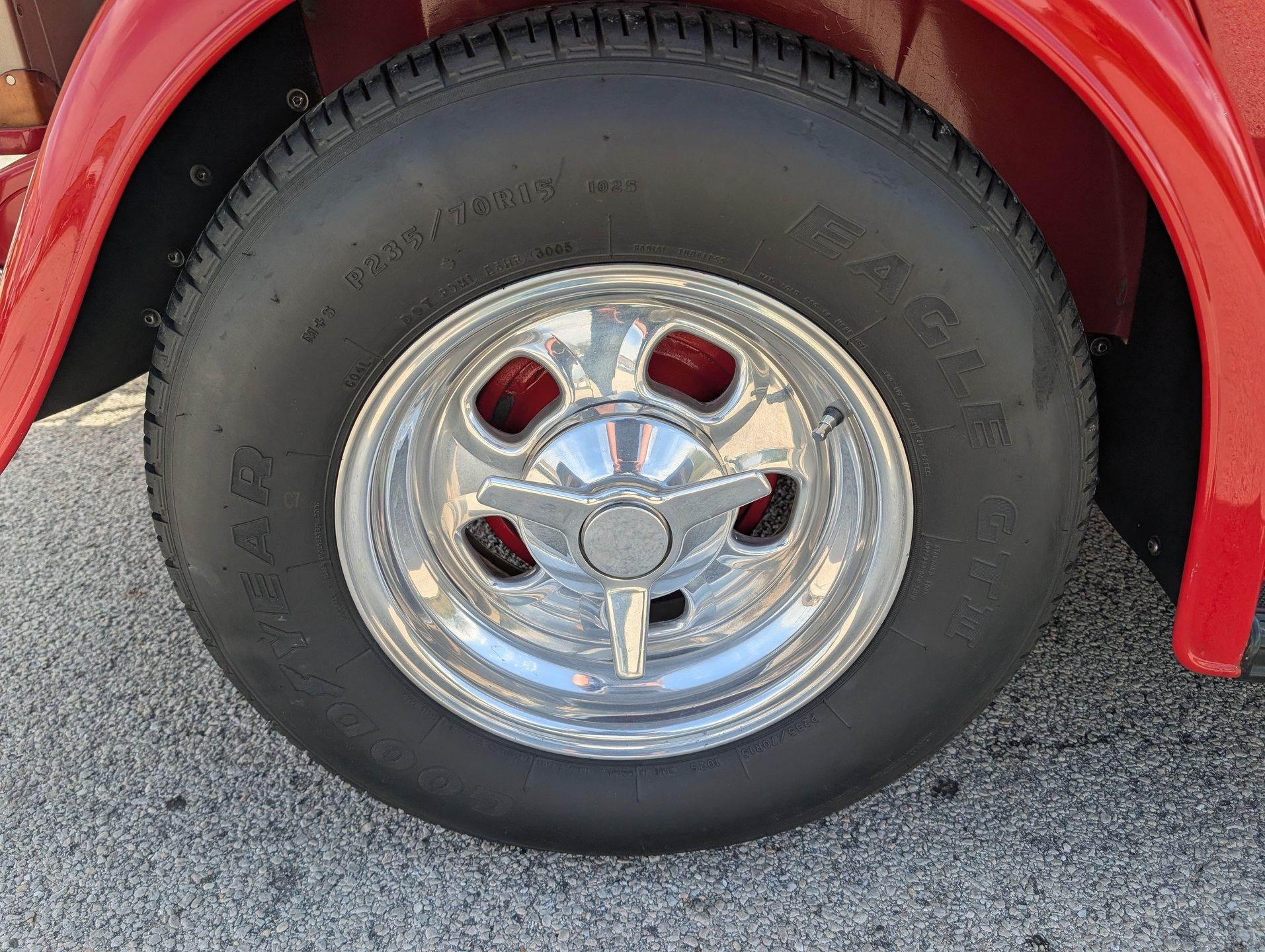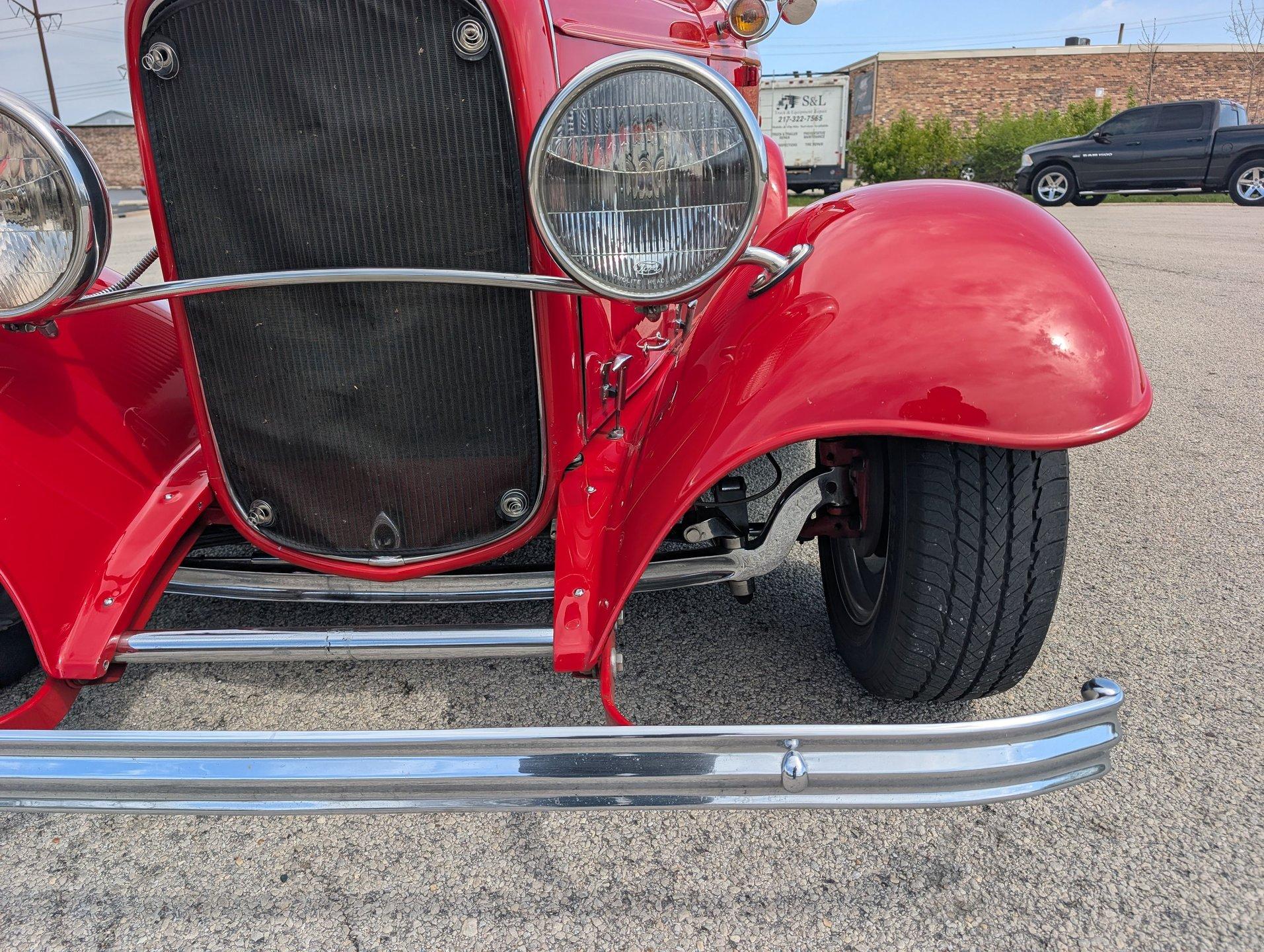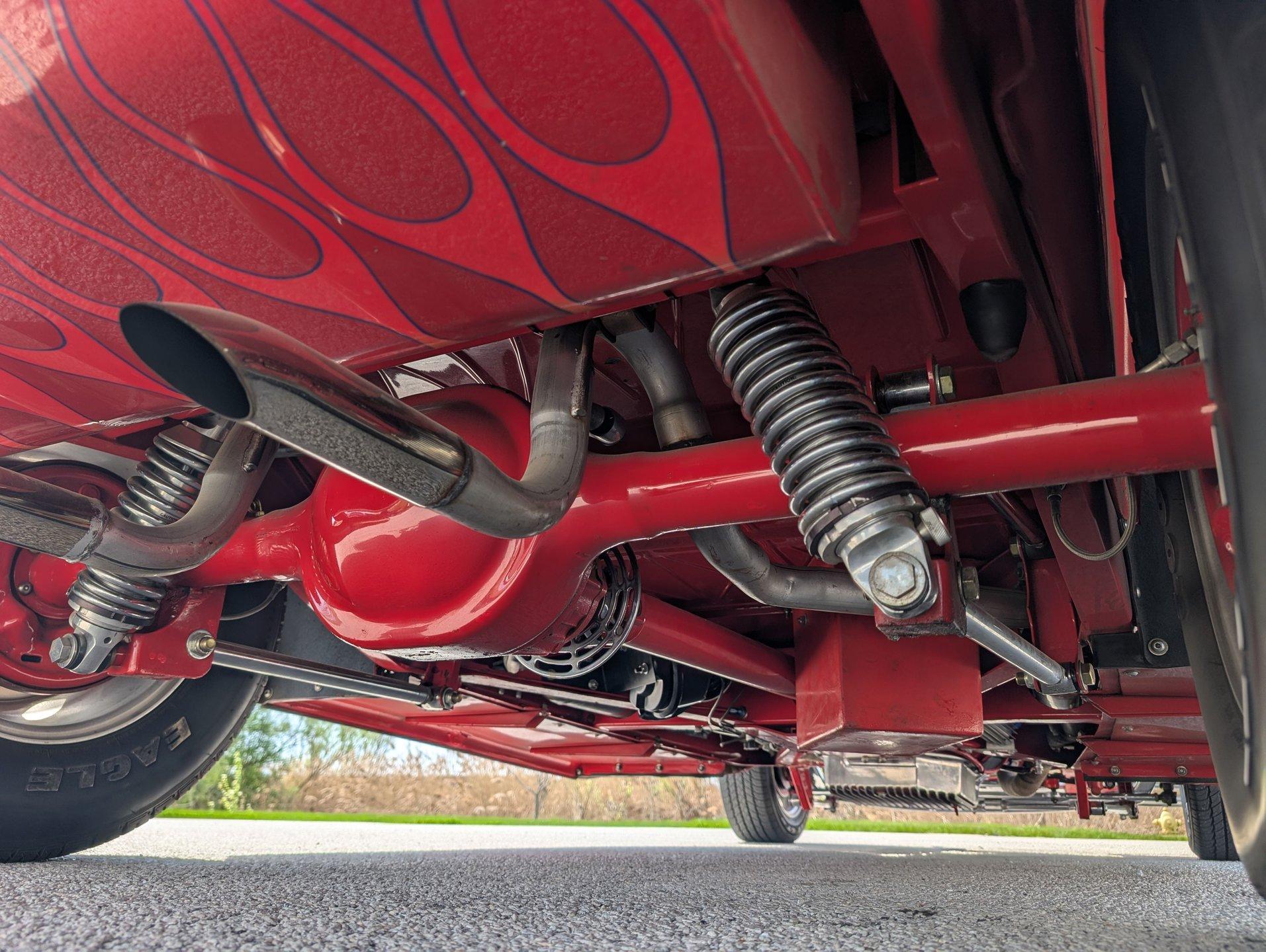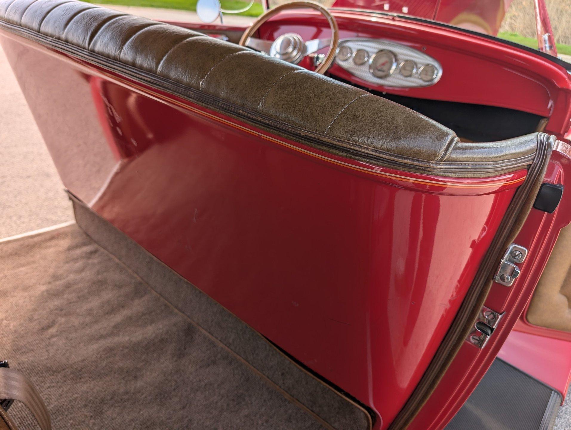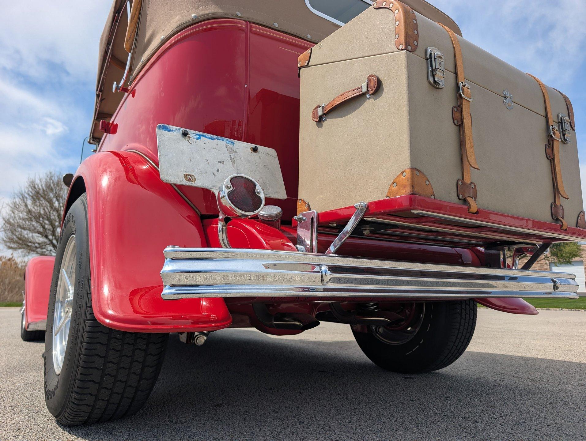 Survivor Classic Car Services Chicago is proud to present this hot rod 1932 Ford Phaeton. This clean drop top has been rebuilt from the bottom to the top making it a very presentable driver. From the painted flames on the underside to the clean canvas top with glass rear window, this fancy Ford shows incredibly well! Polished alloy wheels on all 4 corners bring the bling and match with the LeCarra wood & aluminum steering wheel, gauge bezel, and other touches around the dash. The engine is from a '75 chevy truck but has been warmed over with an Edelbrock intake manifold and carburetor, as well as a set of shorty tubular exhaust manifolds to bump power up to an estimated 220-240.