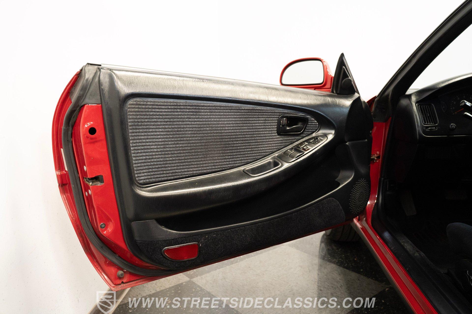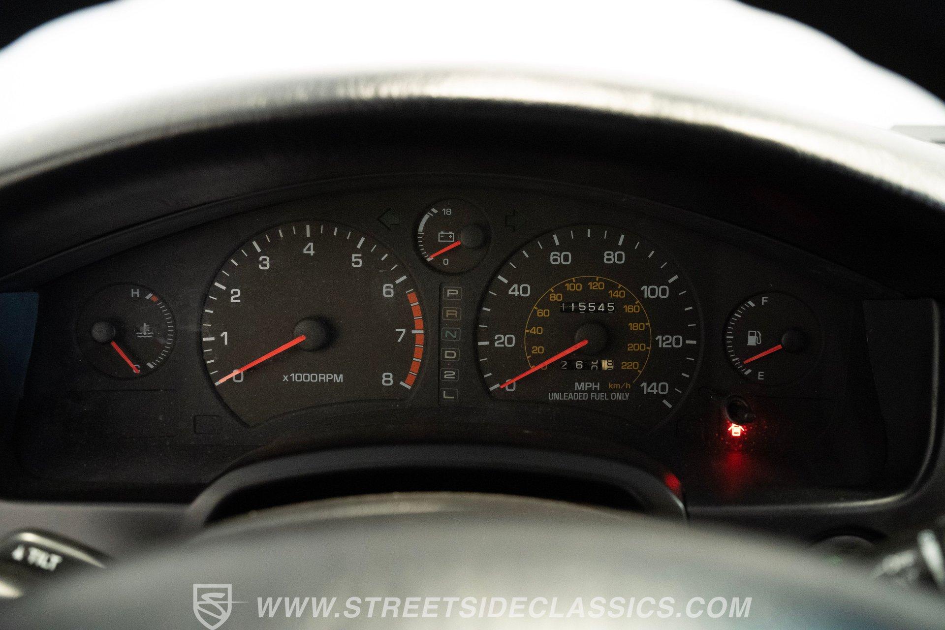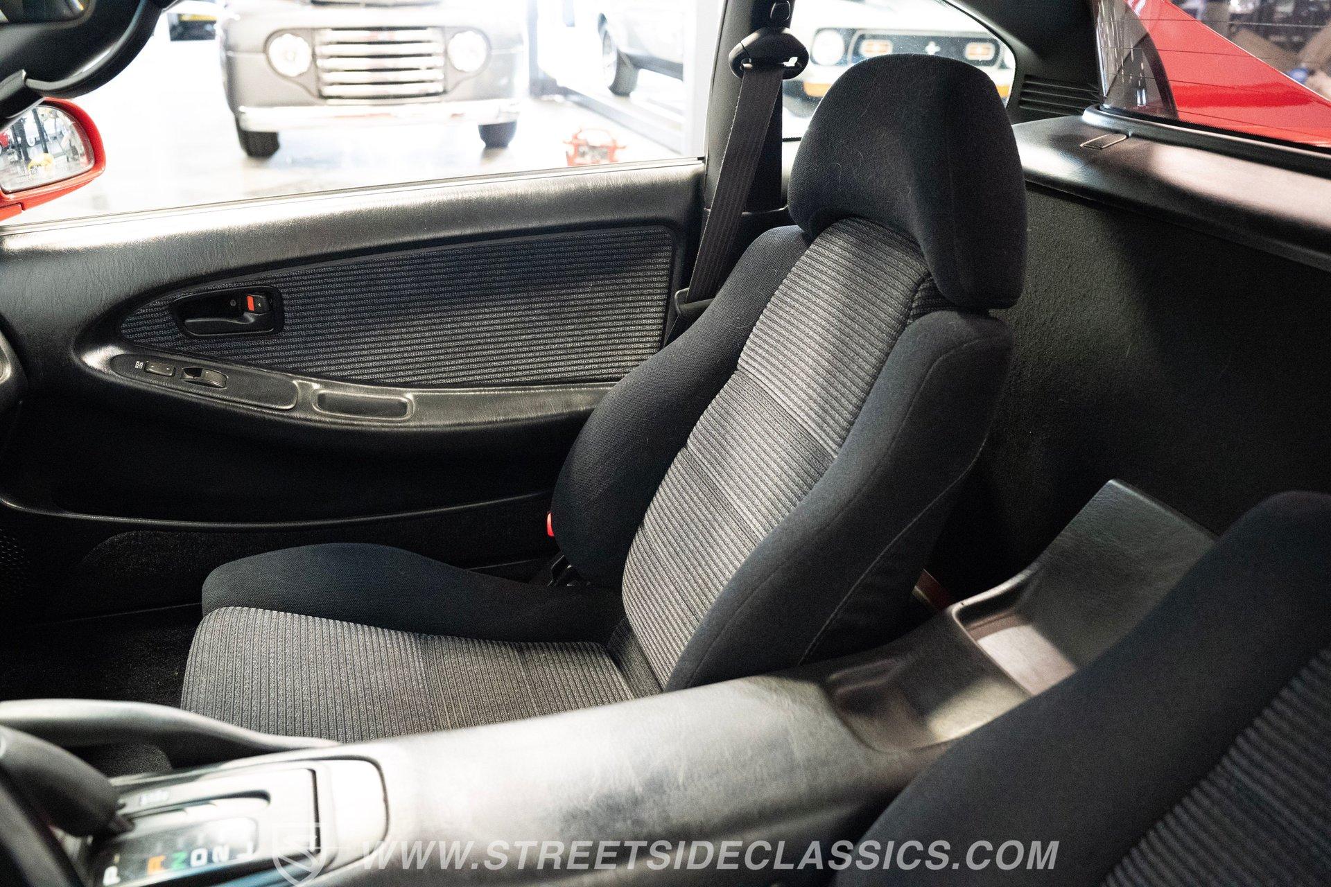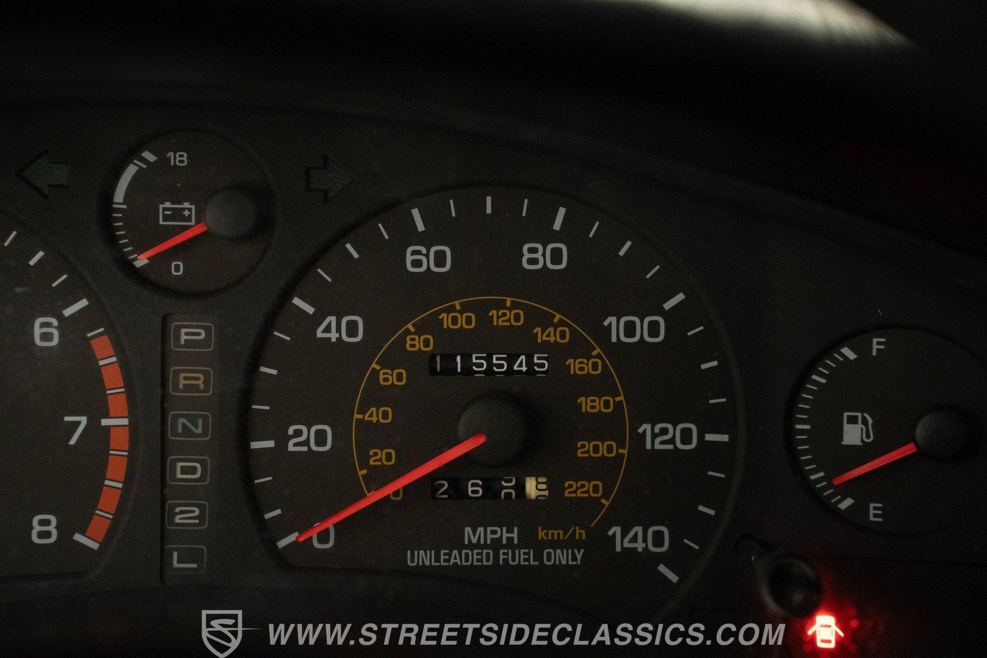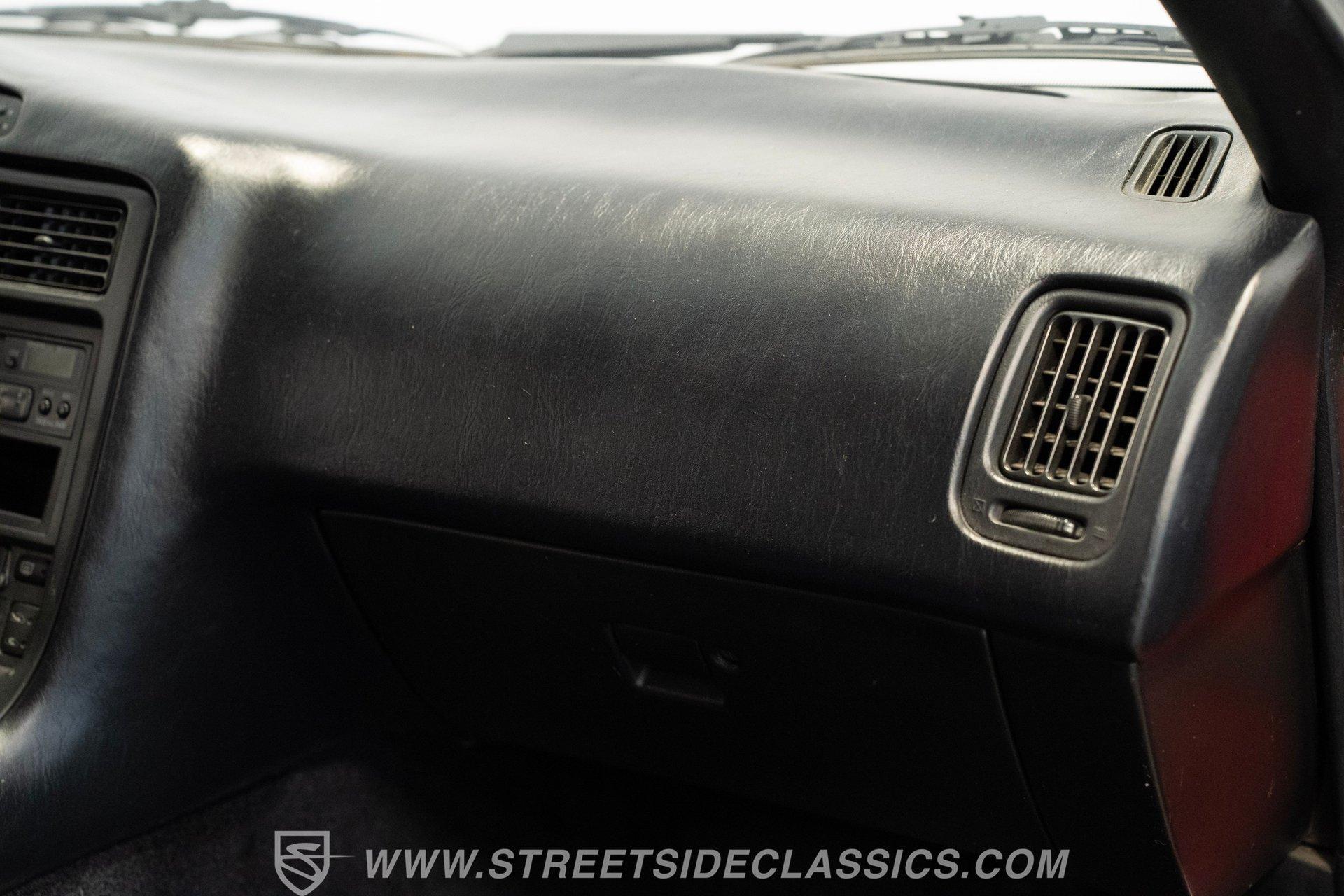 Inside, the cabin welcomes you with well-preserved black cloth bucket seats that offer firm support and timeless style. The dashboard remains crack-free, complemented by a clean center console and a steering wheel showing minimal wear. Enjoy modern conveniences like power windows, locks, tilt steering, cold-blowing air conditioning, and a factory radio, all designed to keep you comfortable and connected on your spirited drives.