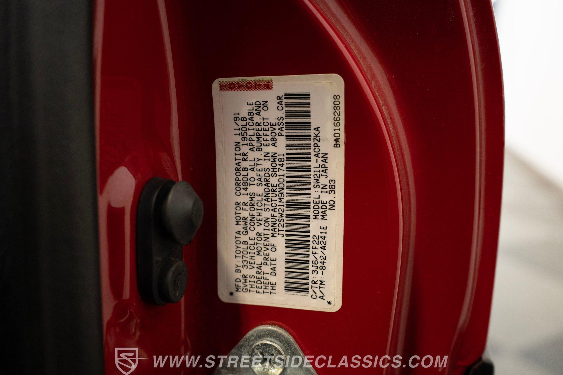 Under the hood lies the factory 2.2L DOHC four-cylinder engine equipped with electronic fuel injection, delivering smooth and responsive power. Paired with a four-speed automatic transaxle, the MR2 offers seamless shifts and a satisfying rumble from its dual exit exhaust. The mid-engine layout ensures balanced handling, while four-wheel power disc brakes and power steering provide confidence and control. Every drive is an engaging experience, combining classic sports car thrill with reliable mechanical performance.