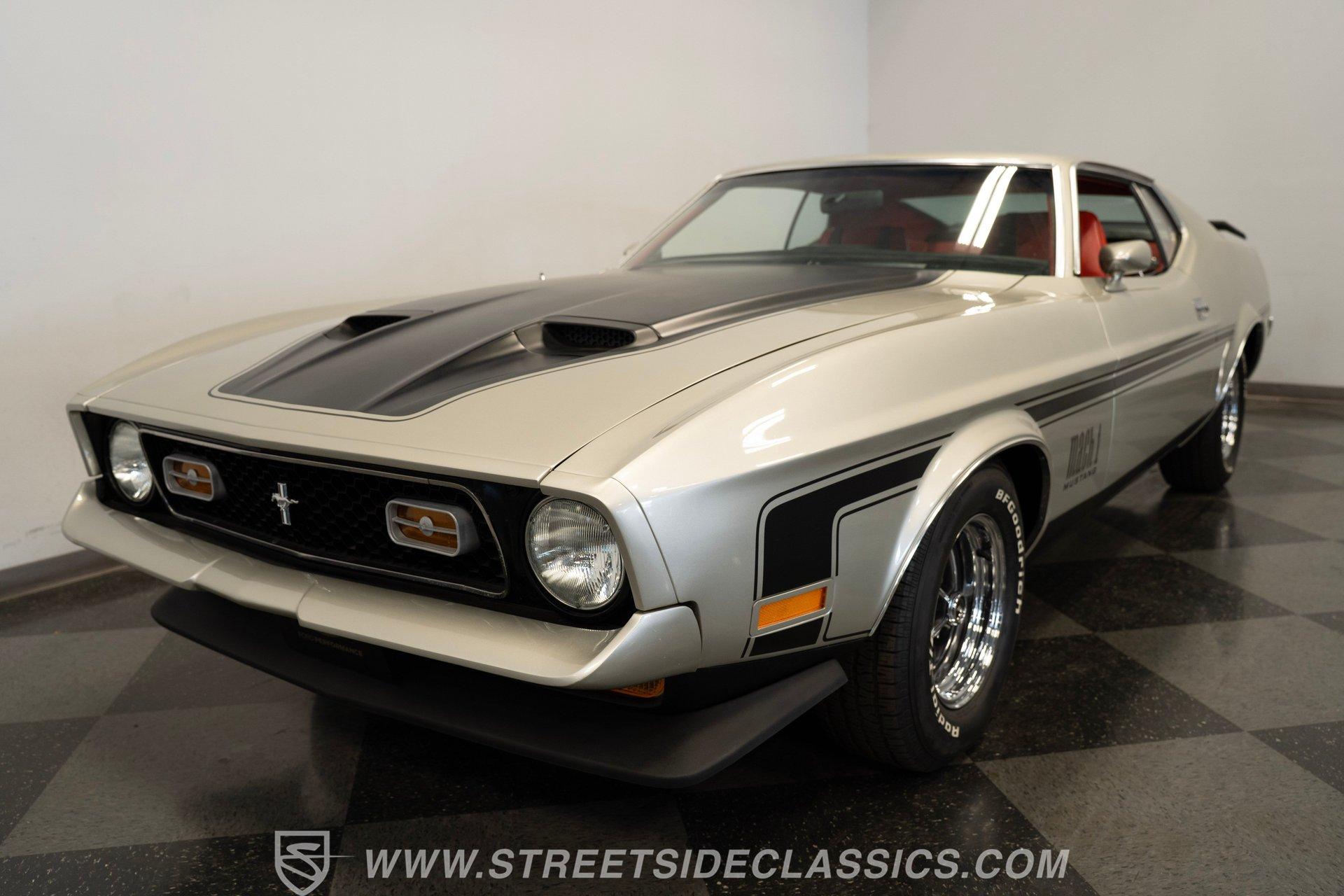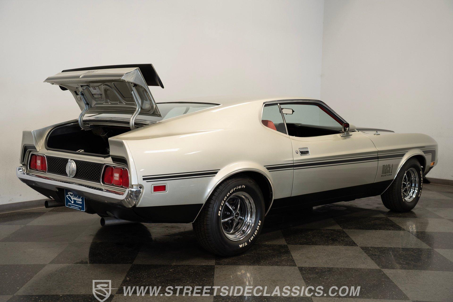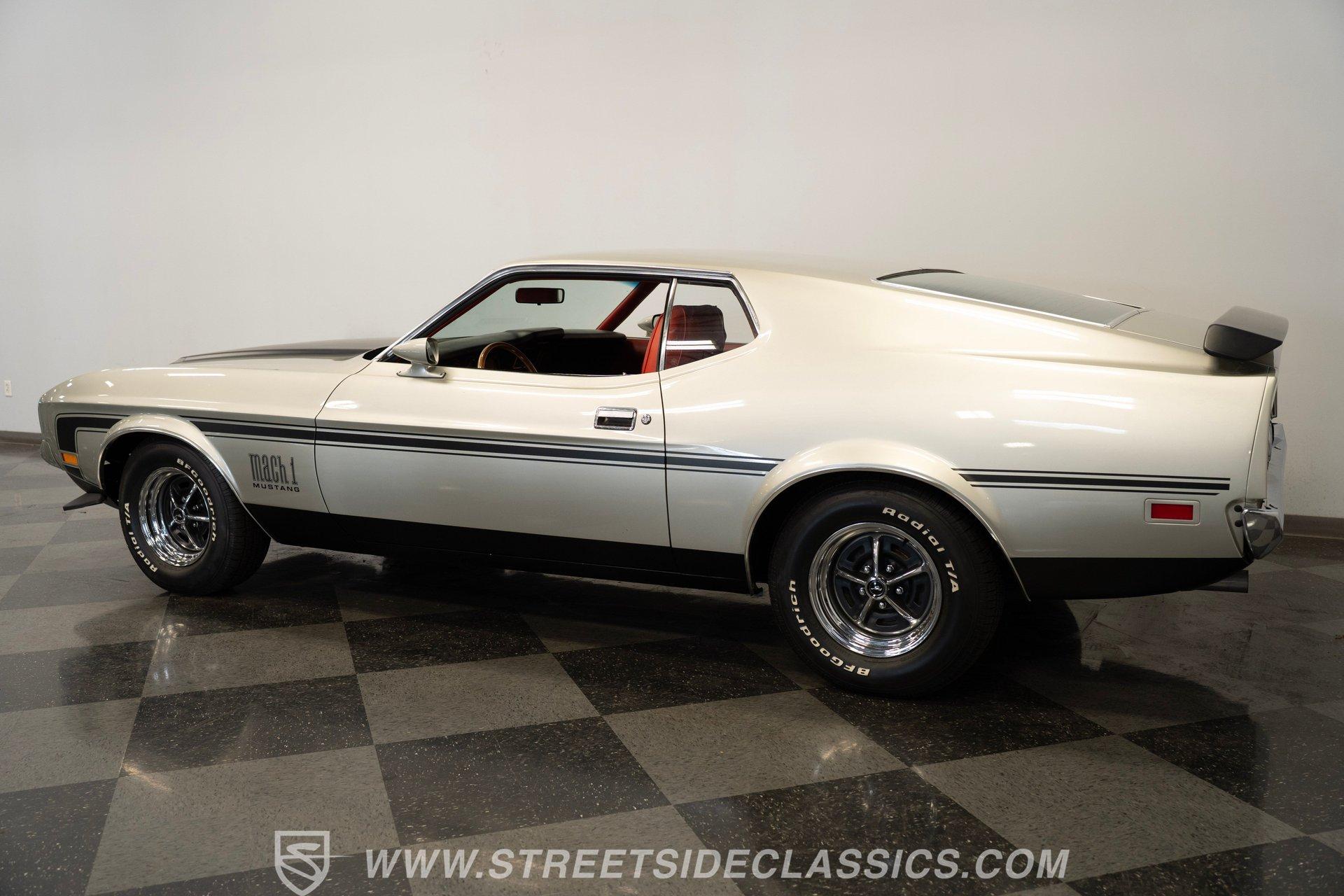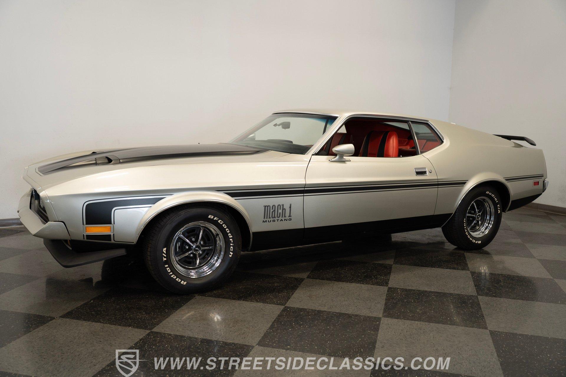 Step into a time machine of raw muscle and unfiltered excitement with this 1971 Ford Mustang Mach 1. This iconic fastback isn't just a car; it's a roaring statement of American automotive heritage, wrapped in a stunning light pewter metallic cloak with bold black vinyl stripes that command attention. From the moment you see its aggressive stance and signature black rear spoiler, you know this classic has been crafted for those who crave more than just transportation-it's about the thrill of the drive and the pride of ownership. This Mustang Mach 1 will ignite your passion for classic muscle, blending style and performance that demand respect.