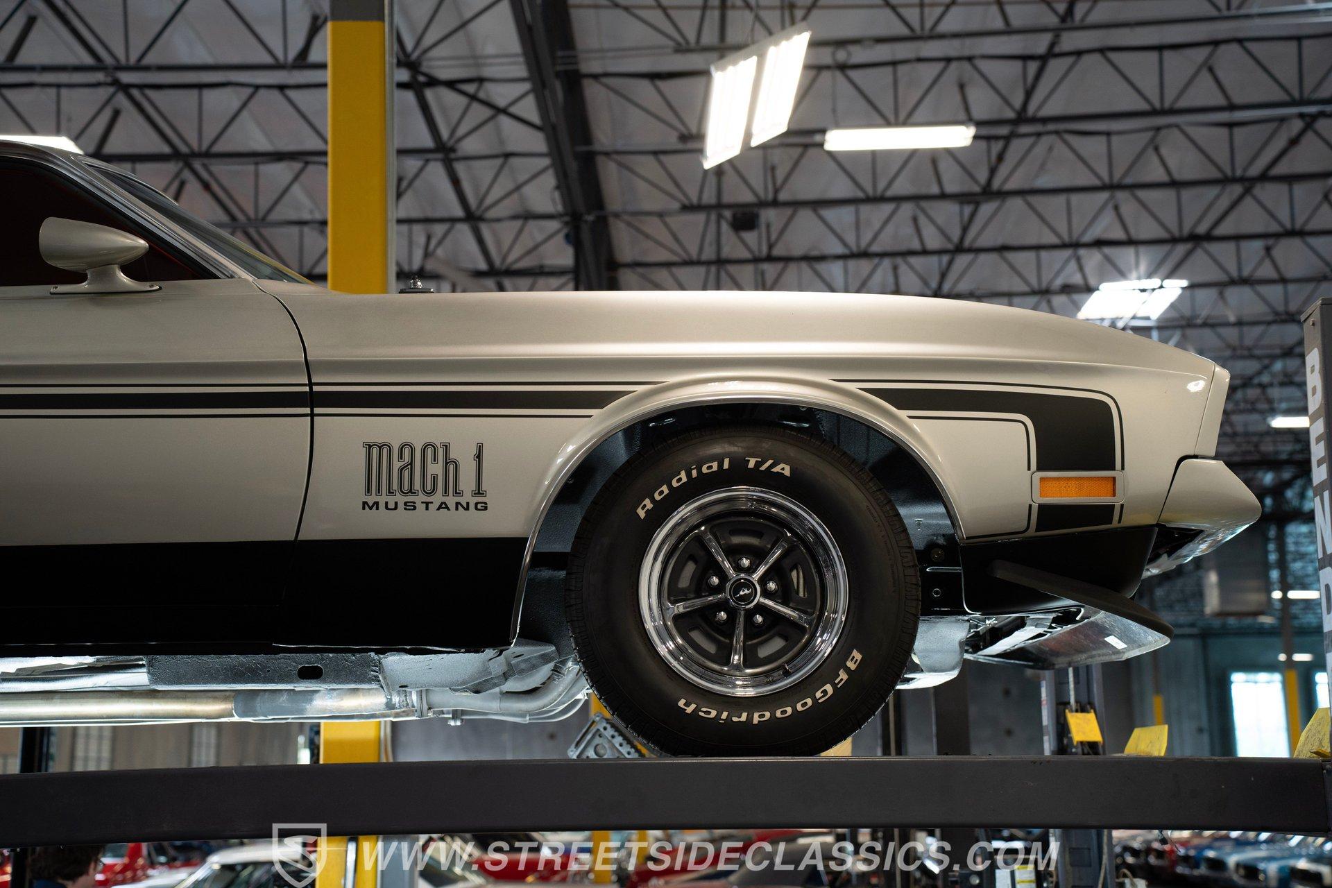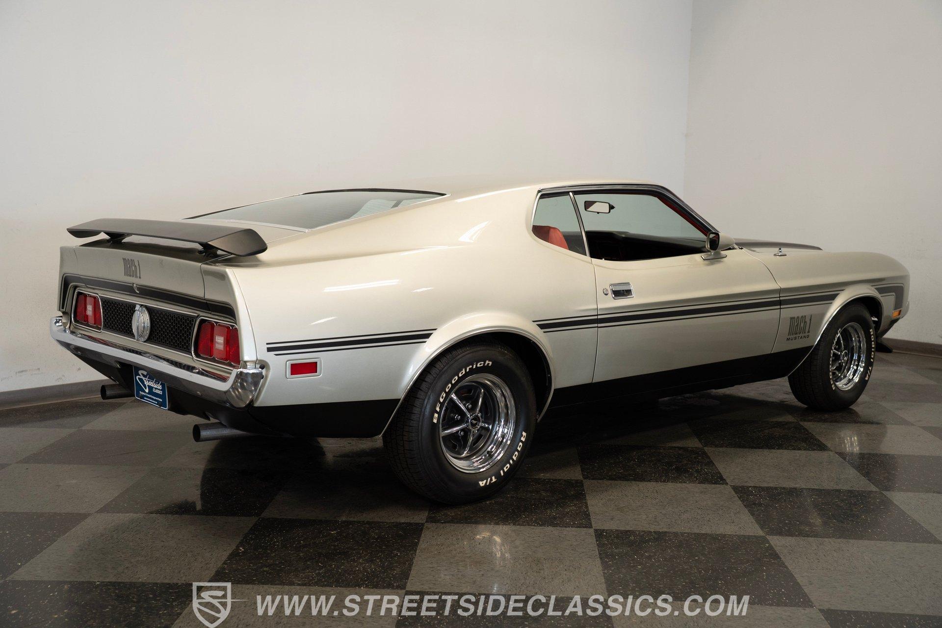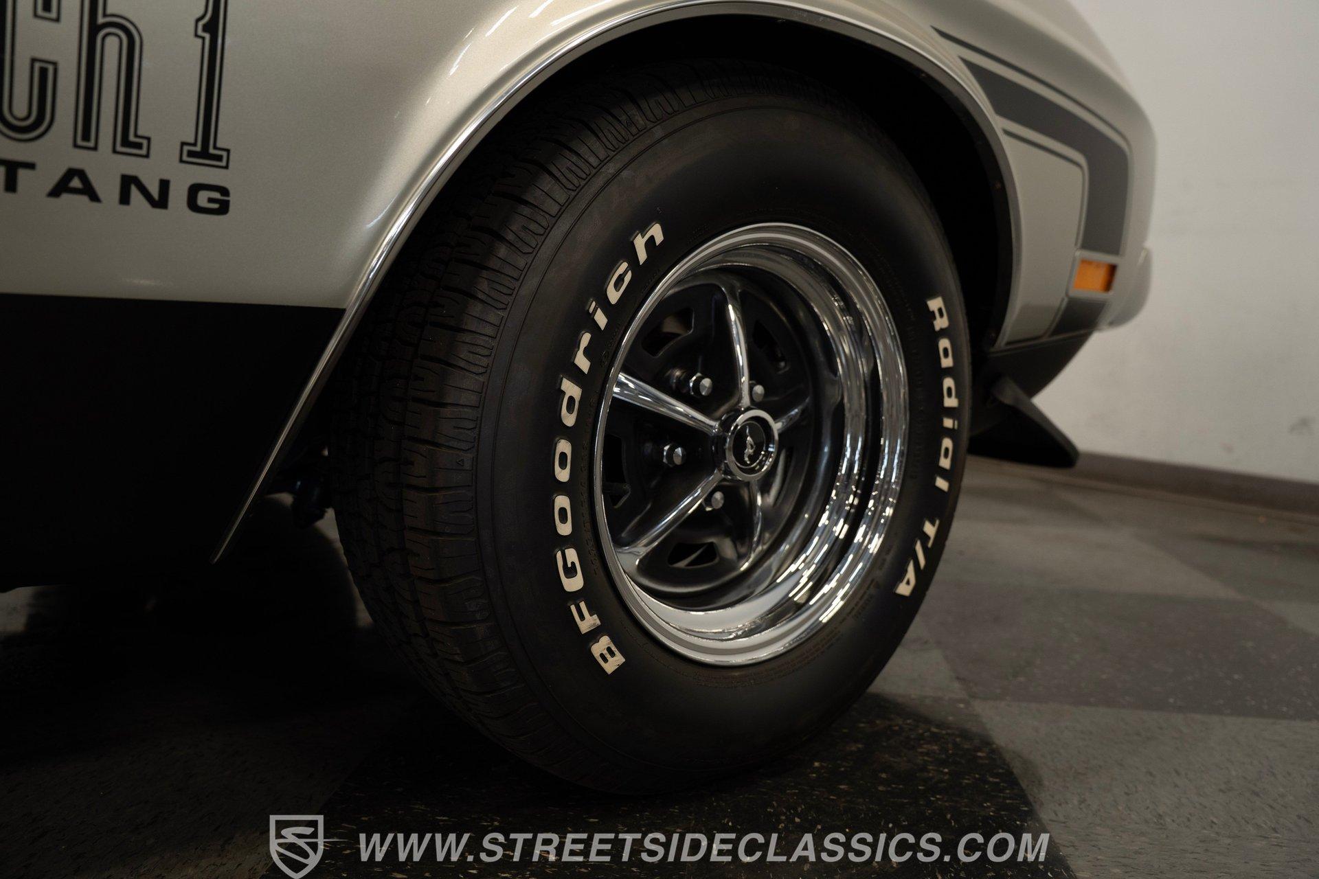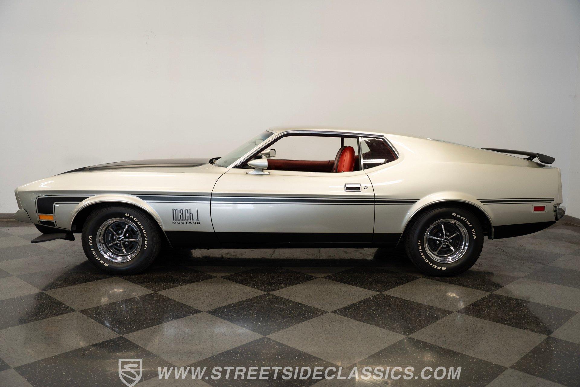 Step into a time machine of raw muscle and unfiltered excitement with this 1971 Ford Mustang Mach 1. This iconic fastback isn't just a car; it's a roaring statement of American automotive heritage, wrapped in a stunning light pewter metallic cloak with bold black vinyl stripes that command attention. From the moment you see its aggressive stance and signature black rear spoiler, you know this classic has been crafted for those who crave more than just transportation-it's about the thrill of the drive and the pride of ownership. This Mustang Mach 1 will ignite your passion for classic muscle, blending style and performance that demand respect.